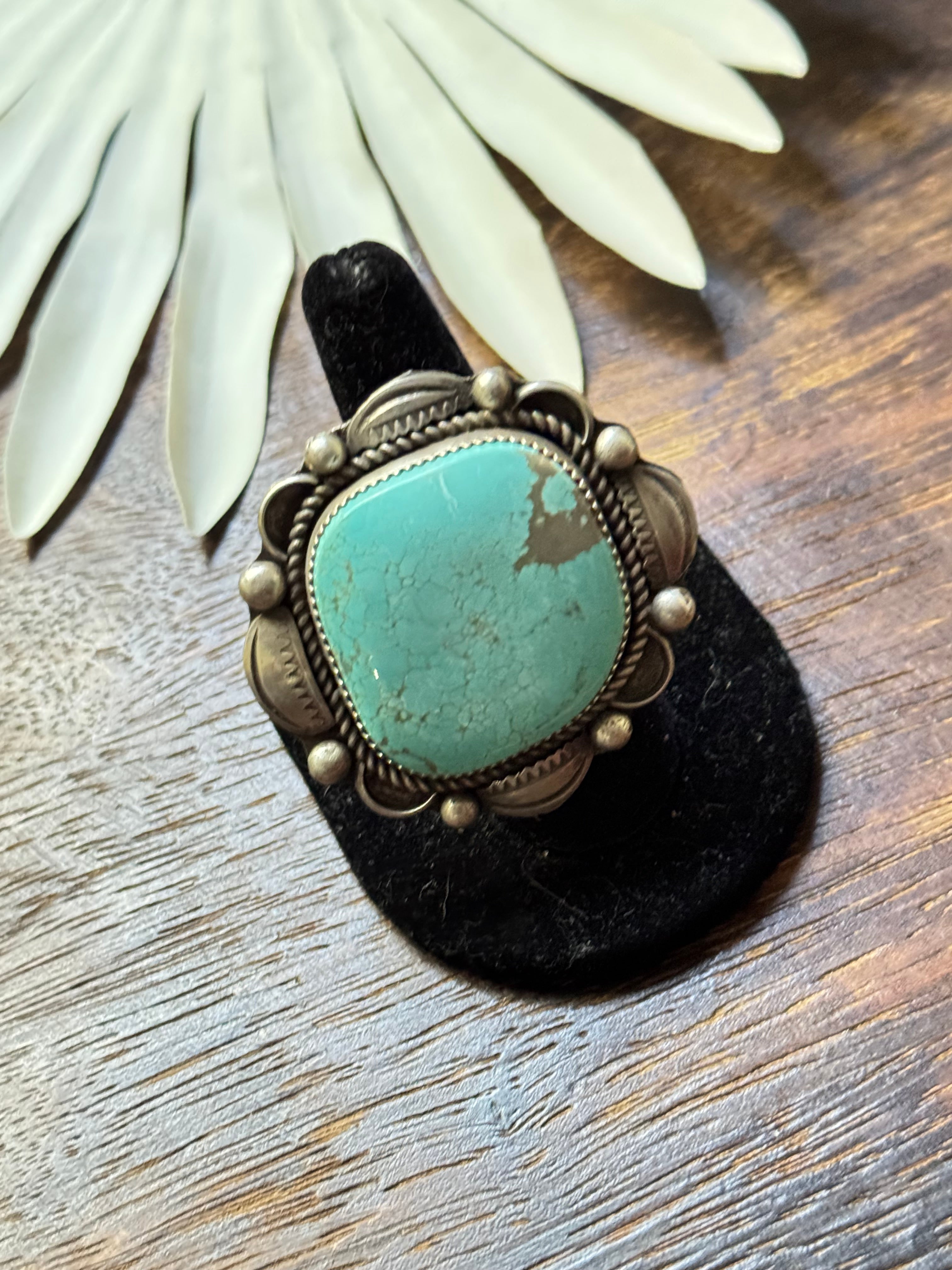 Navajo Made #8 Turquoise & Sterling Silver Adjustable Ring