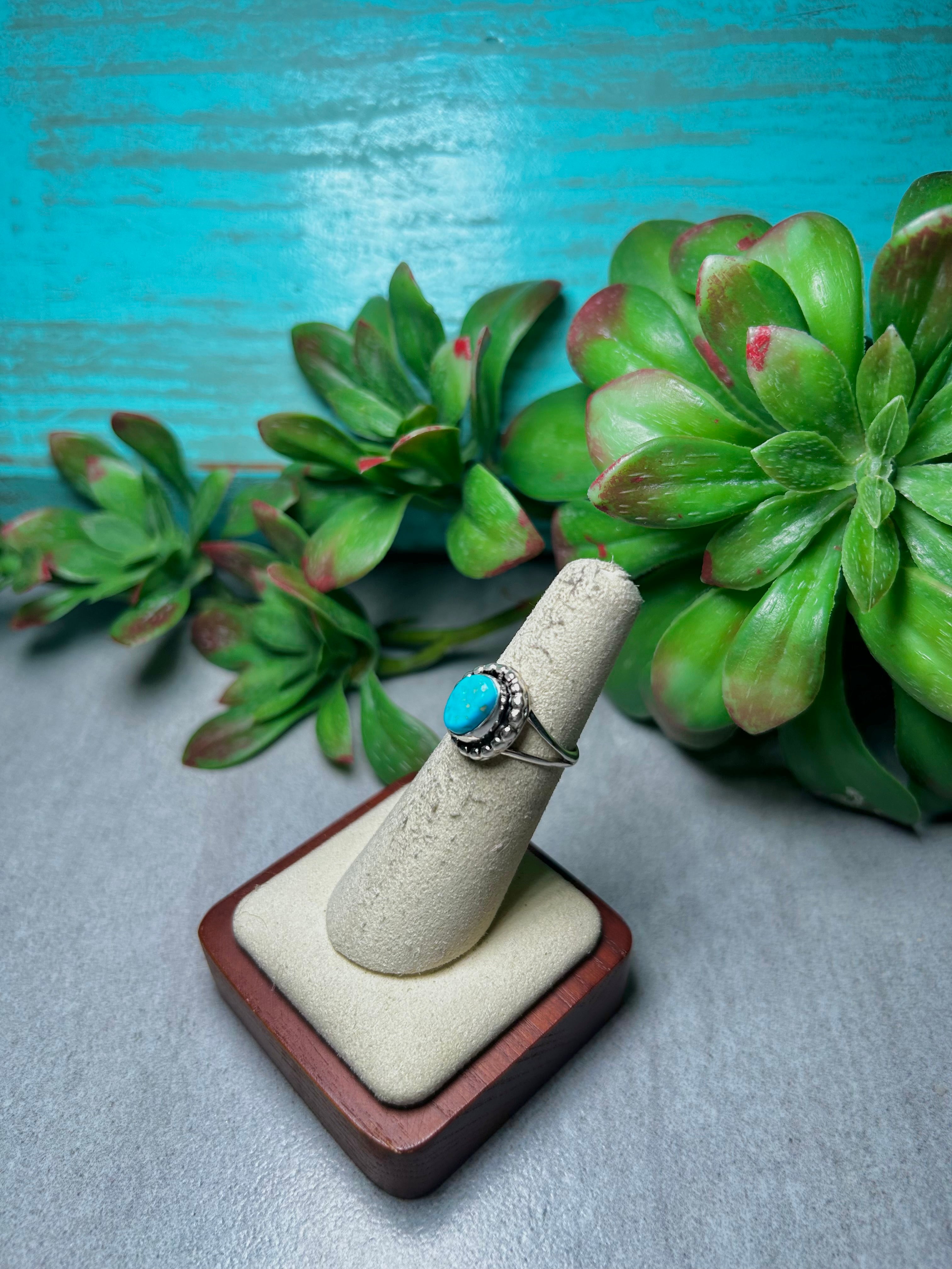Navajo Made Kingman Turquoise & Sterling Silver Cluster Ring Size 5.25. It measures 5/8 of an inch long and 1/2 of an inch wide. Signed by the artist and stamped sterling silver.