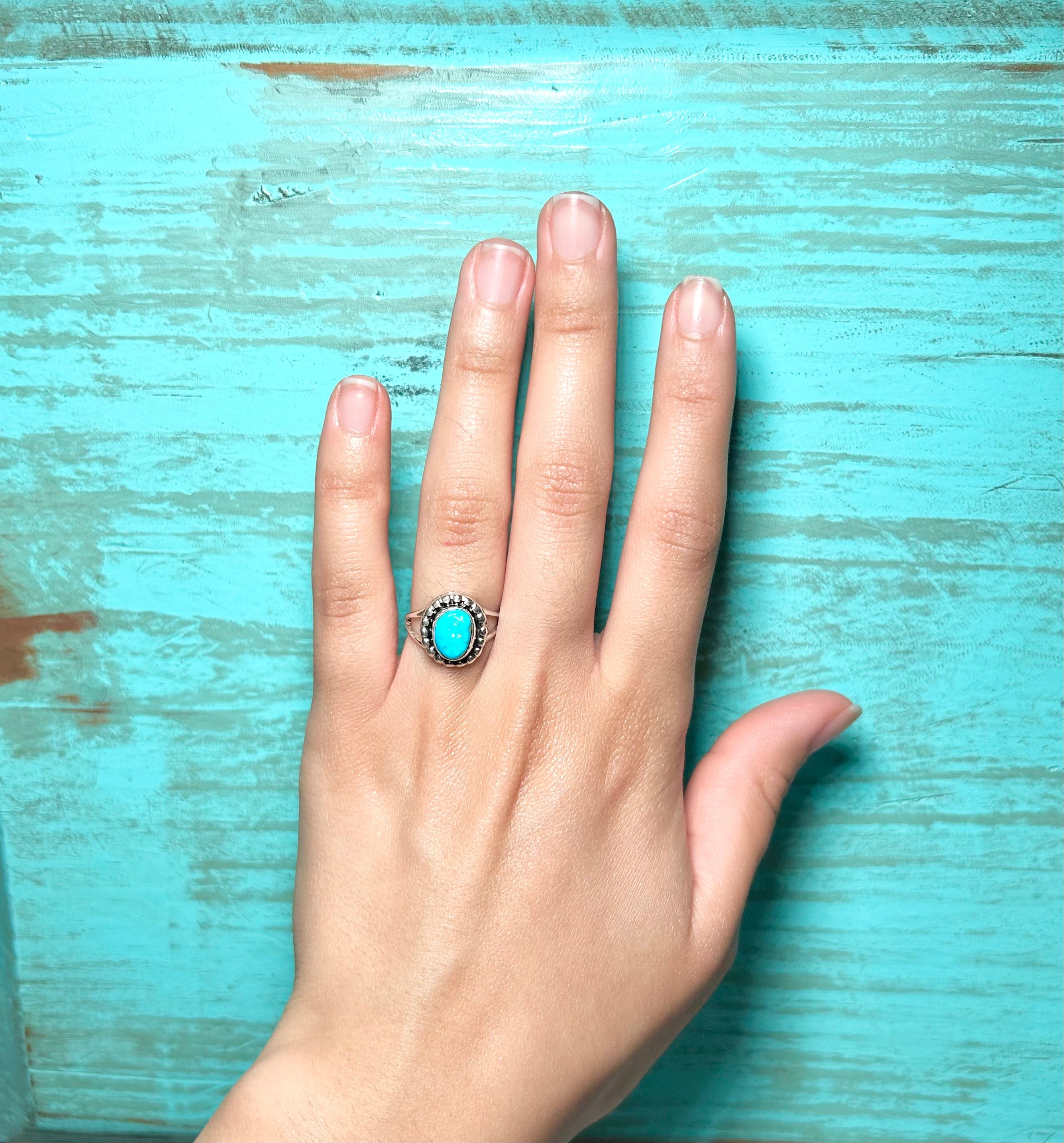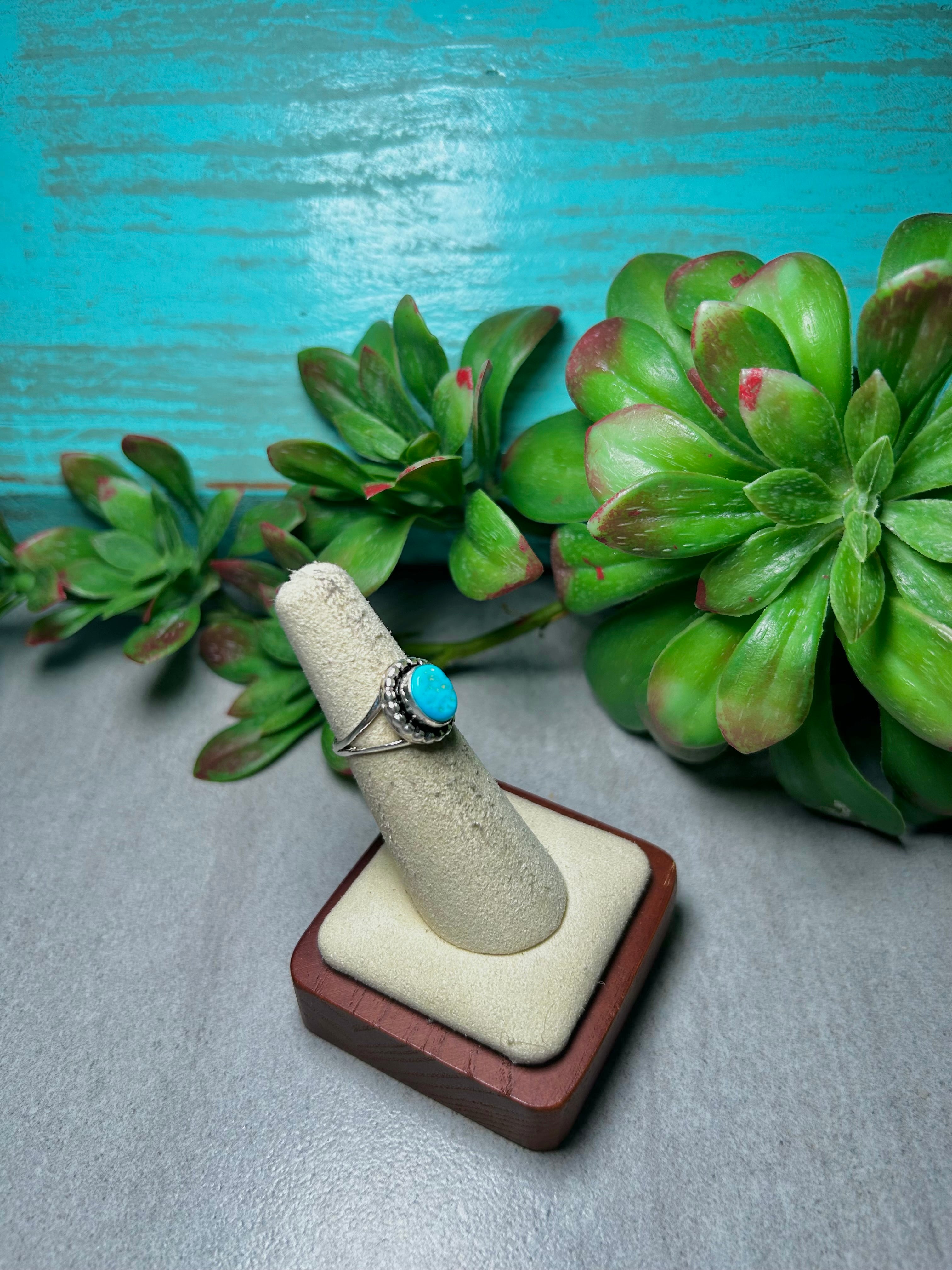 Navajo Made Kingman Turquoise & Sterling Silver Cluster Ring Size 5.25