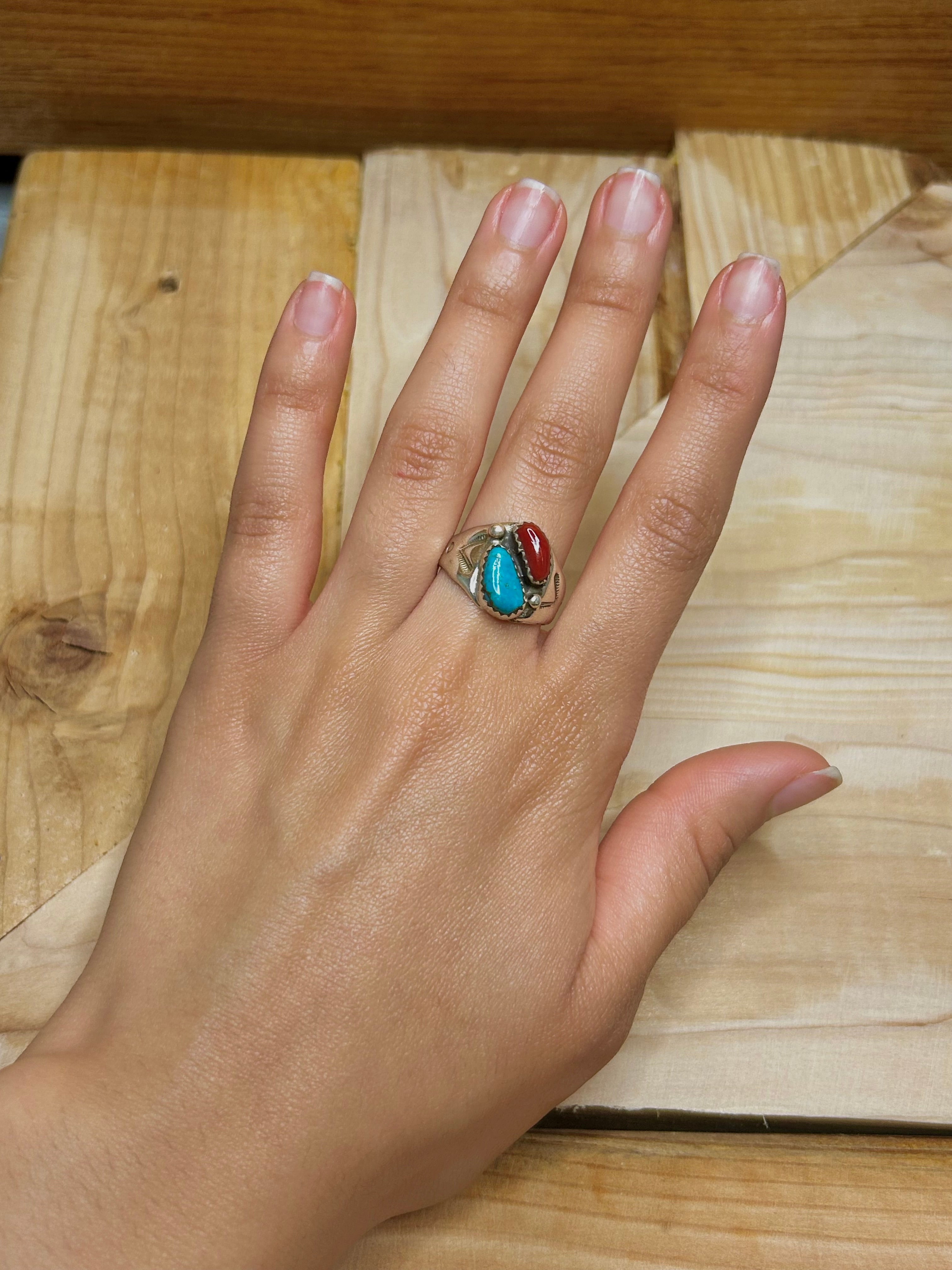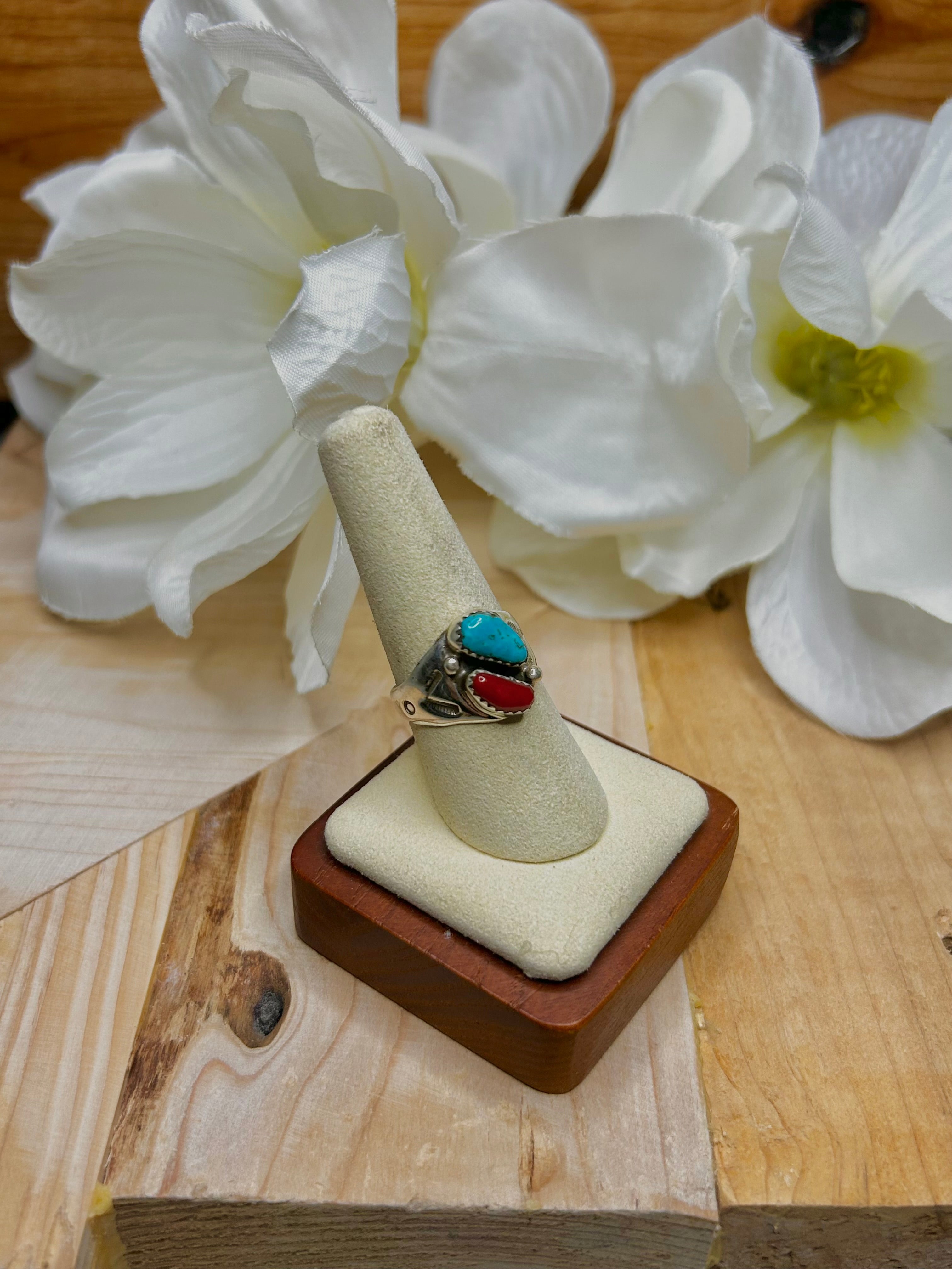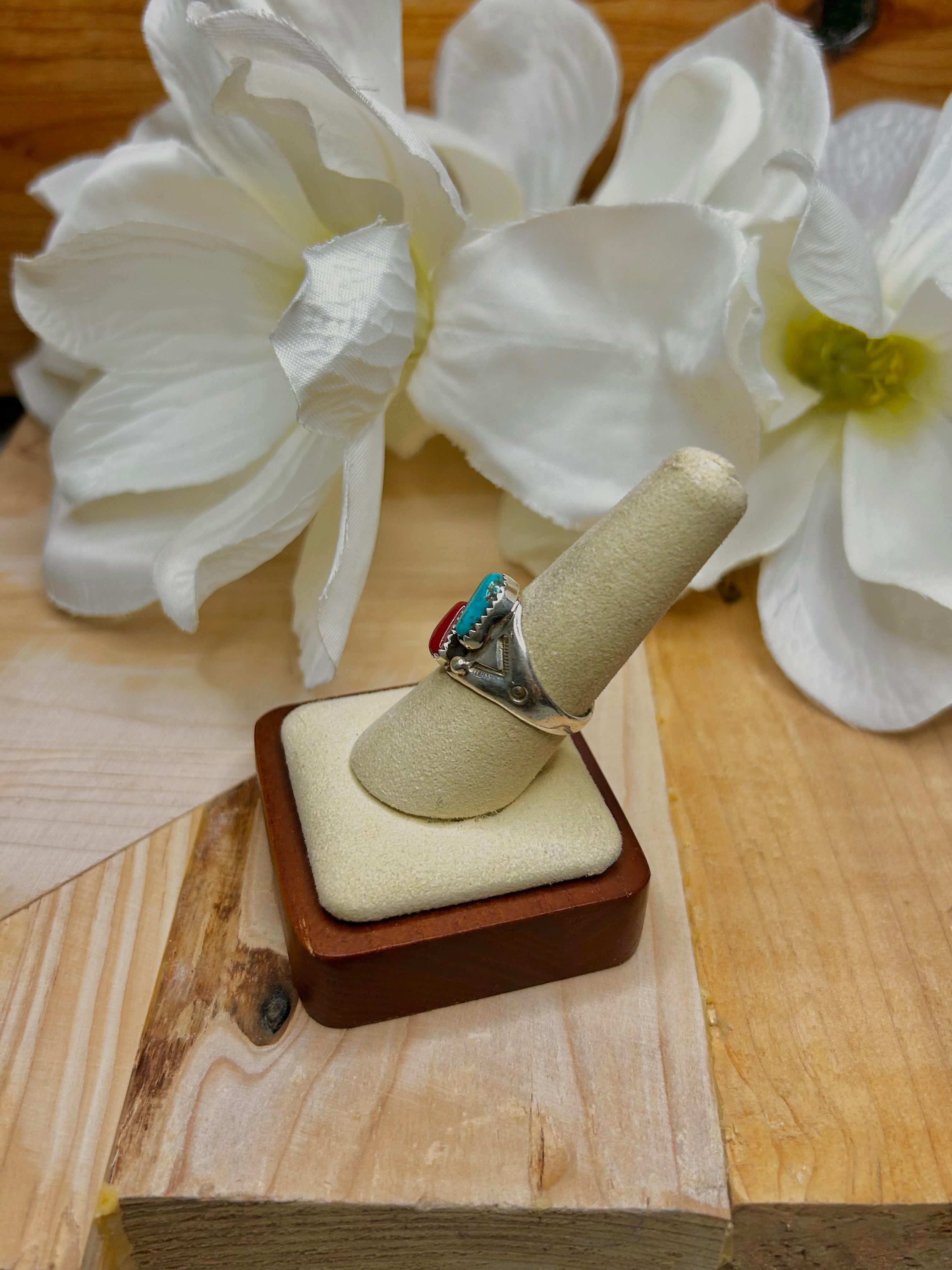 Navajo Made Multi Stone & Sterling Silver Cluster Ring Size 8.5