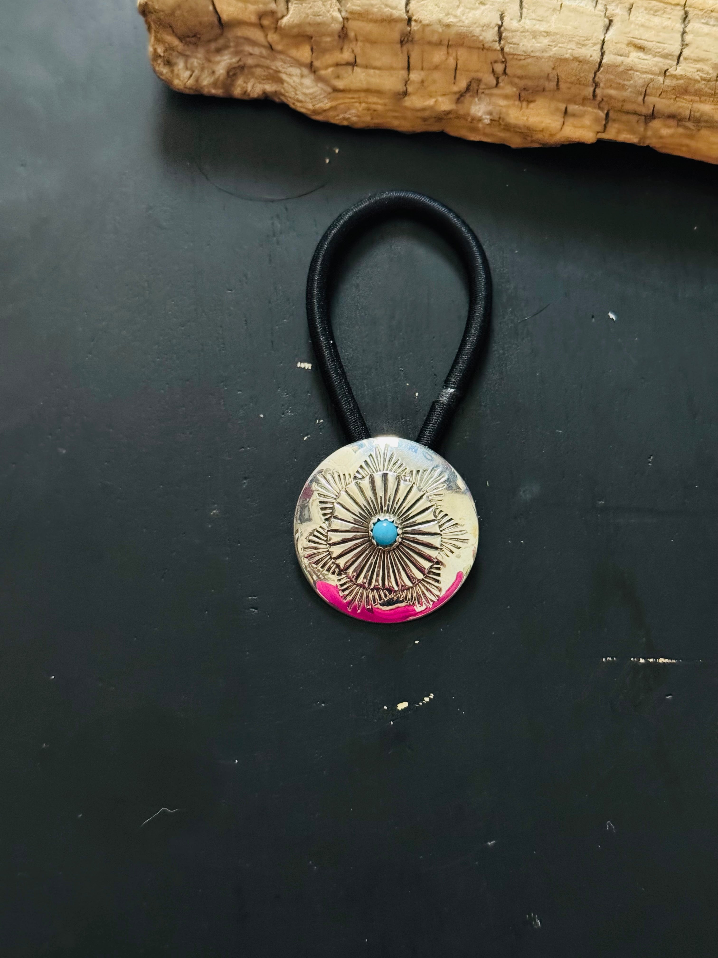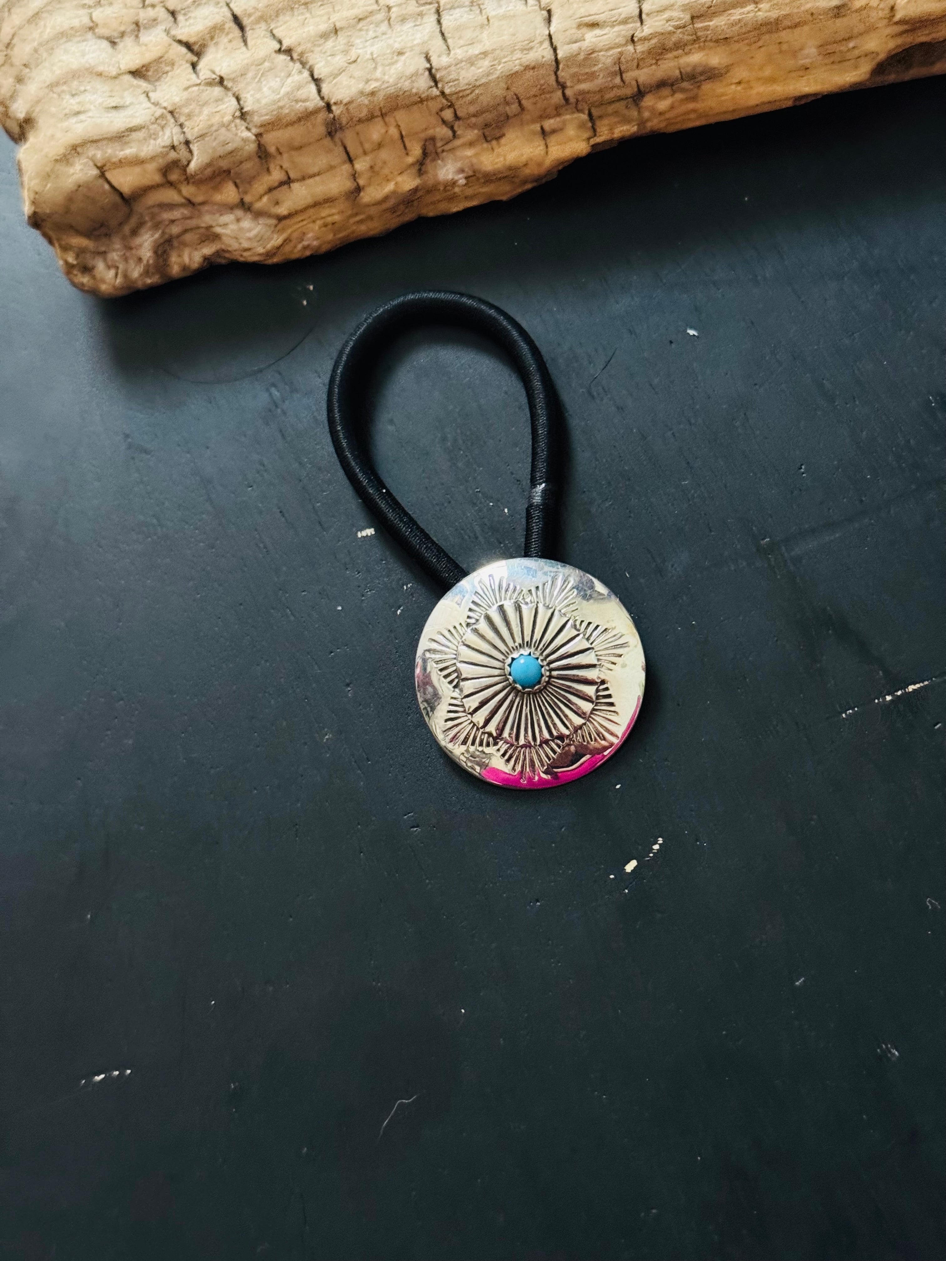Navajo Made Kingman Turquoise & Sterling Silver Concho Ponytail Holder