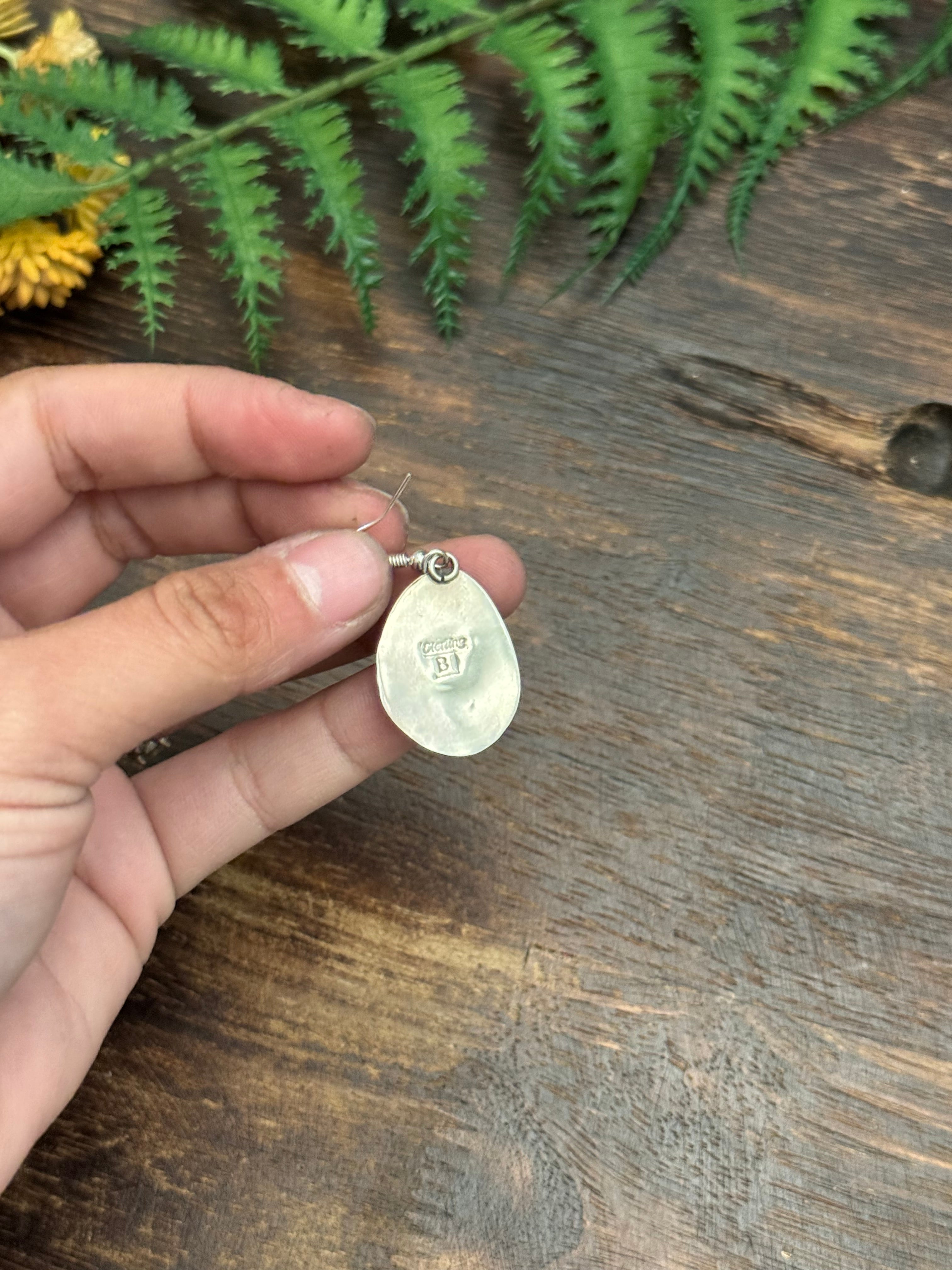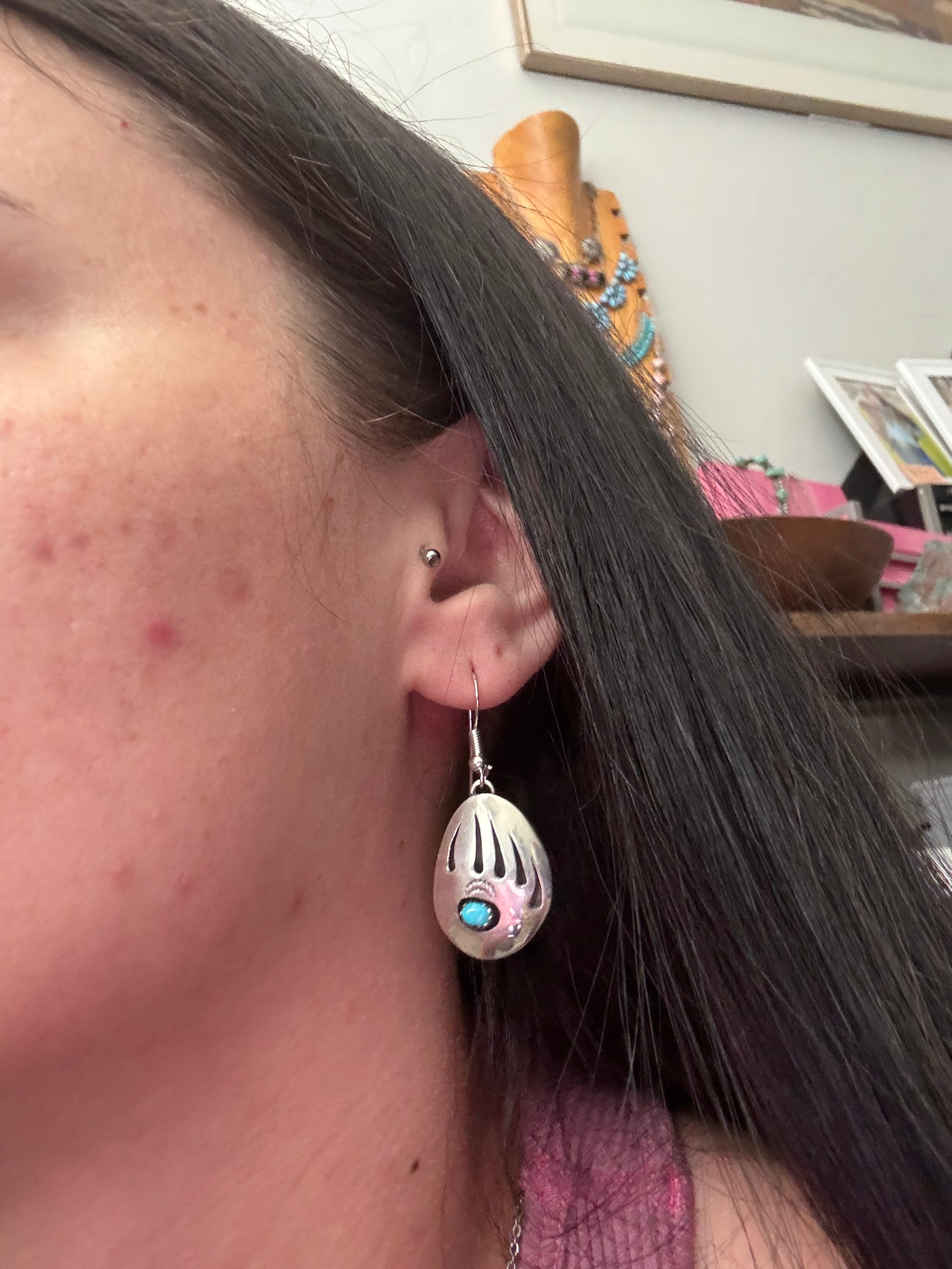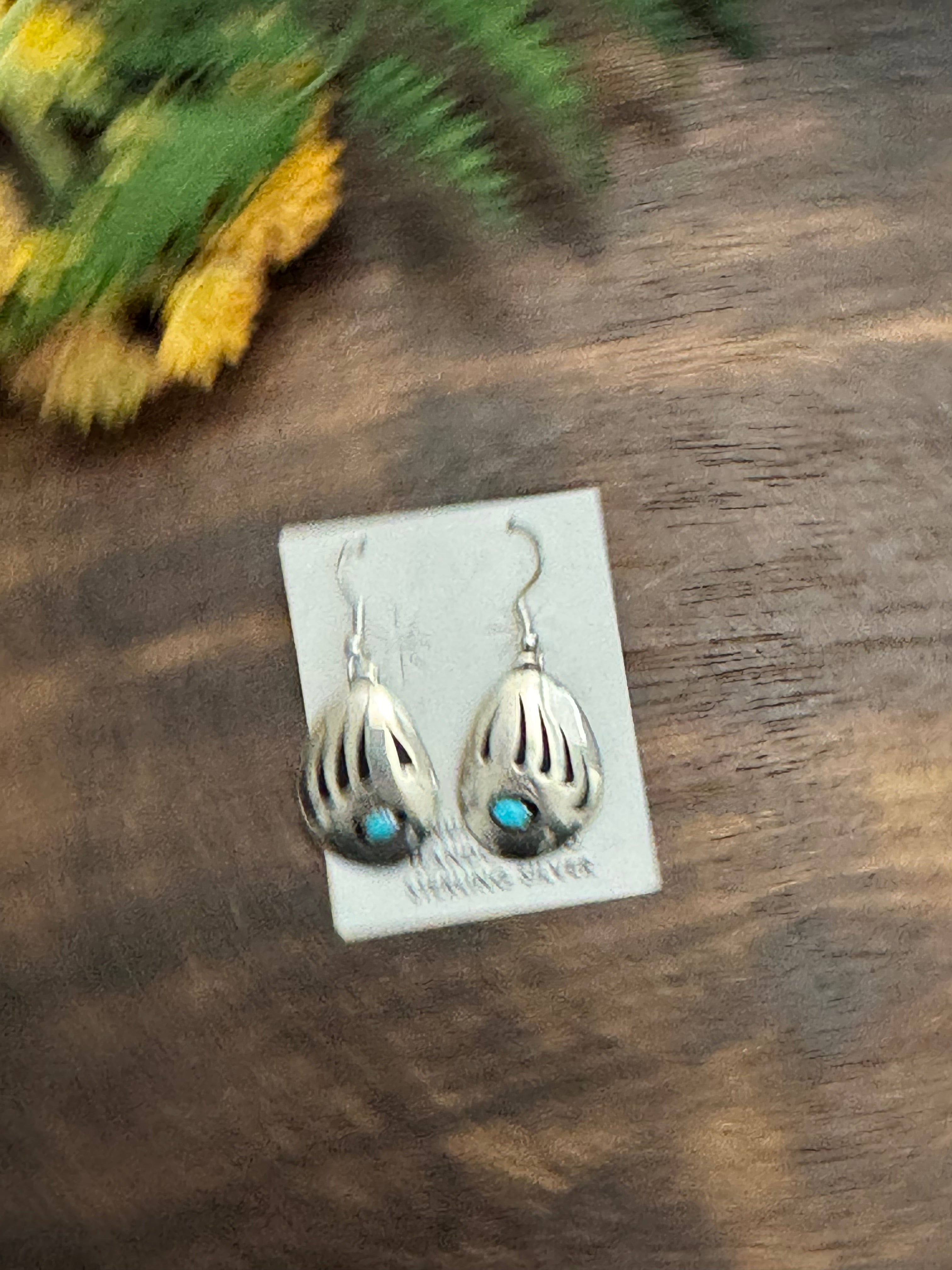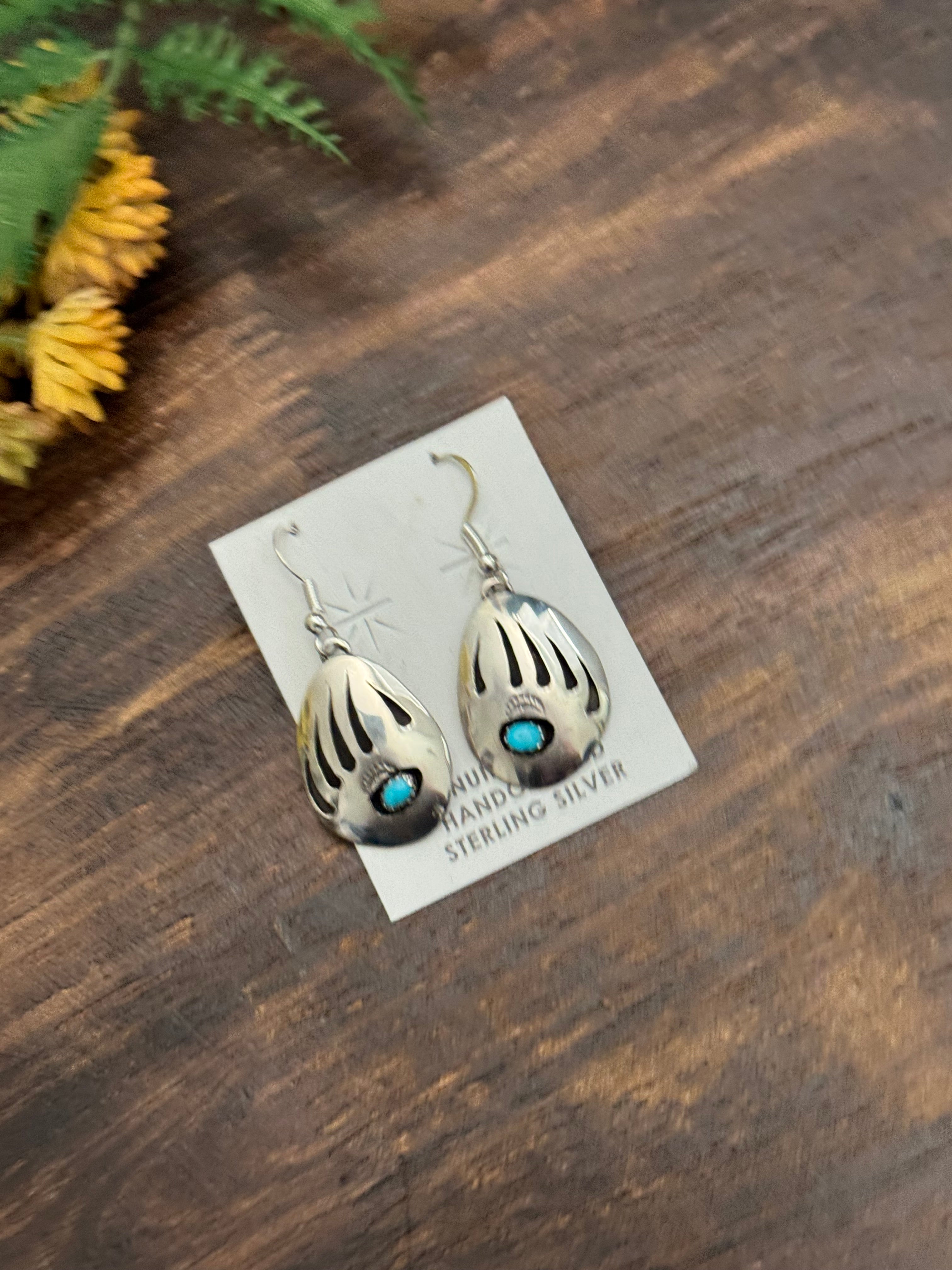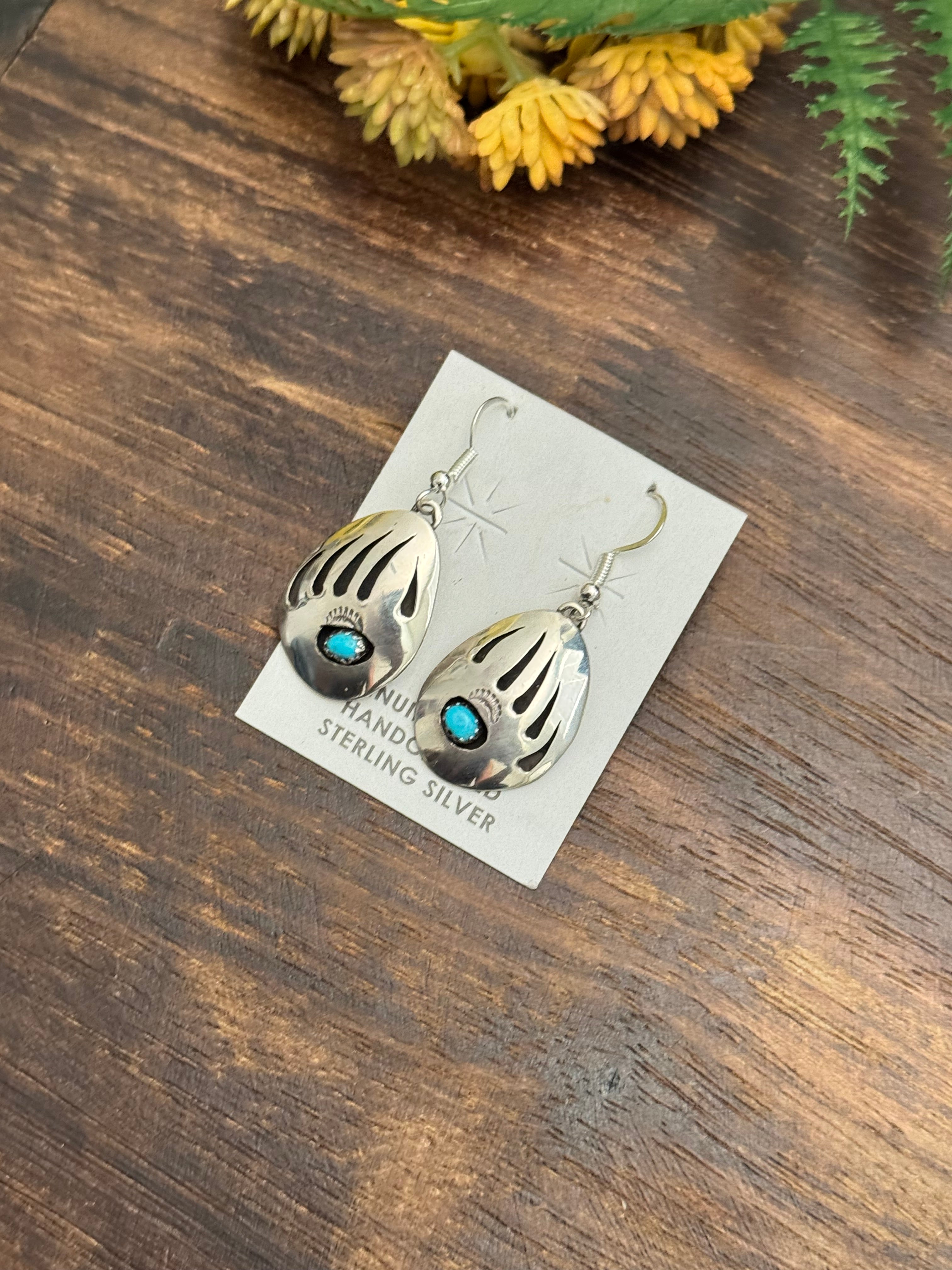 Navajo Made Kingman Turquoise & Sterling Silver Bear Claw Dangle Earrings