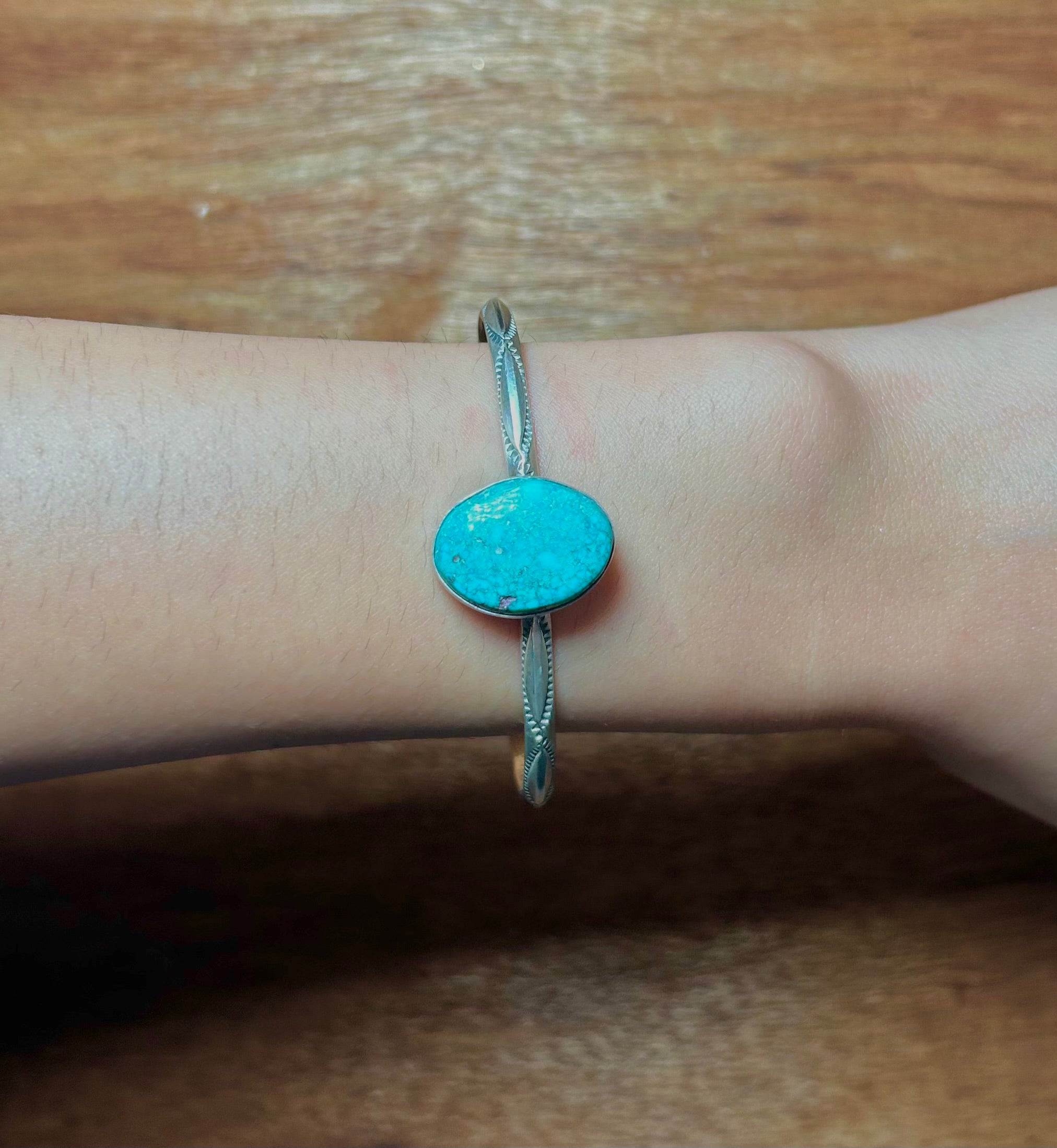 Navajo Made Kingman Turquoise & Sterling Silver Cuff Bracelet