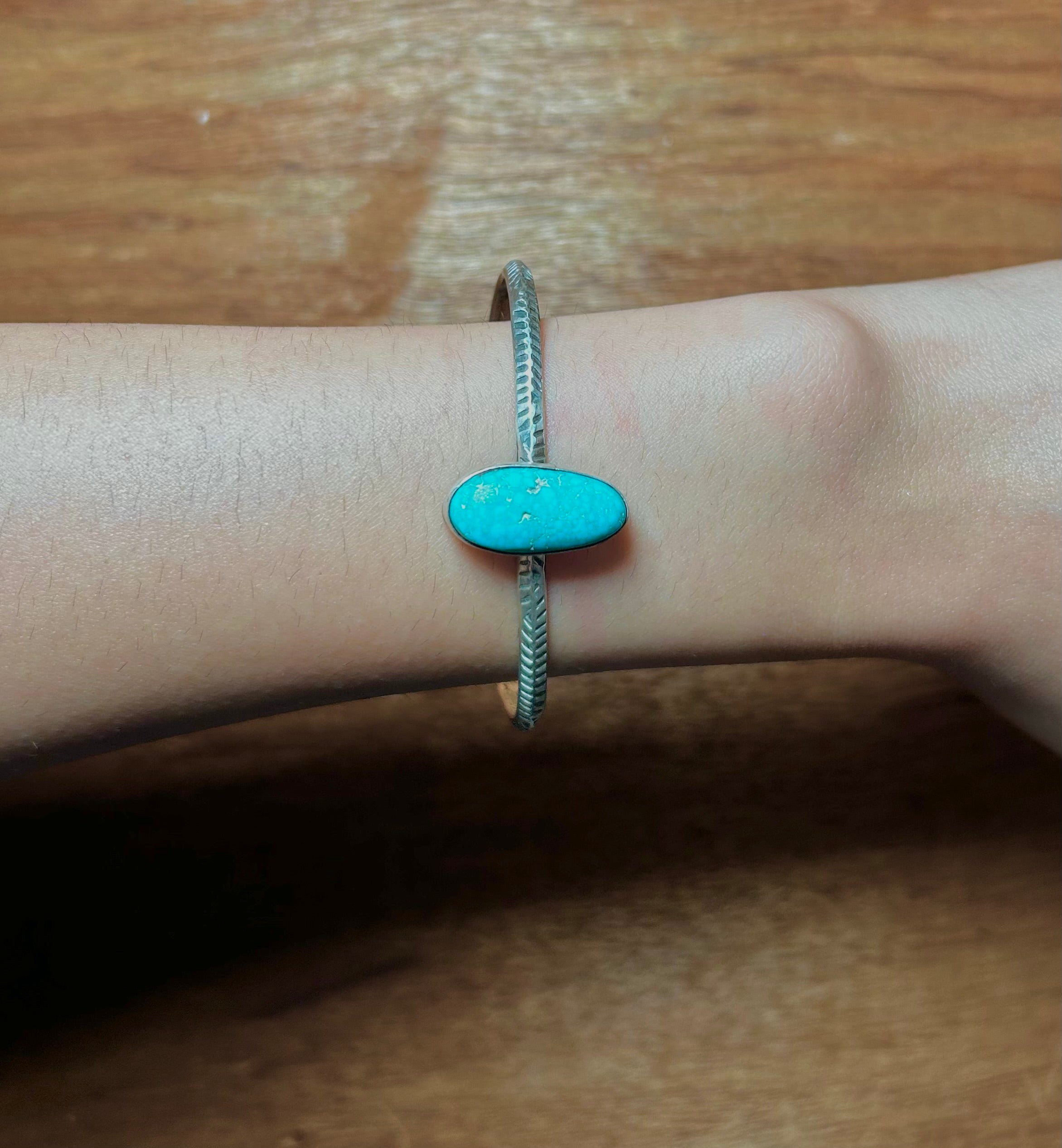 Navajo Made Kingman Turquoise & Sterling Silver Cuff Bracelet