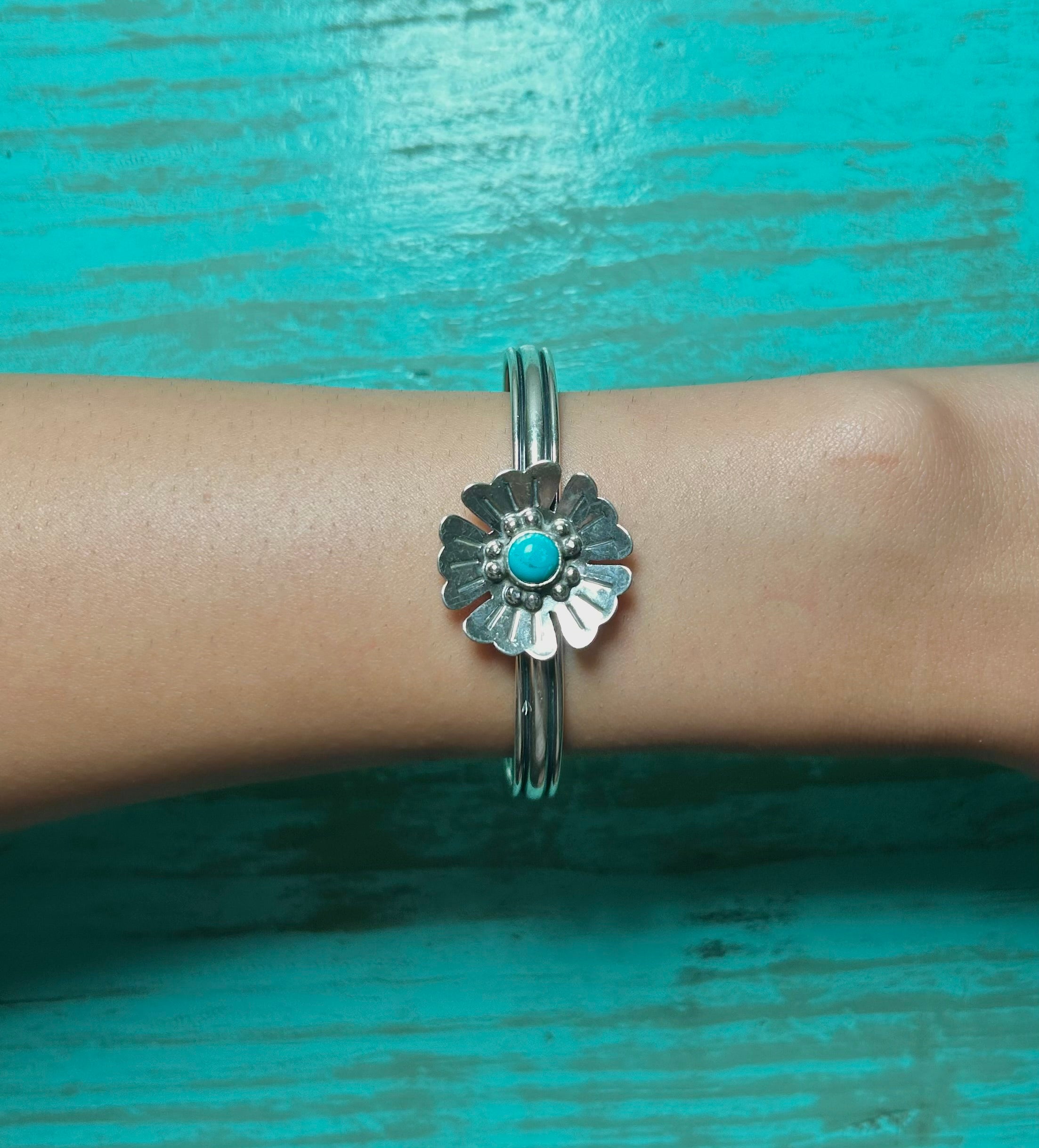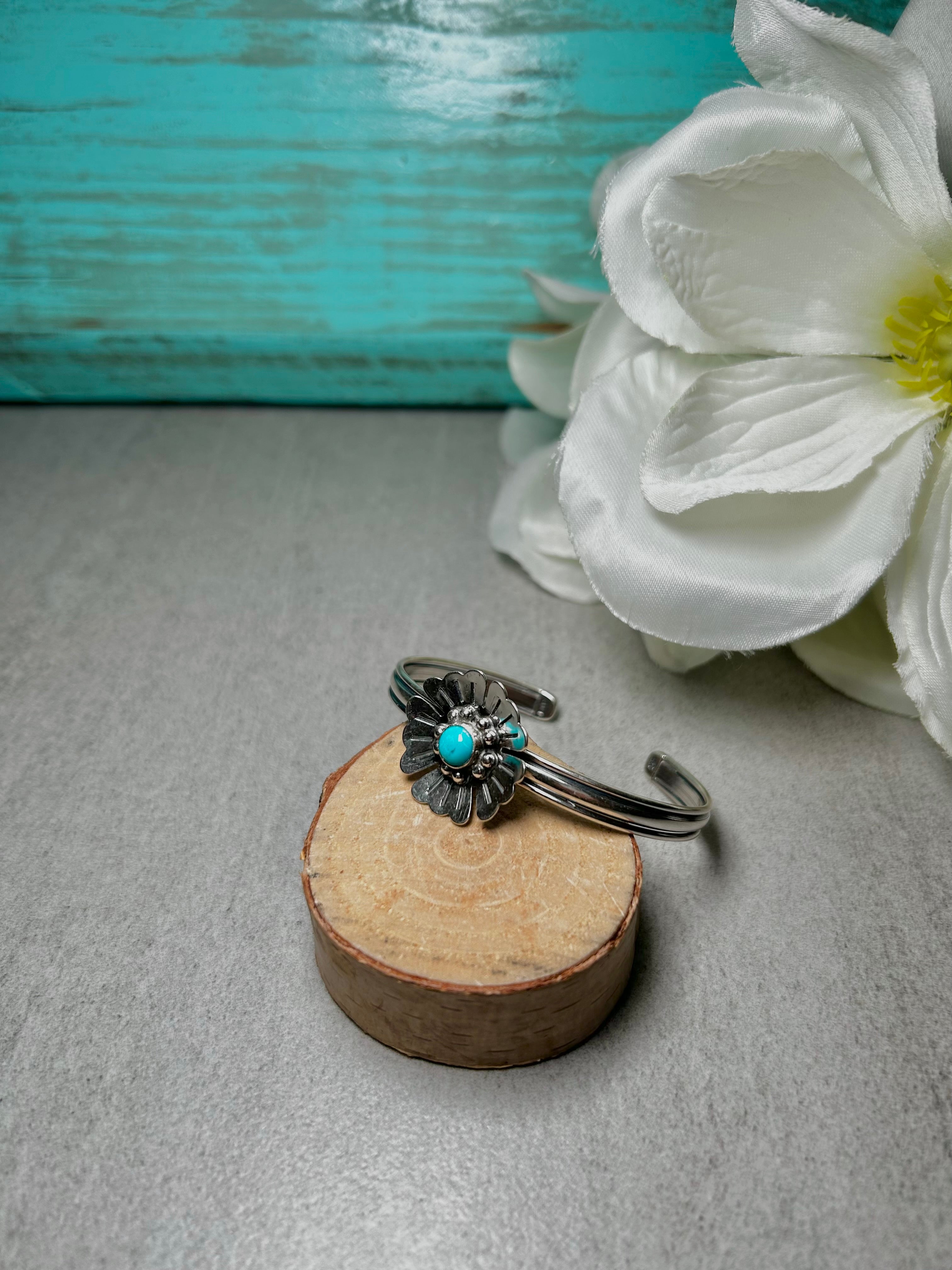 Navajo Made Kingman Turquoise & Sterling Silver Cuff Bracelet