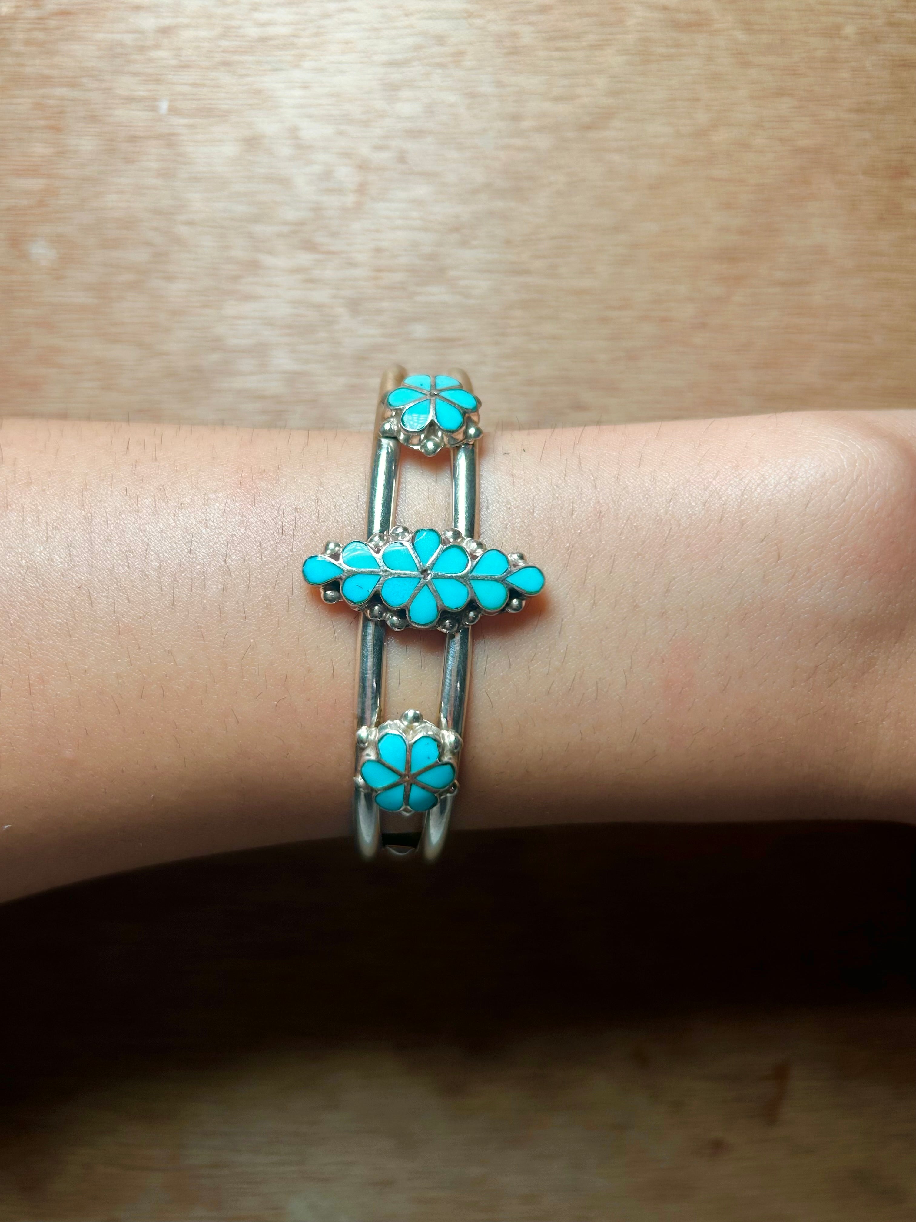 Zuni Made Kingman Turquoise & Sterling Silver Cuff Bracelet