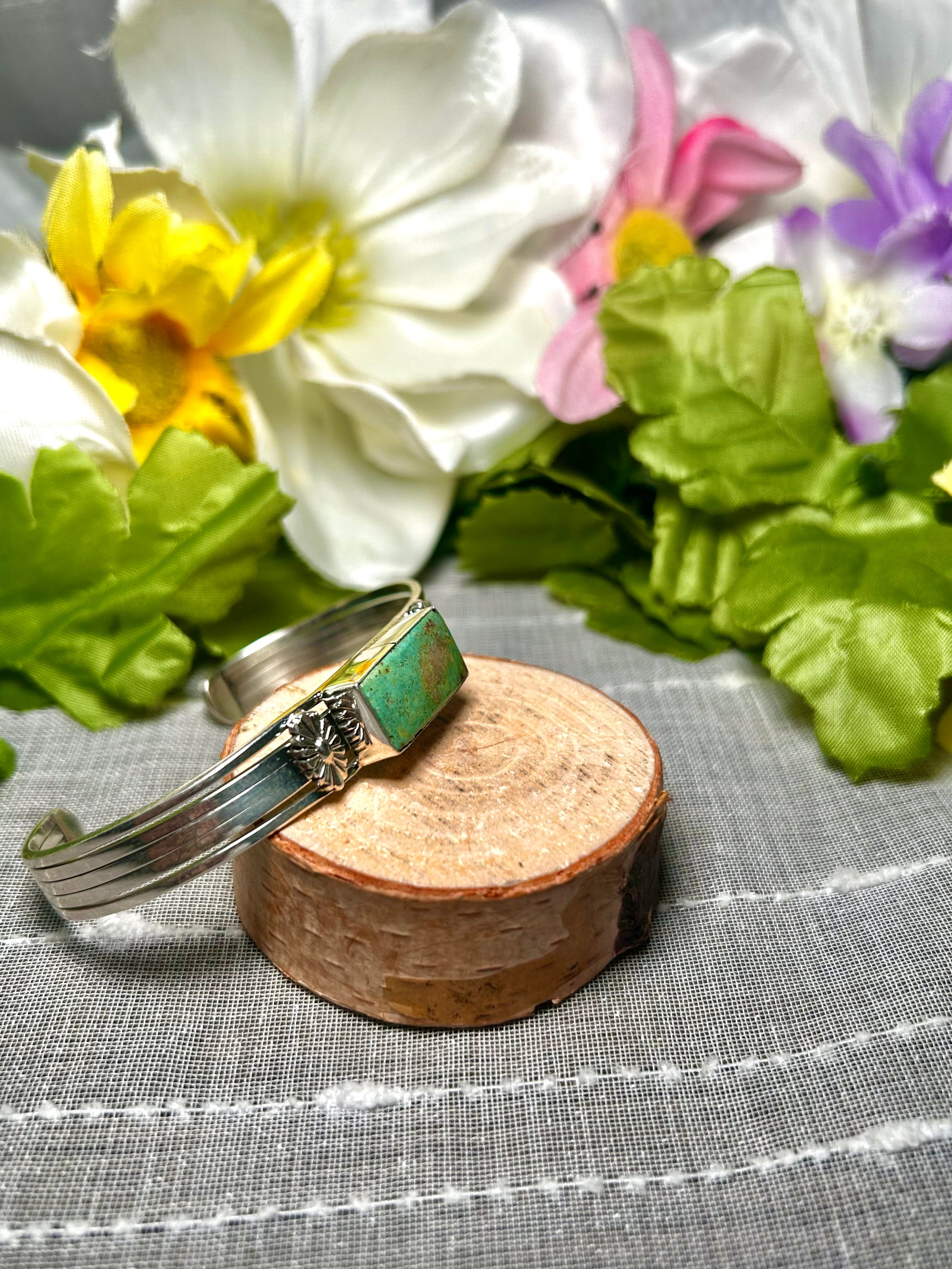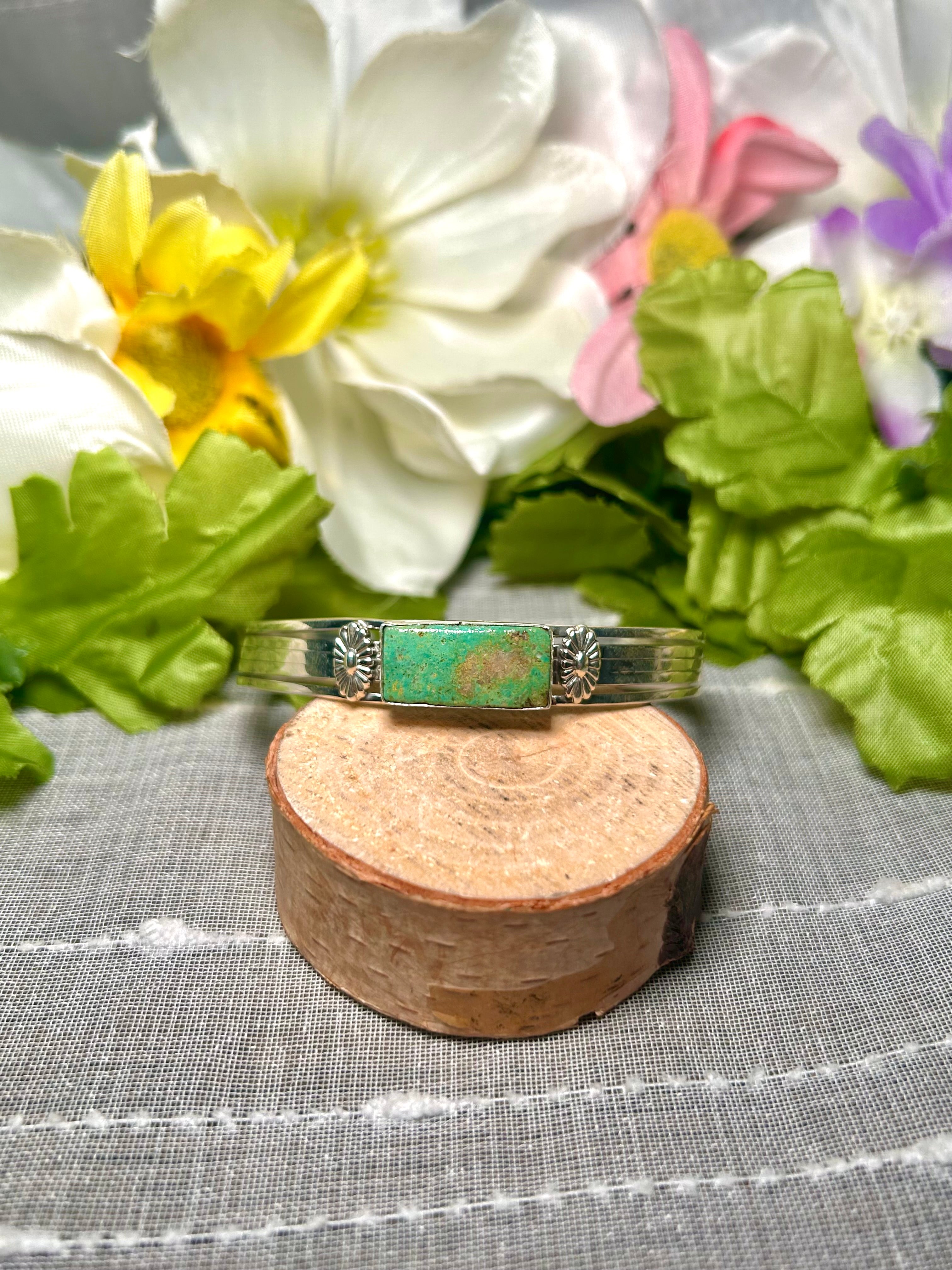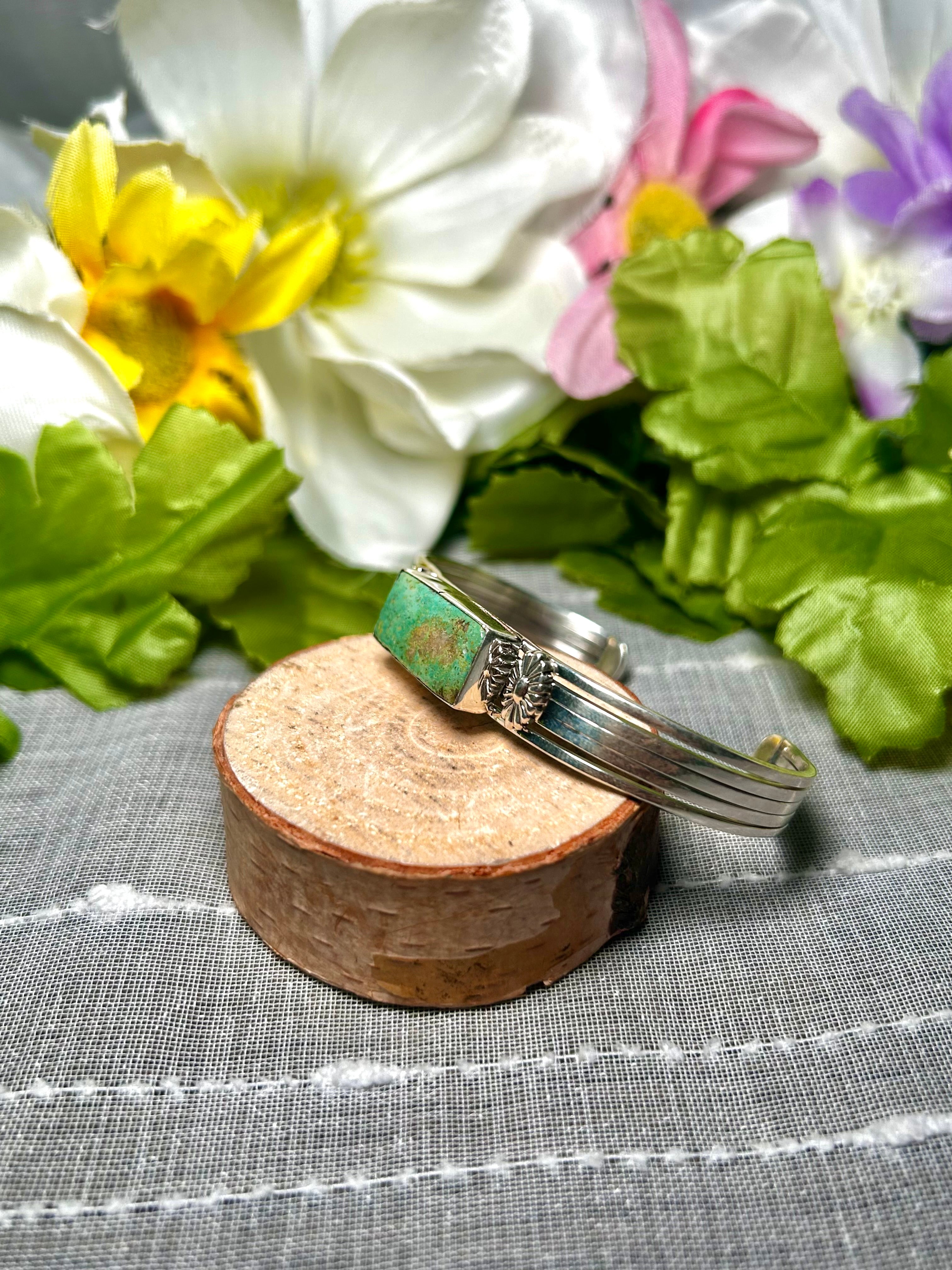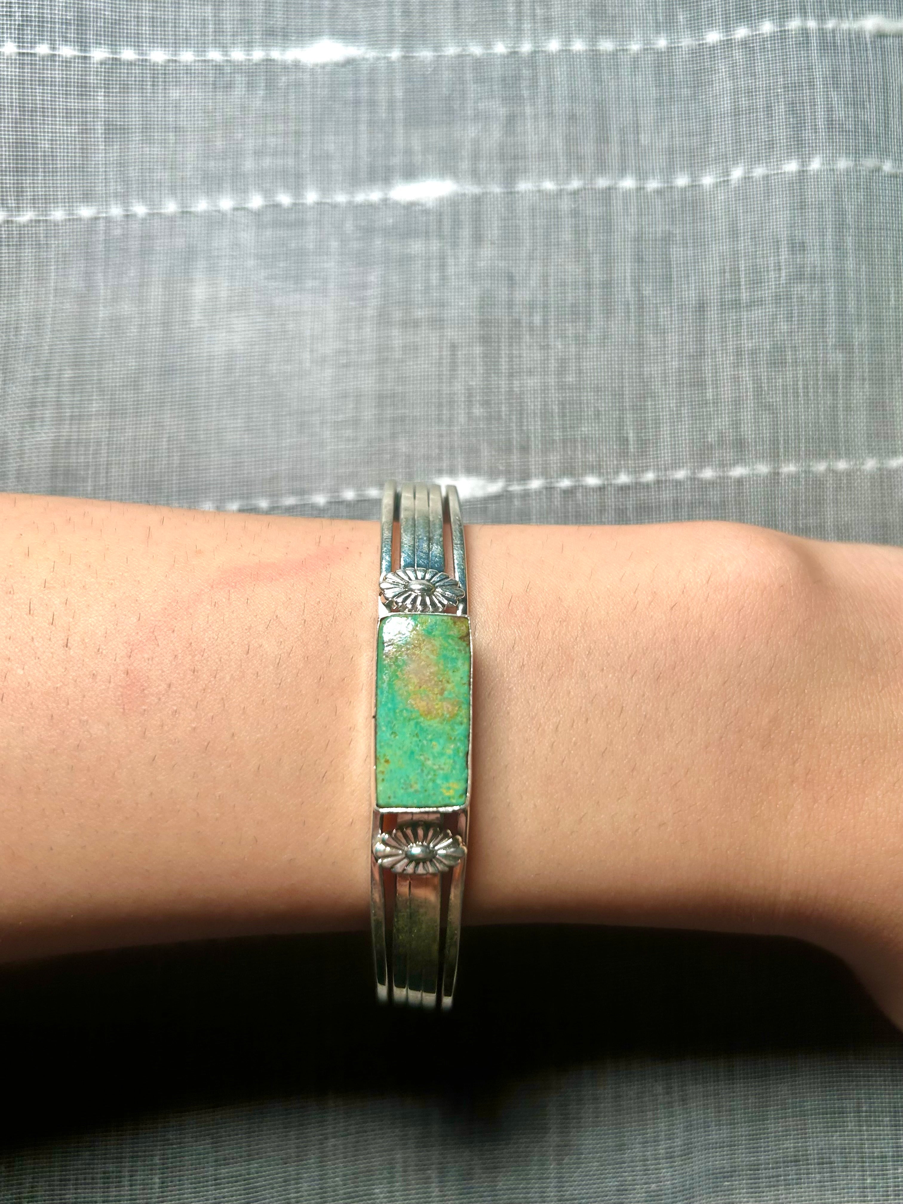 Navajo Made Kingman Turquoise & Sterling Silver Cuff Bracelet