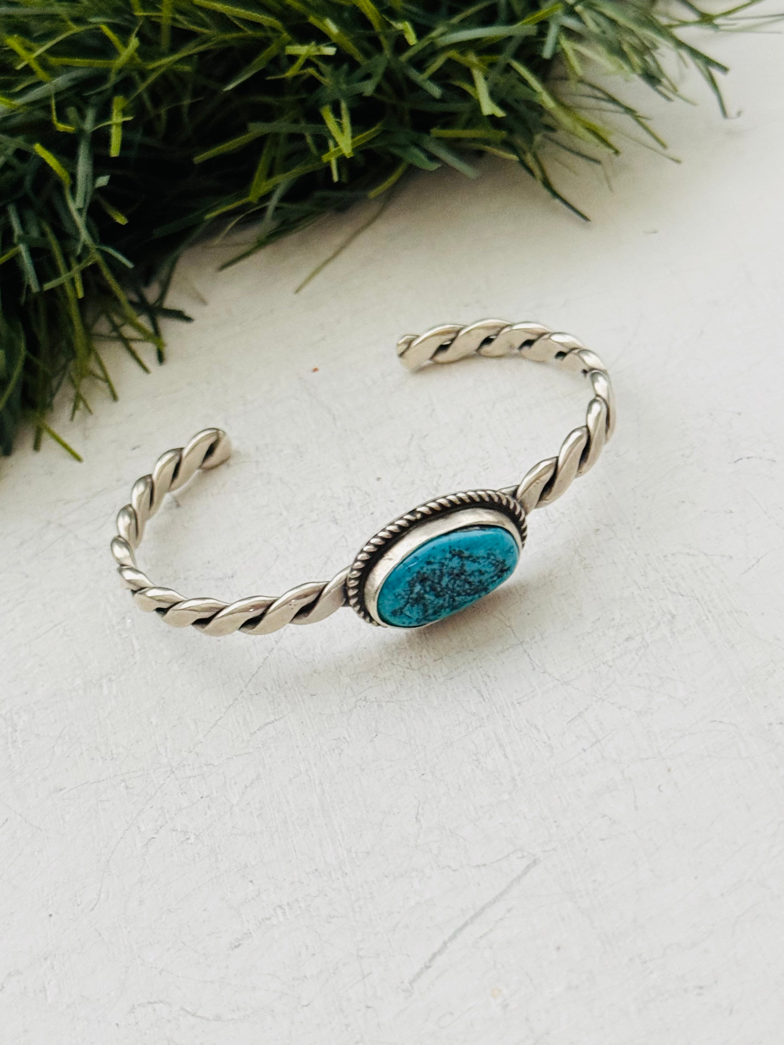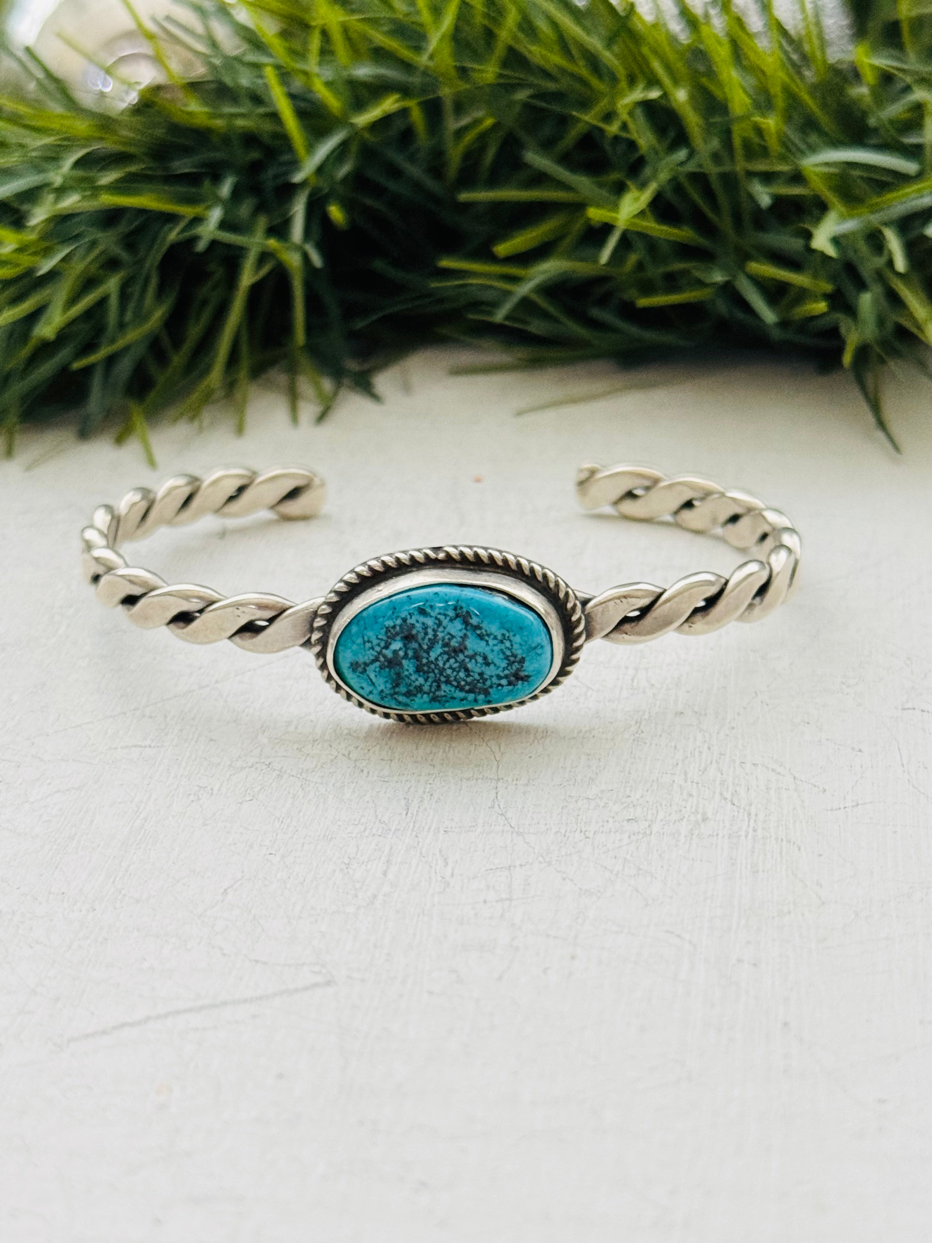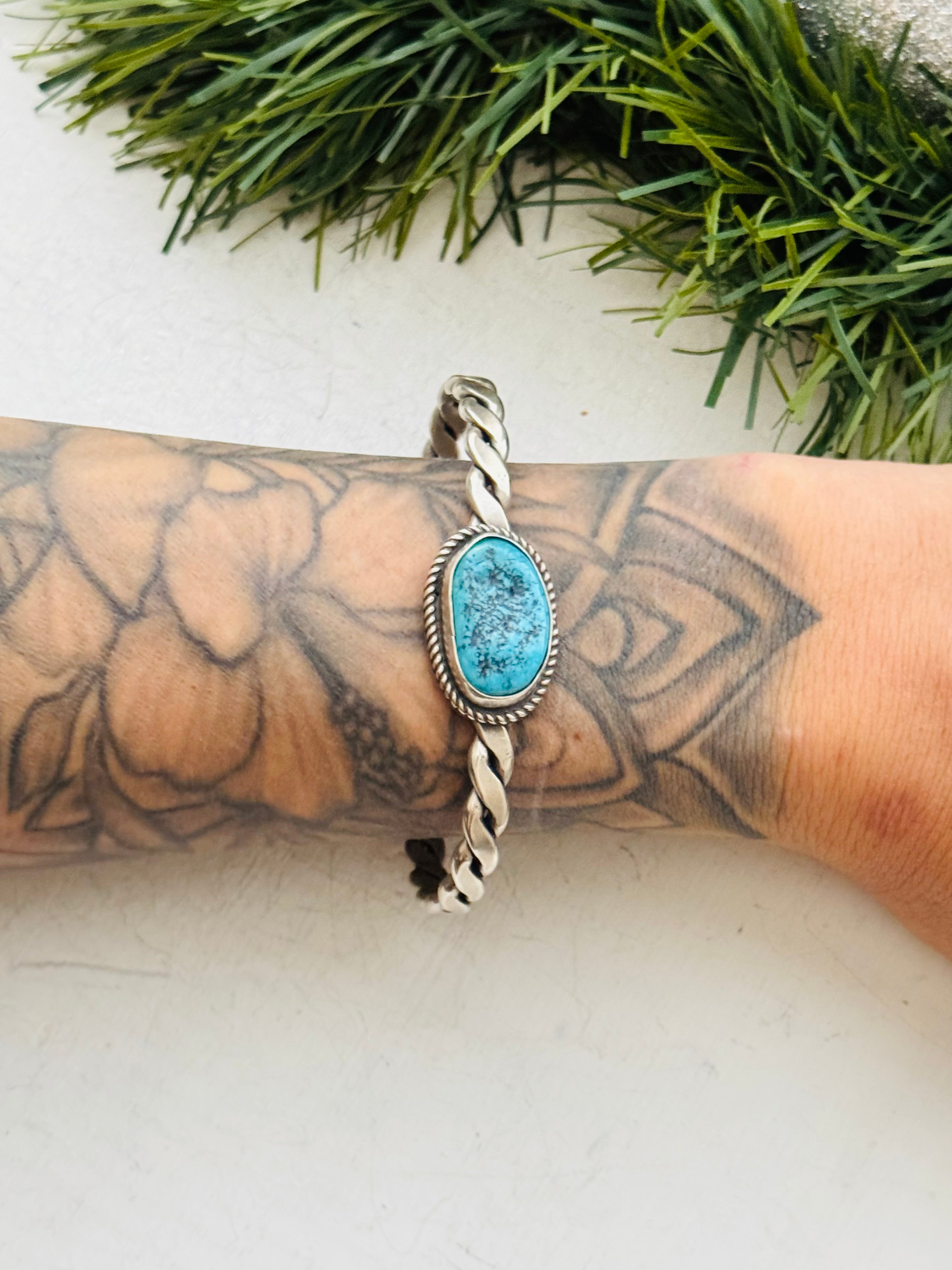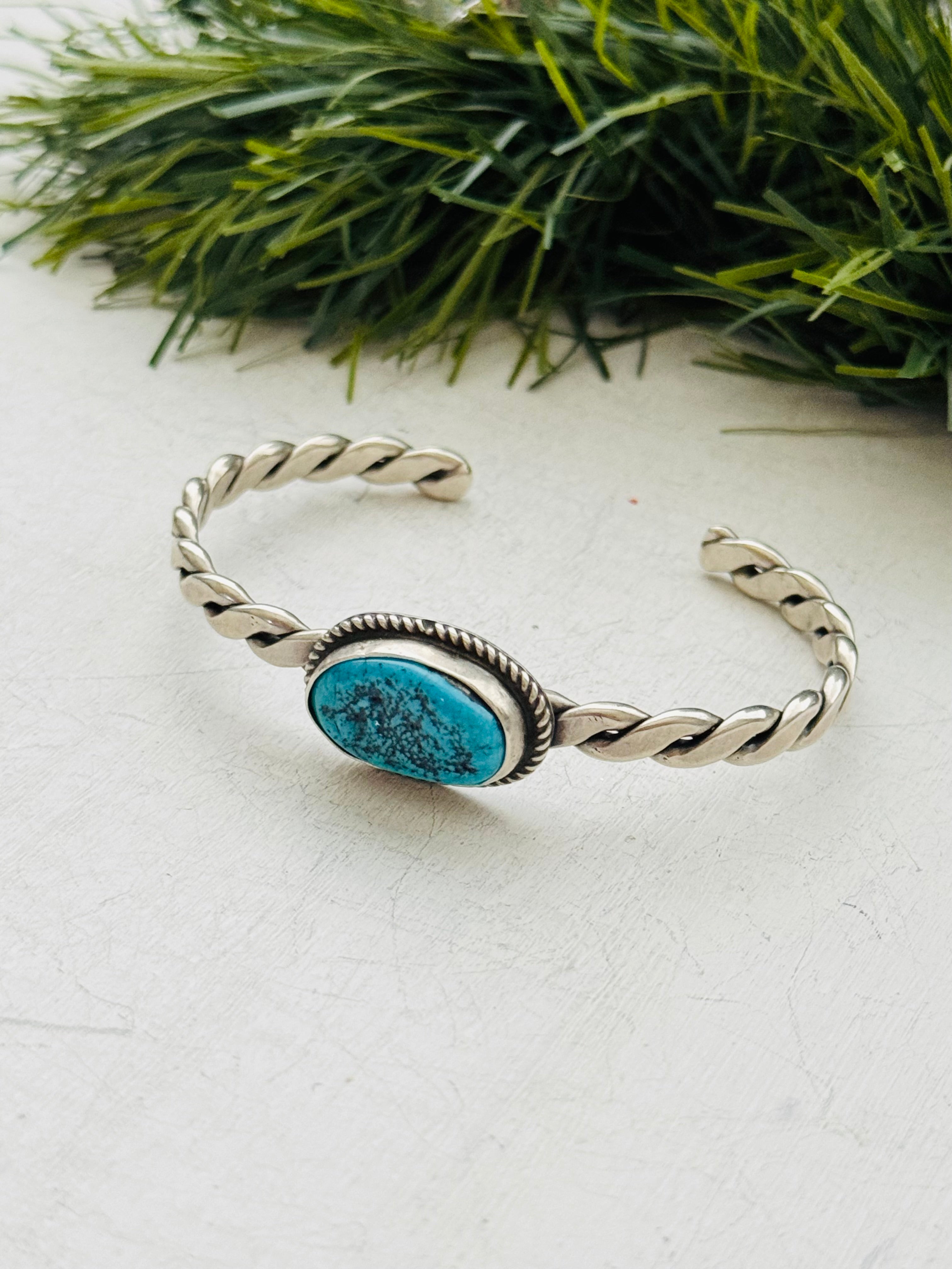 Navajo Made Kingman Turquoise & Sterling Silver Cuff Bracelet
