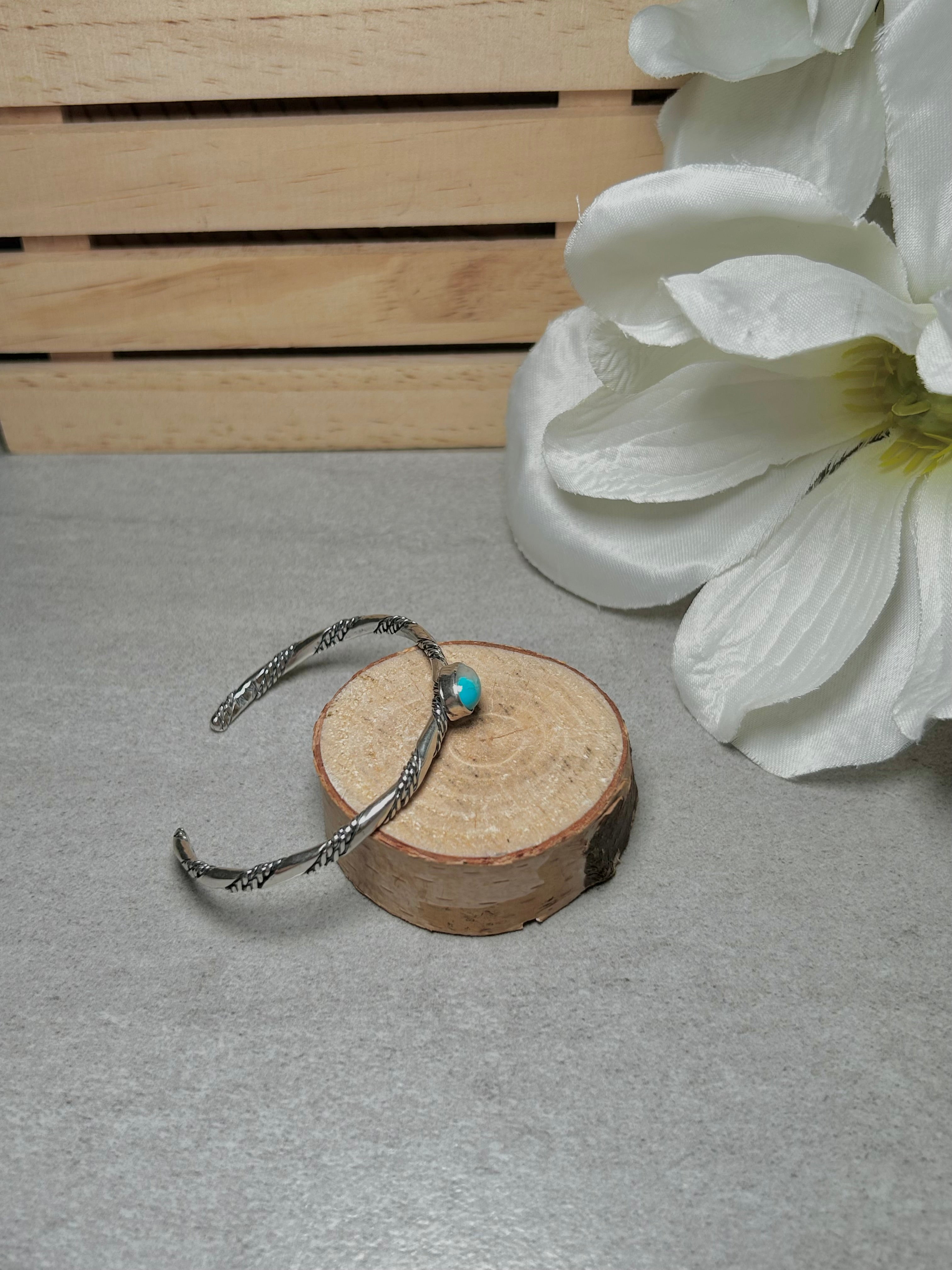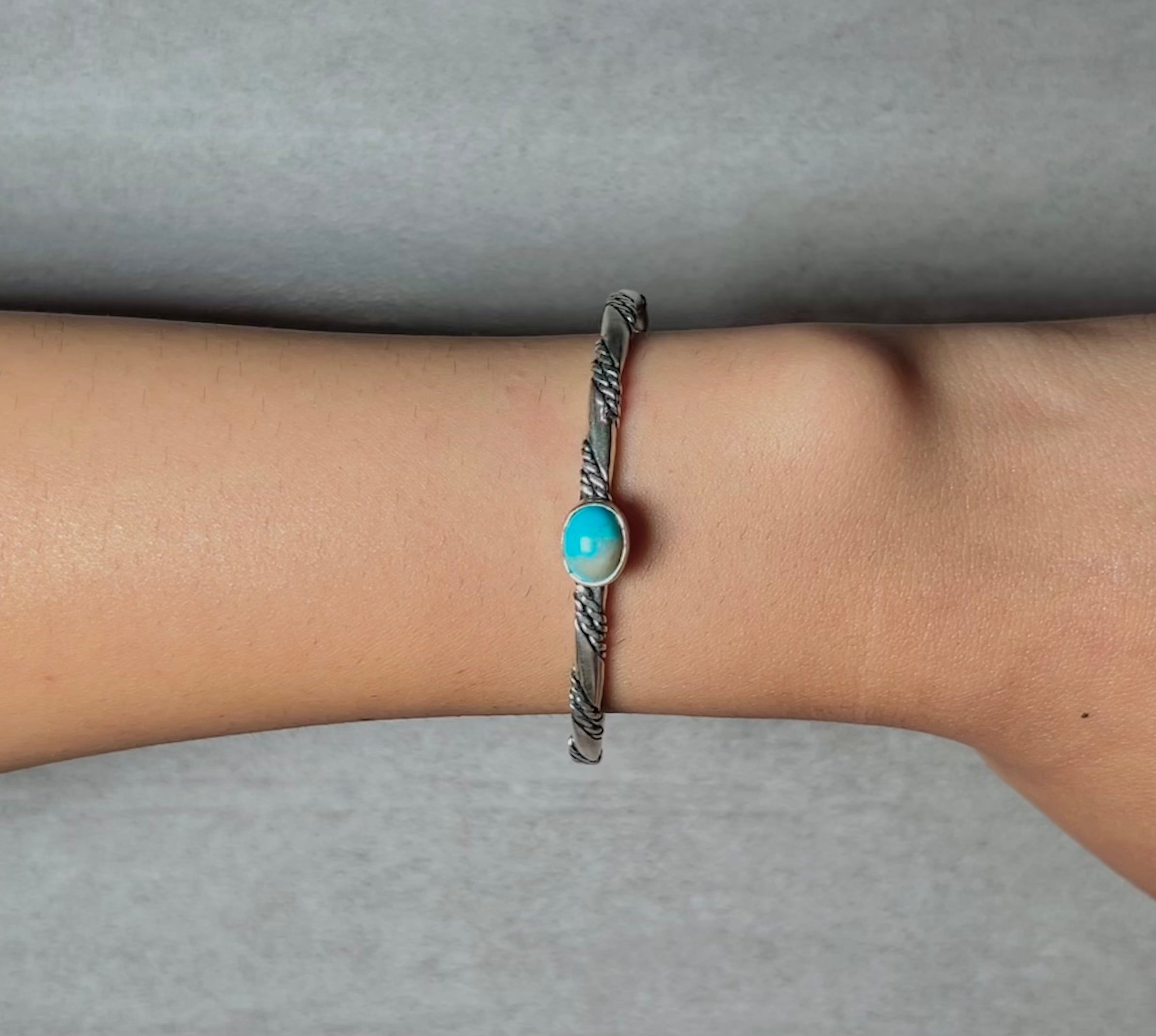 Navajo Made Kingman Turquoise & Sterling Silver Cuff Bracelet