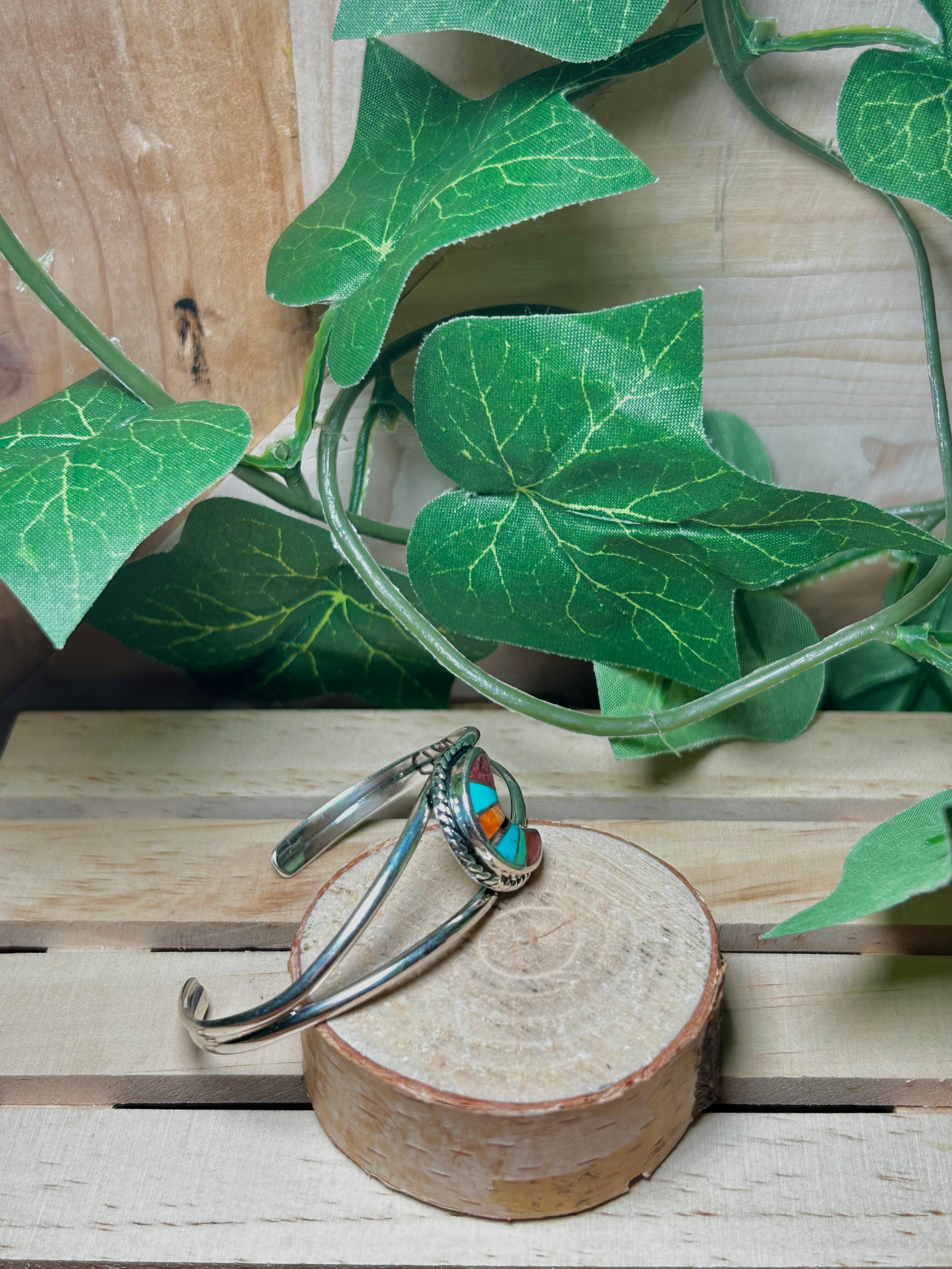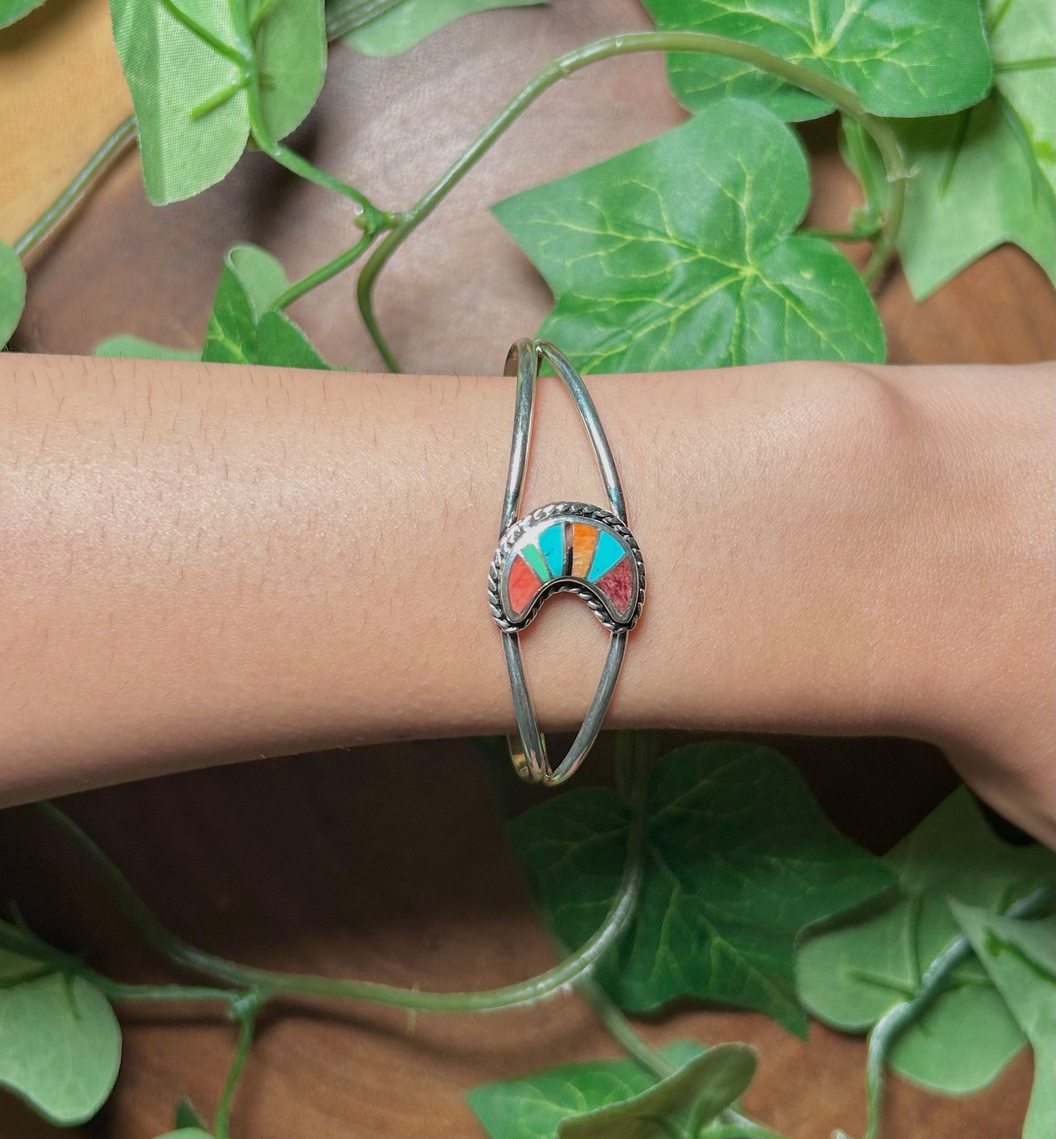 Navajo Made Multi Stone & Sterling Silver Cuff Bracelet