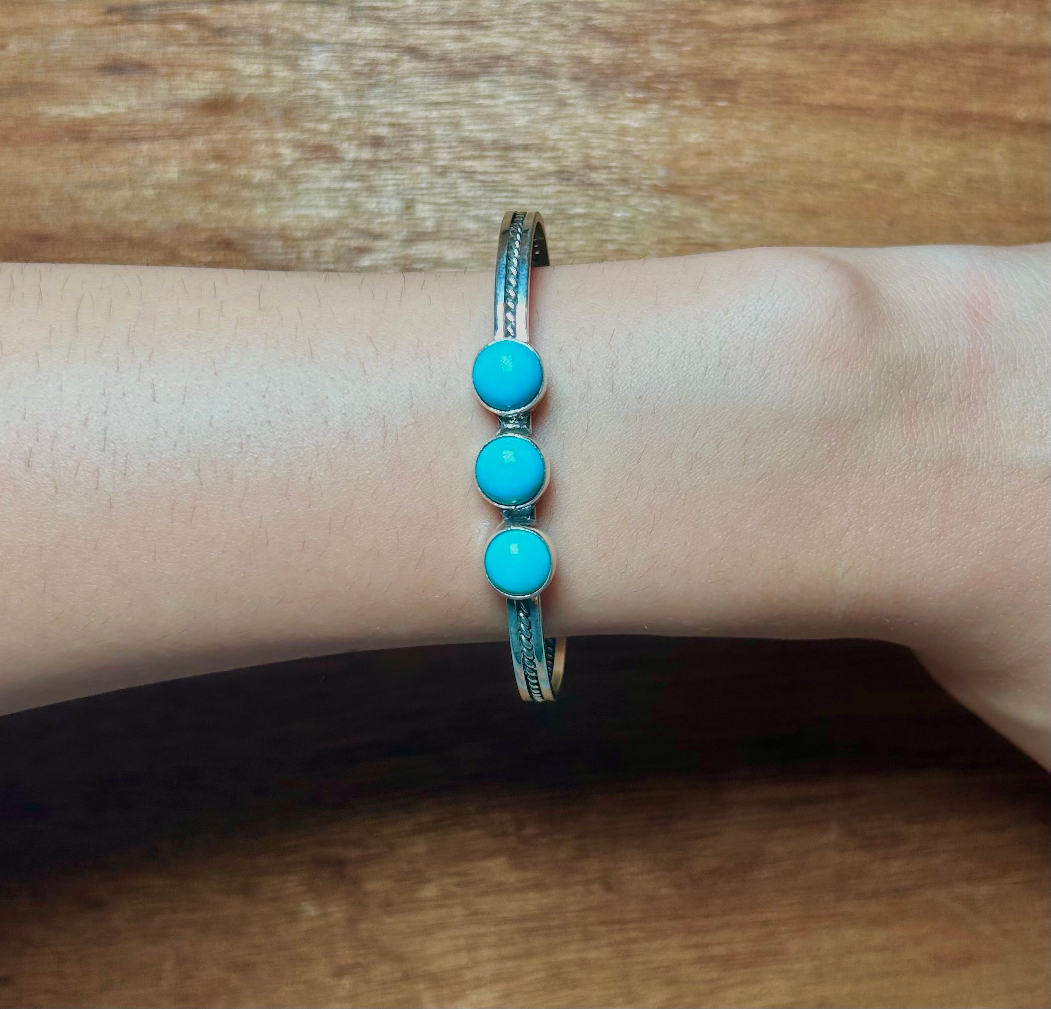Navajo Made Kingman Turquoise & Sterling Silver Cuff Bracelet