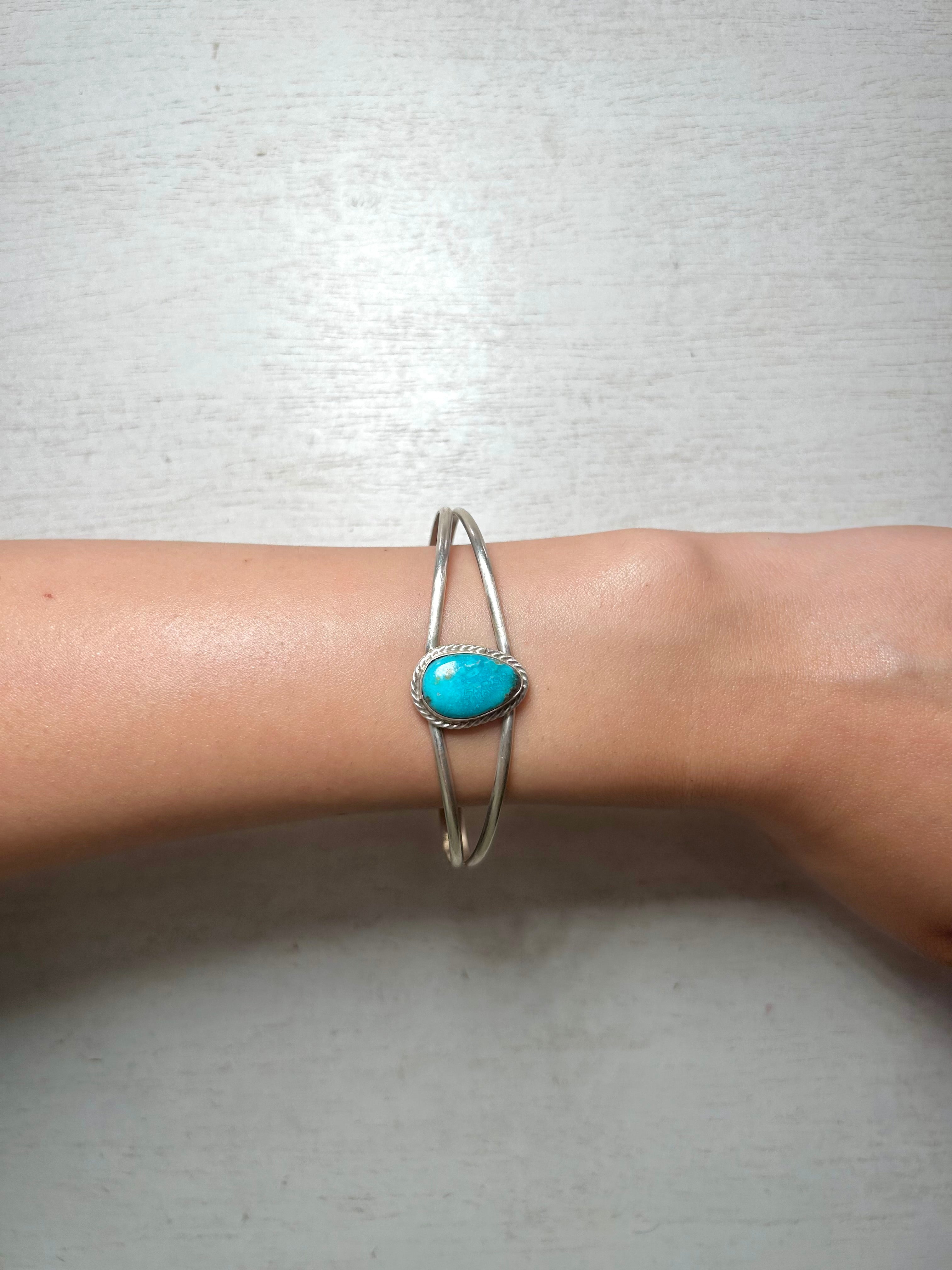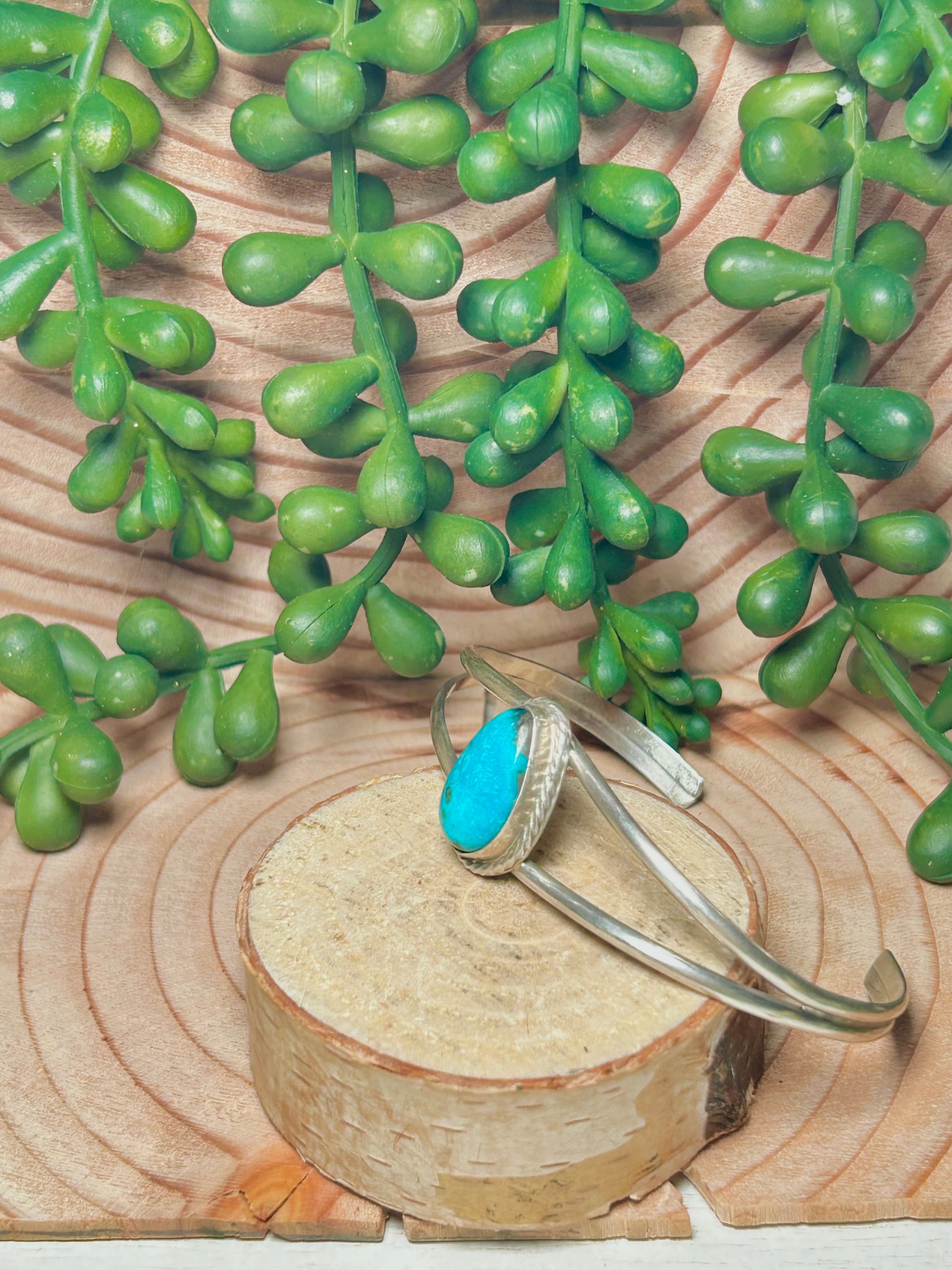 Navajo Made Kingman Turquoise & Sterling Silver Cuff Bracelet