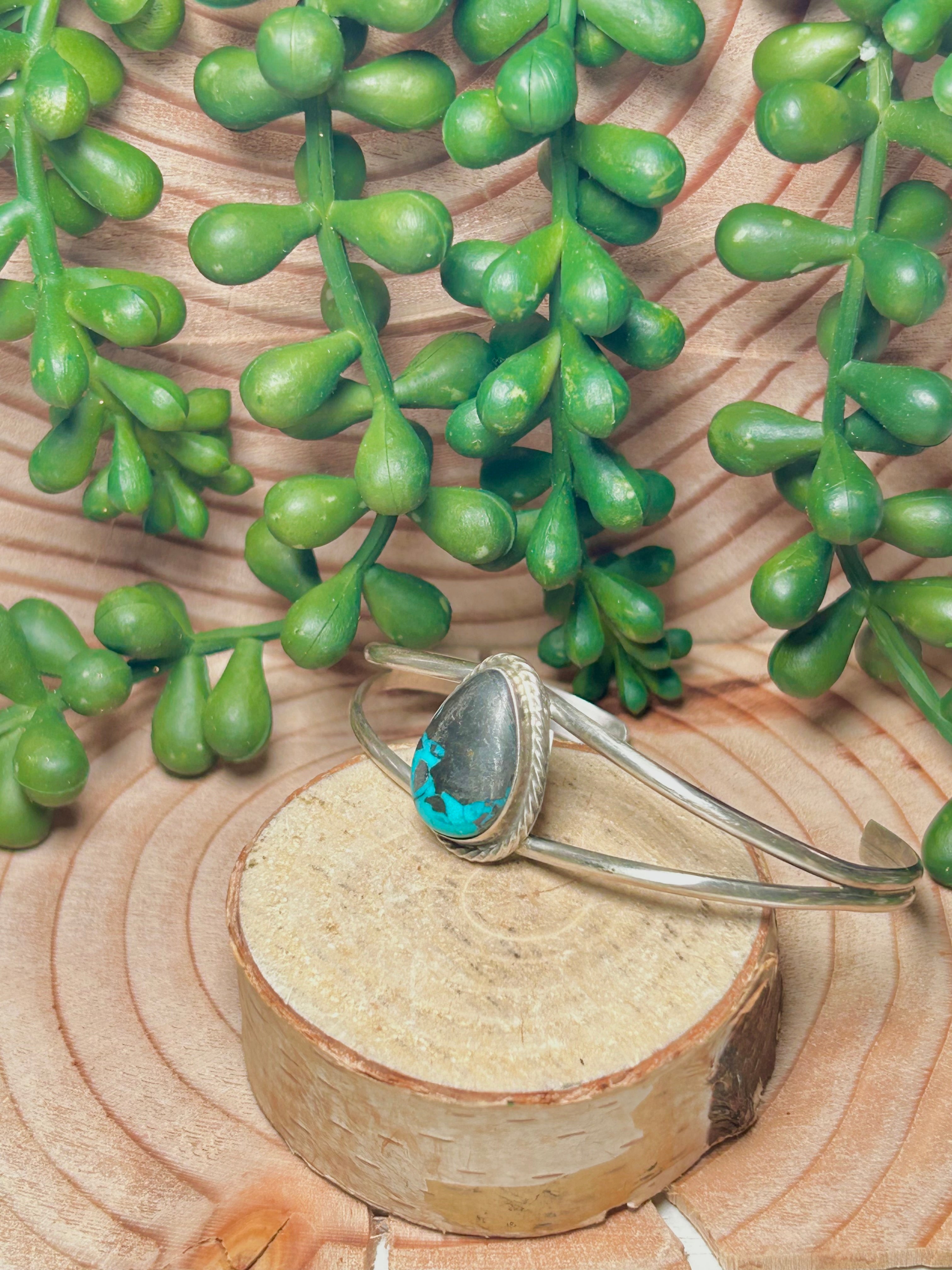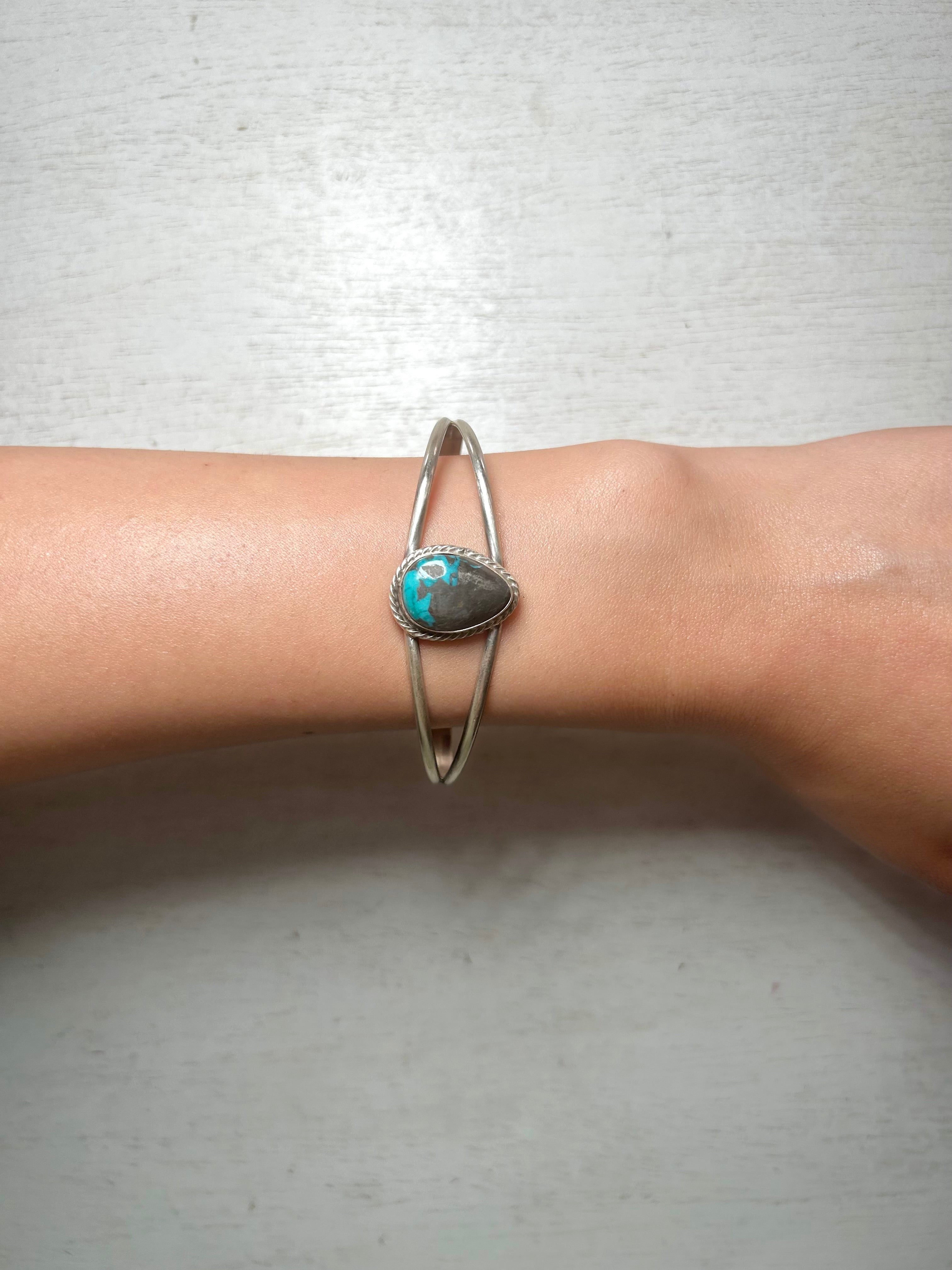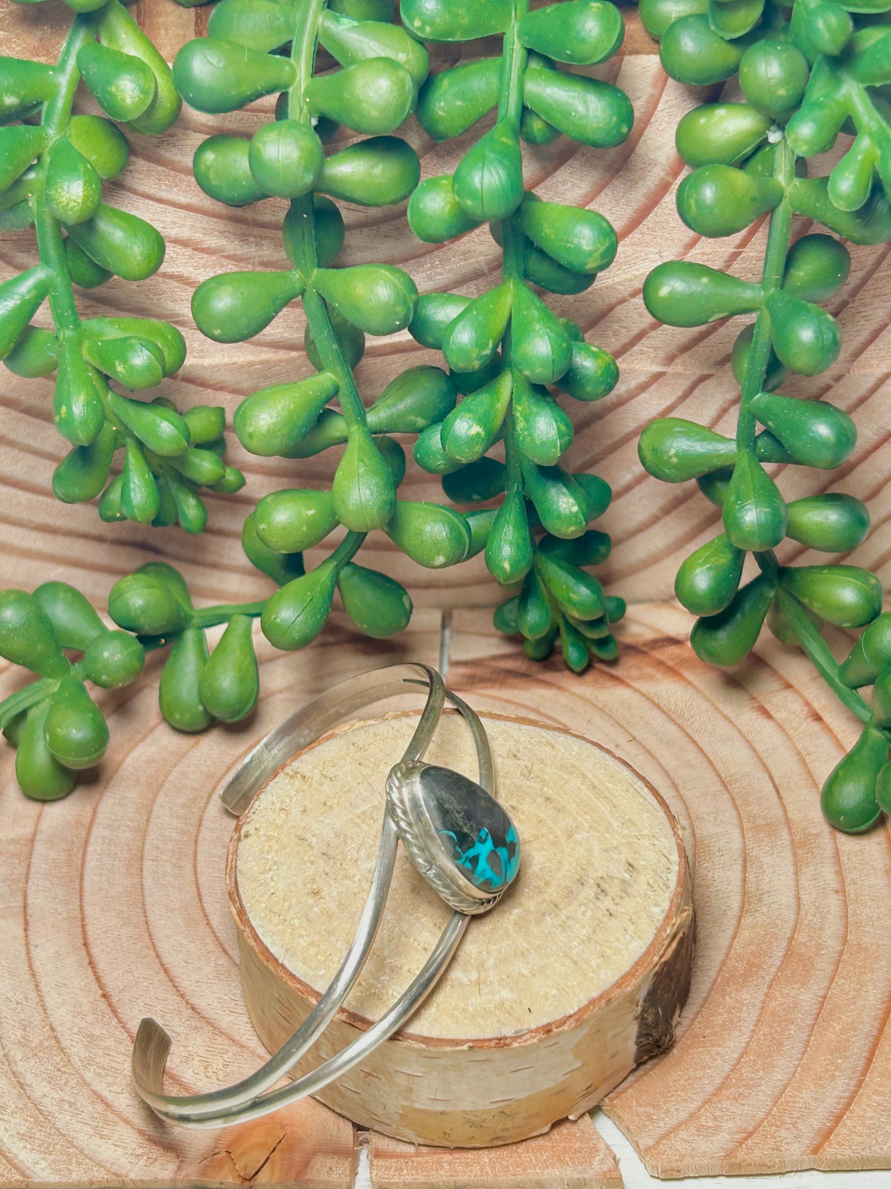 Navajo Made Kingman Turquoise & Sterling Silver Cuff Bracelet
