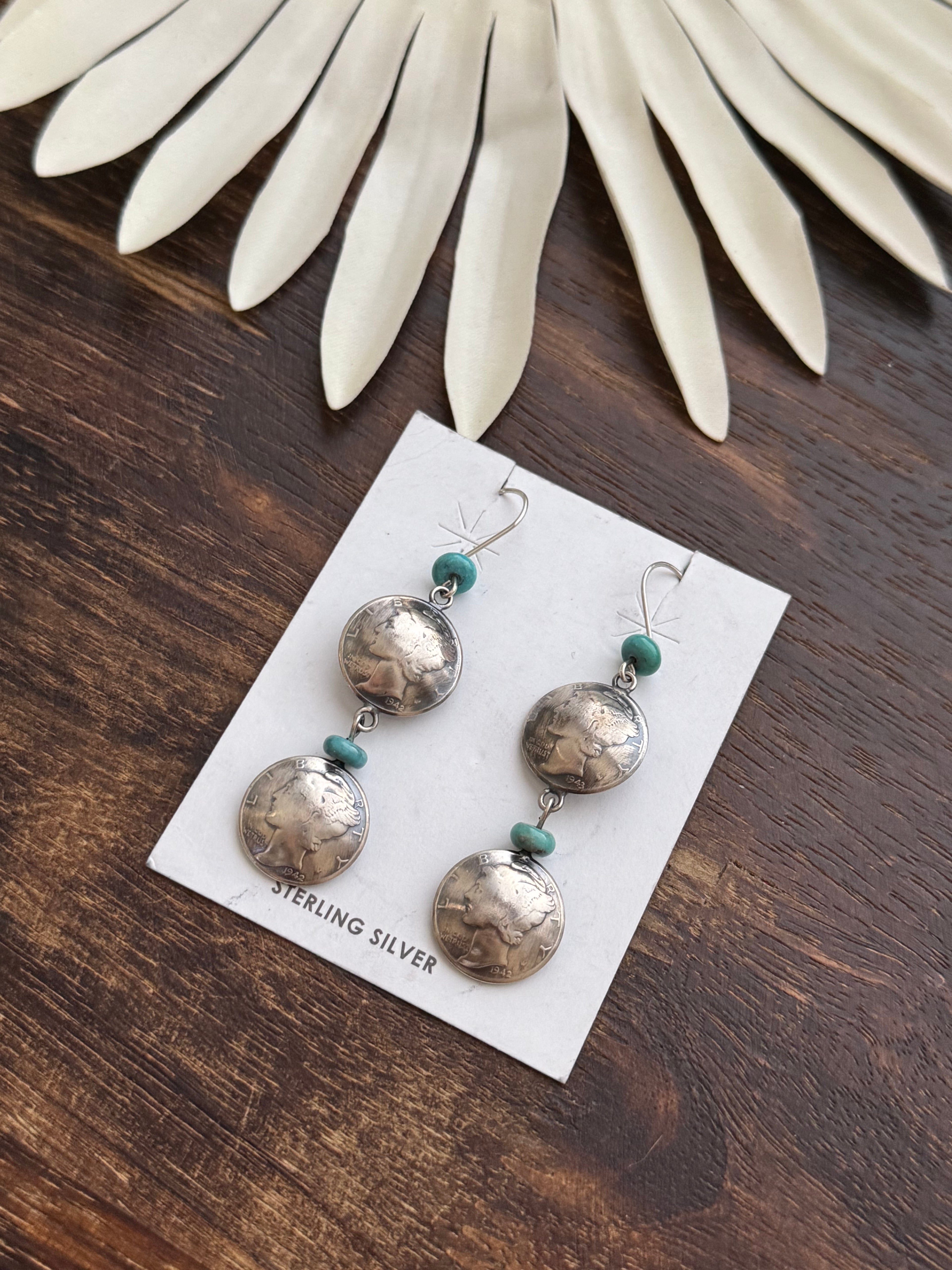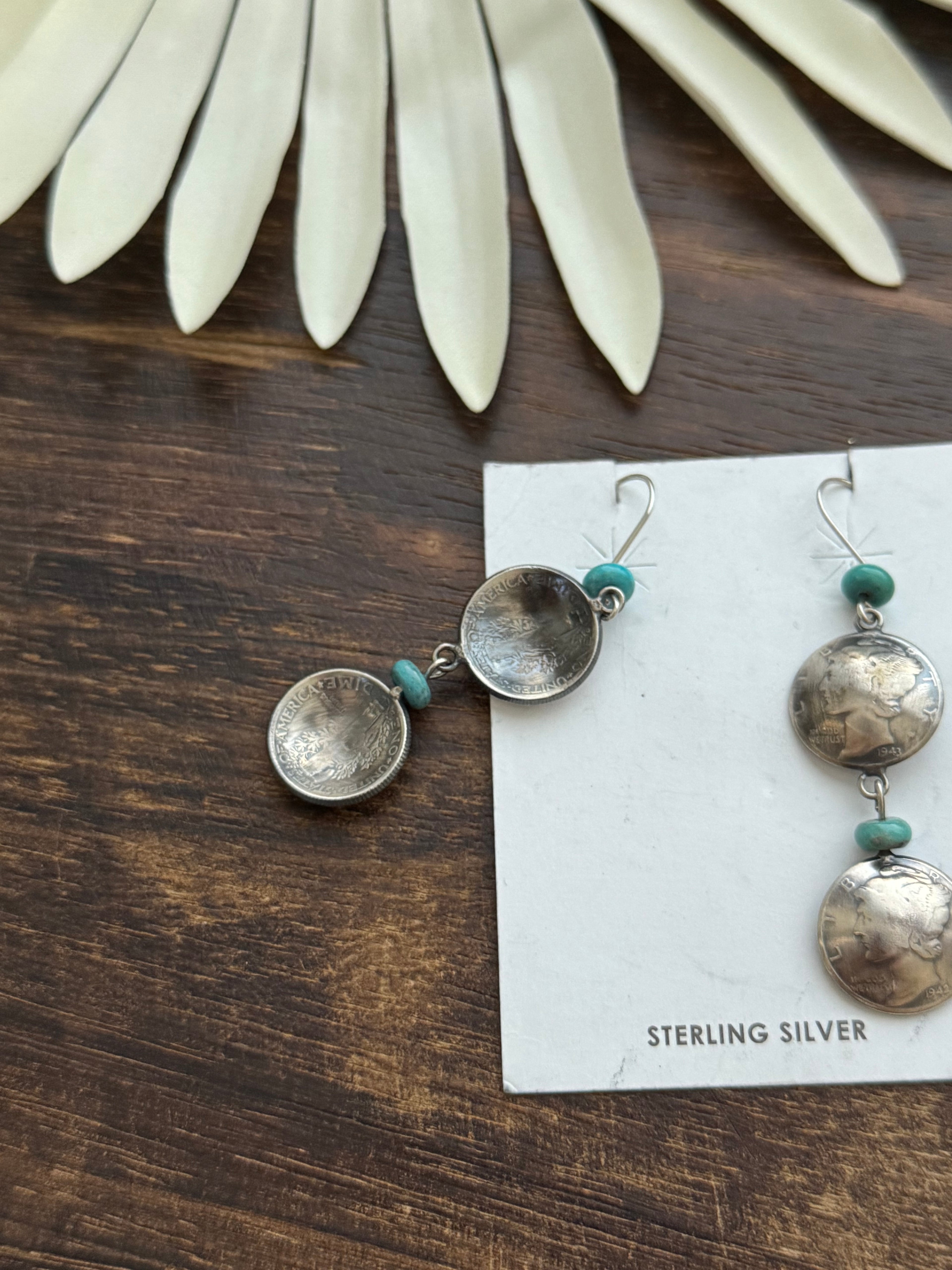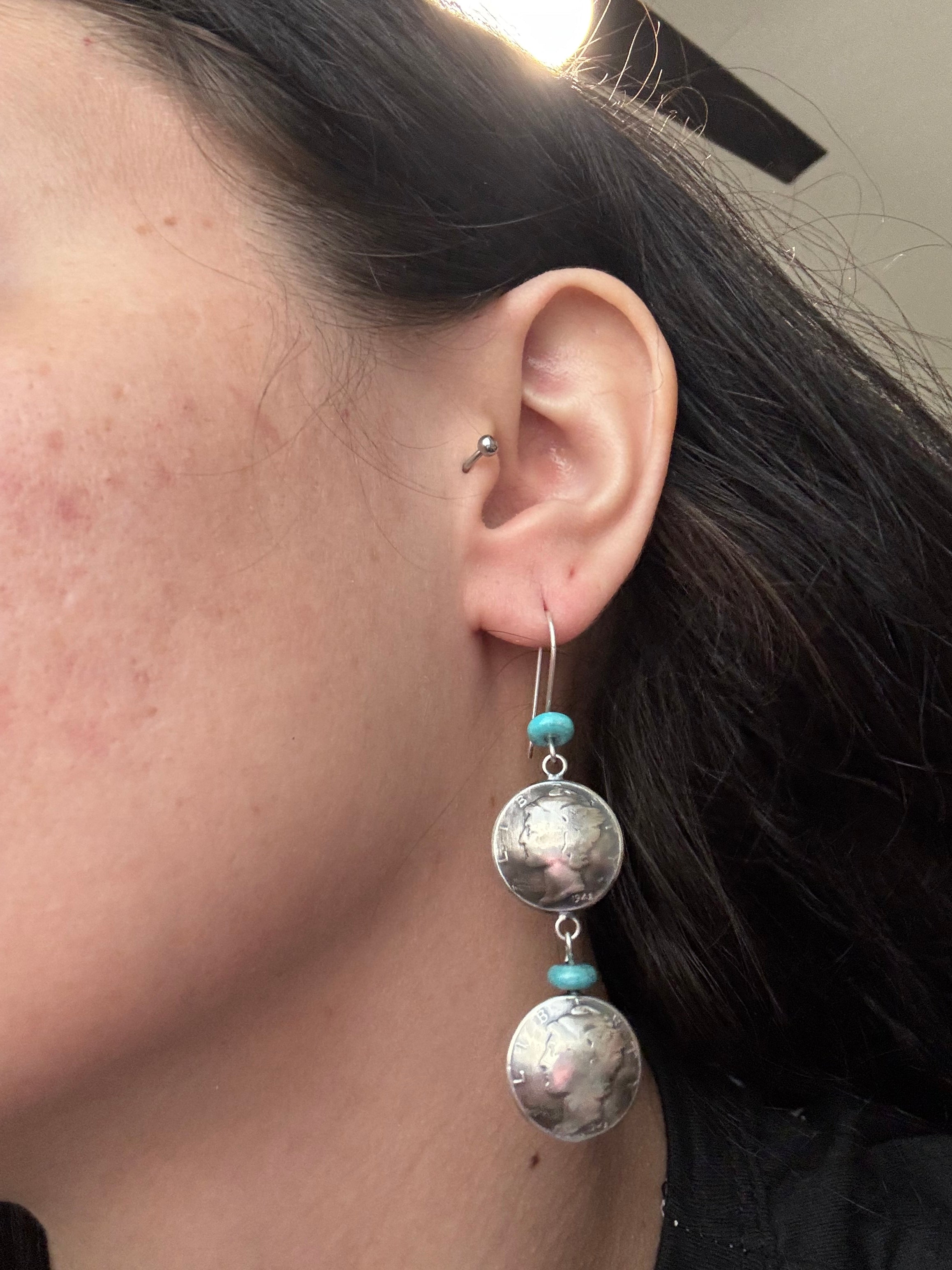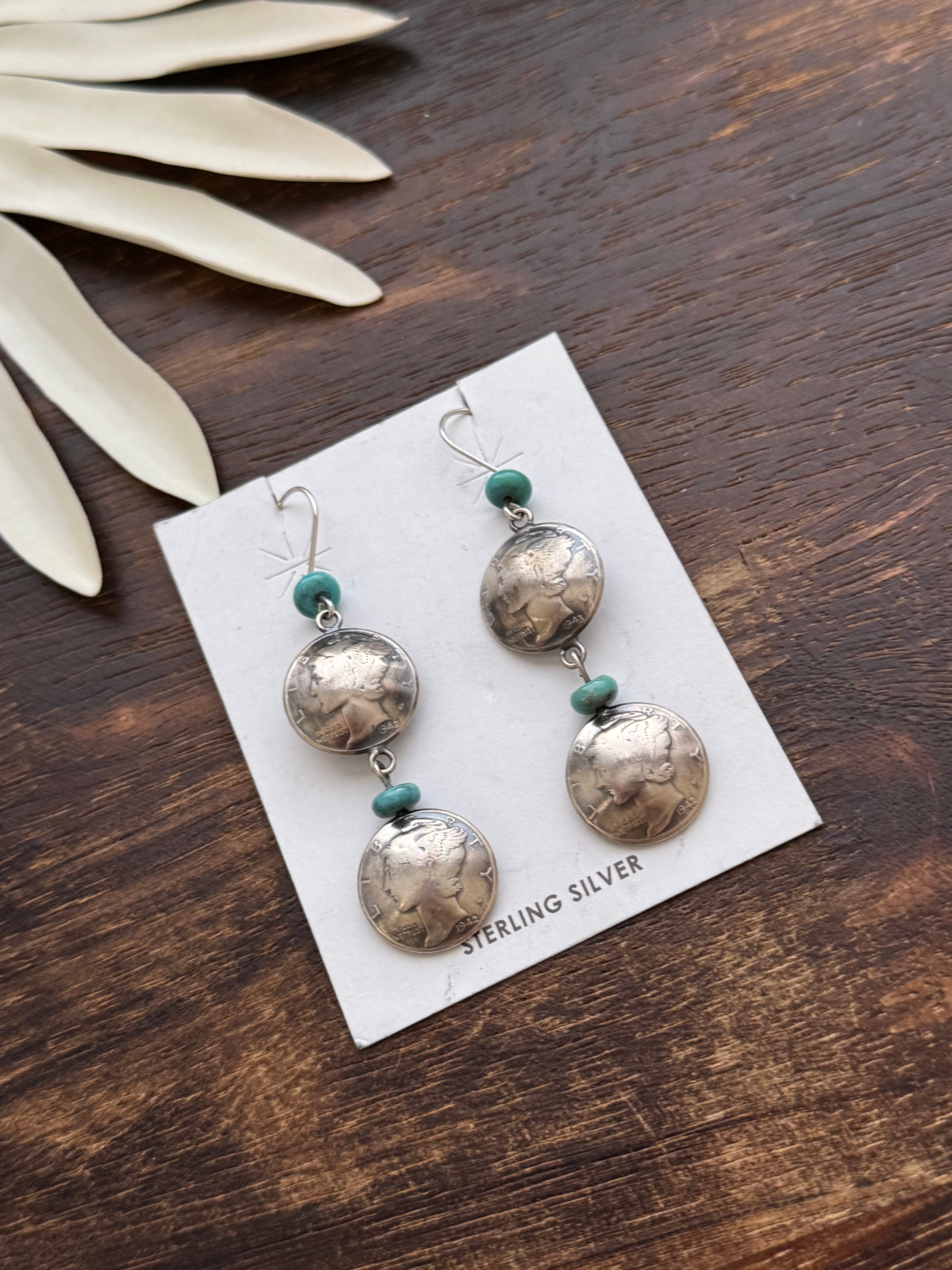 Navajo Made Kingman Turquoise & Sterling Silver Dangle Earrings