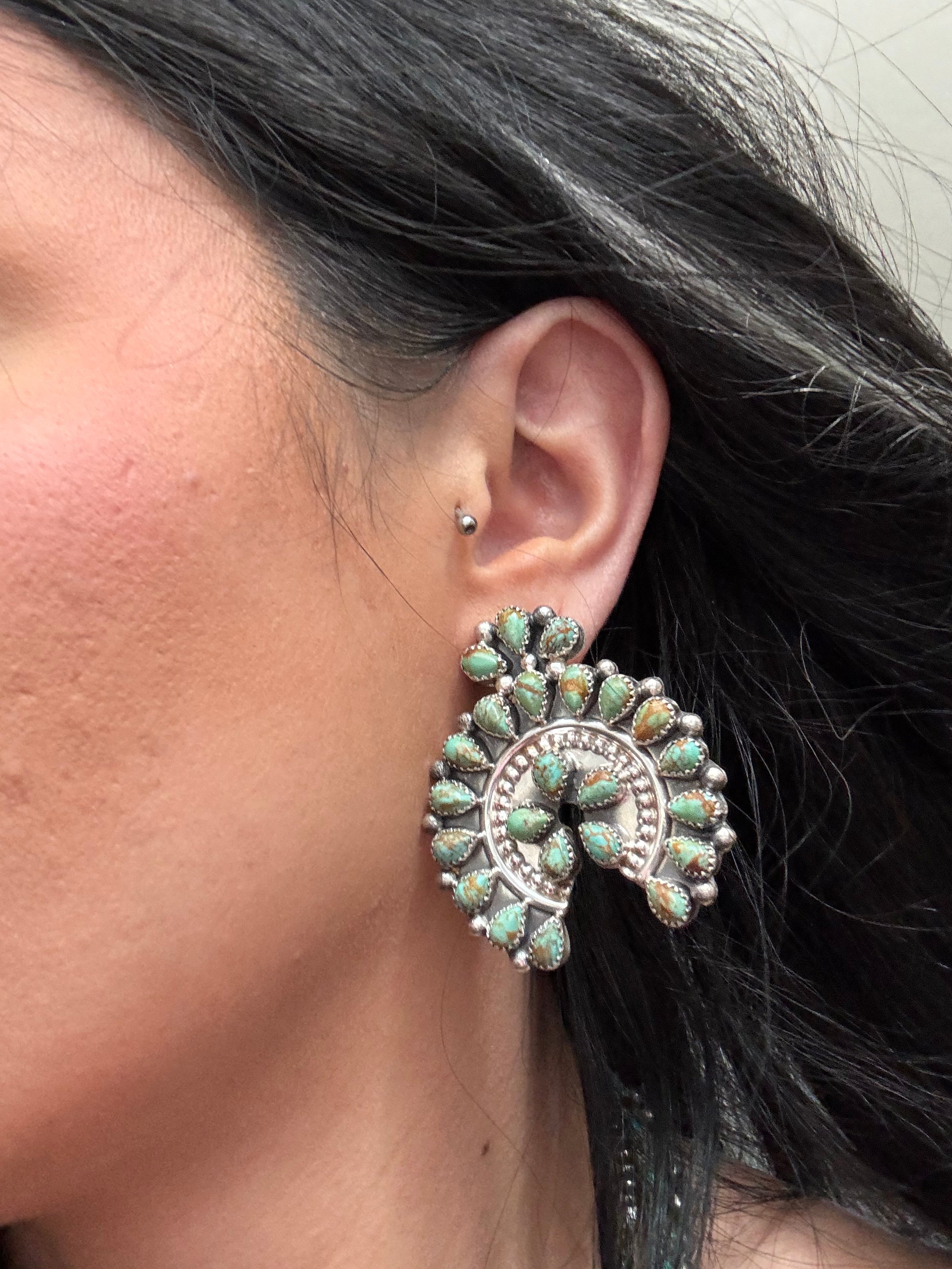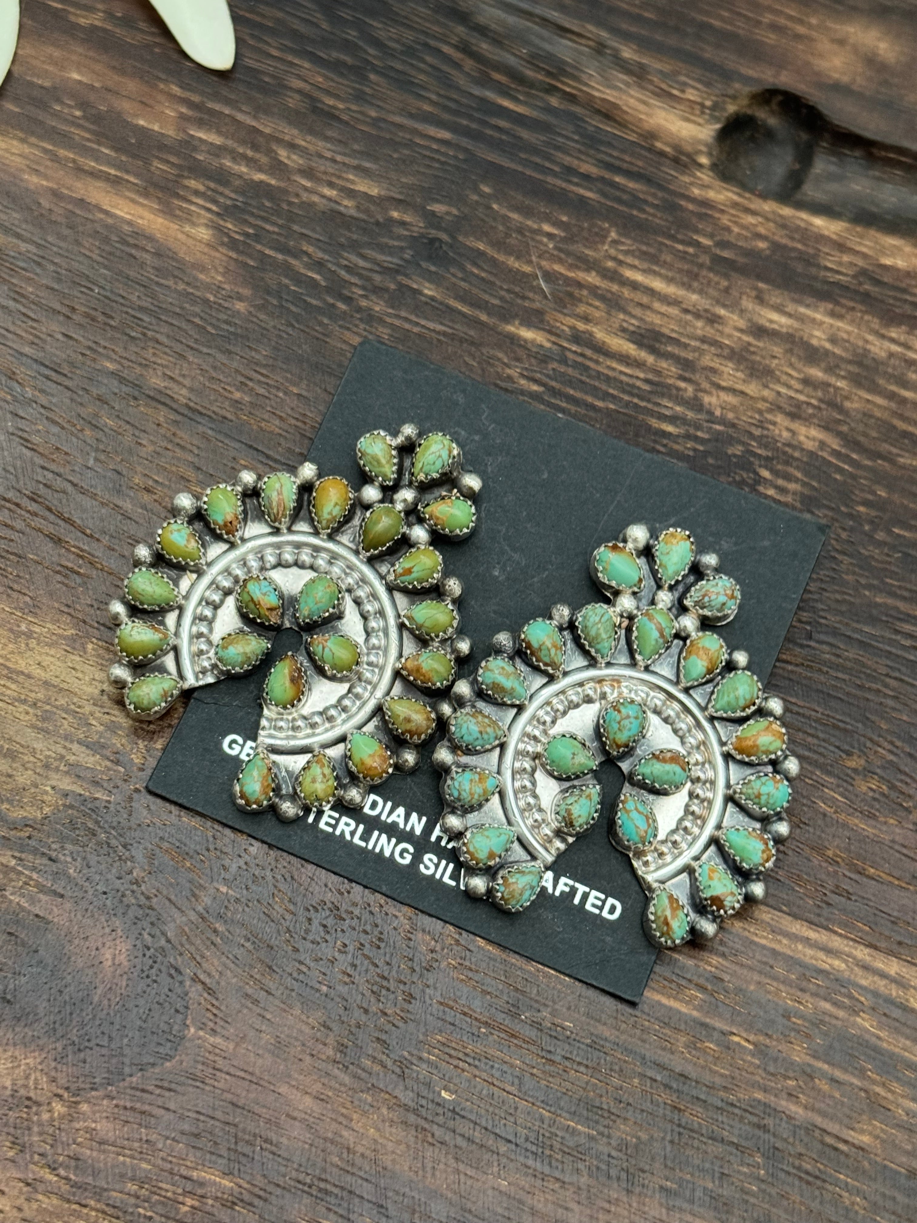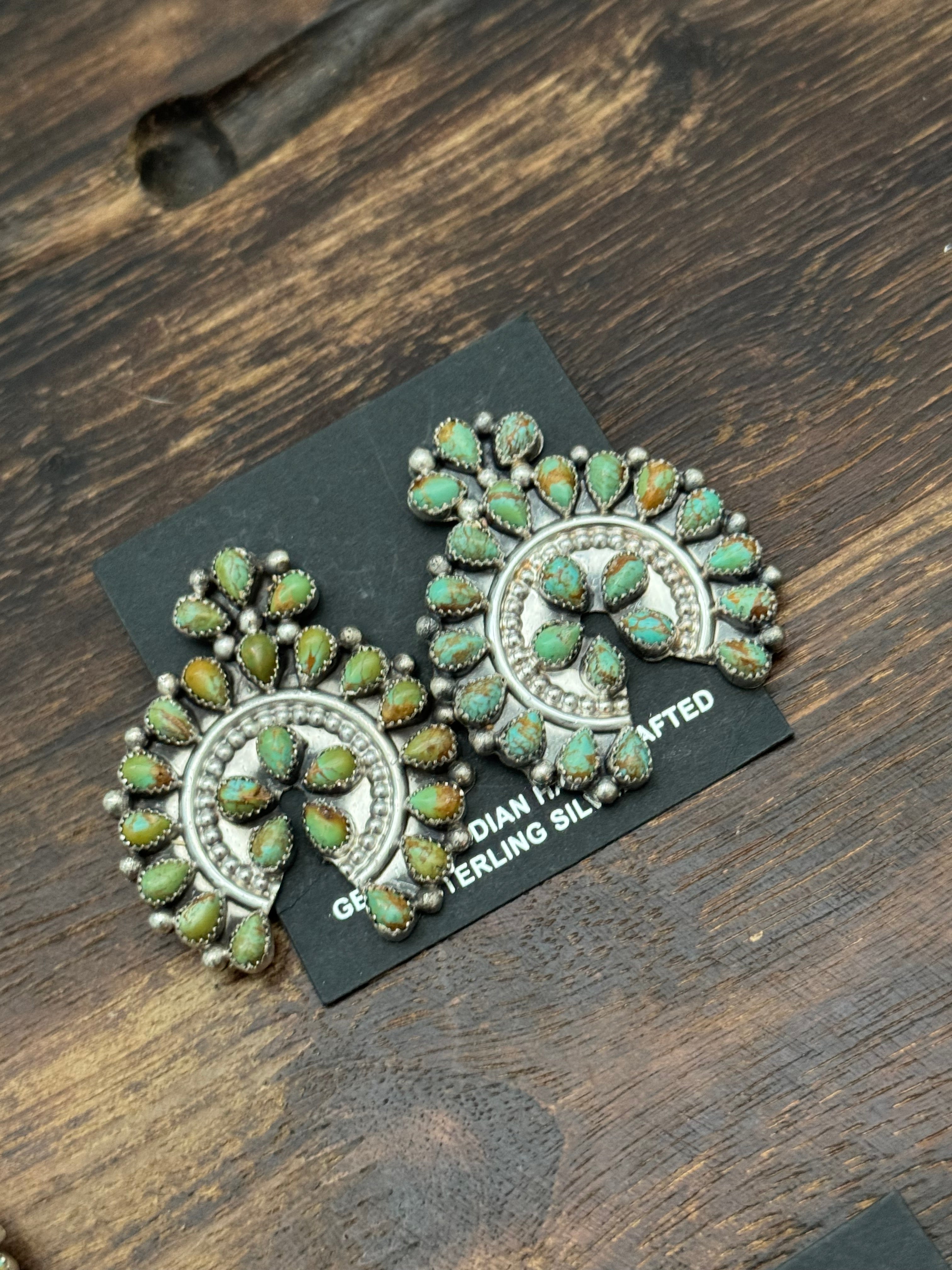 Navajo Made Kingman Turquoise & Sterling Silver Post Dangle Cluster Naja Earrings