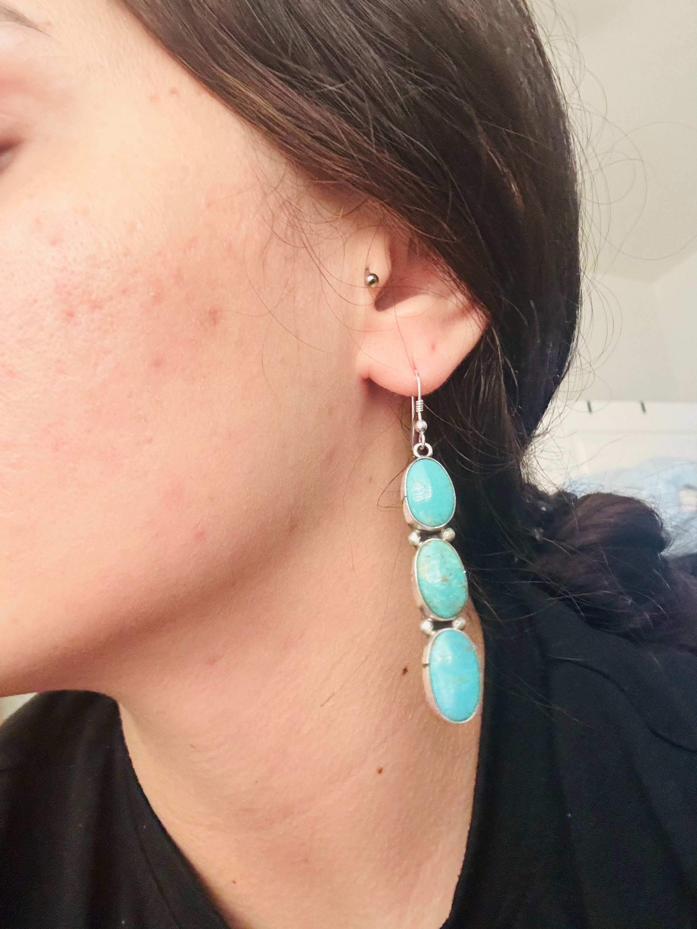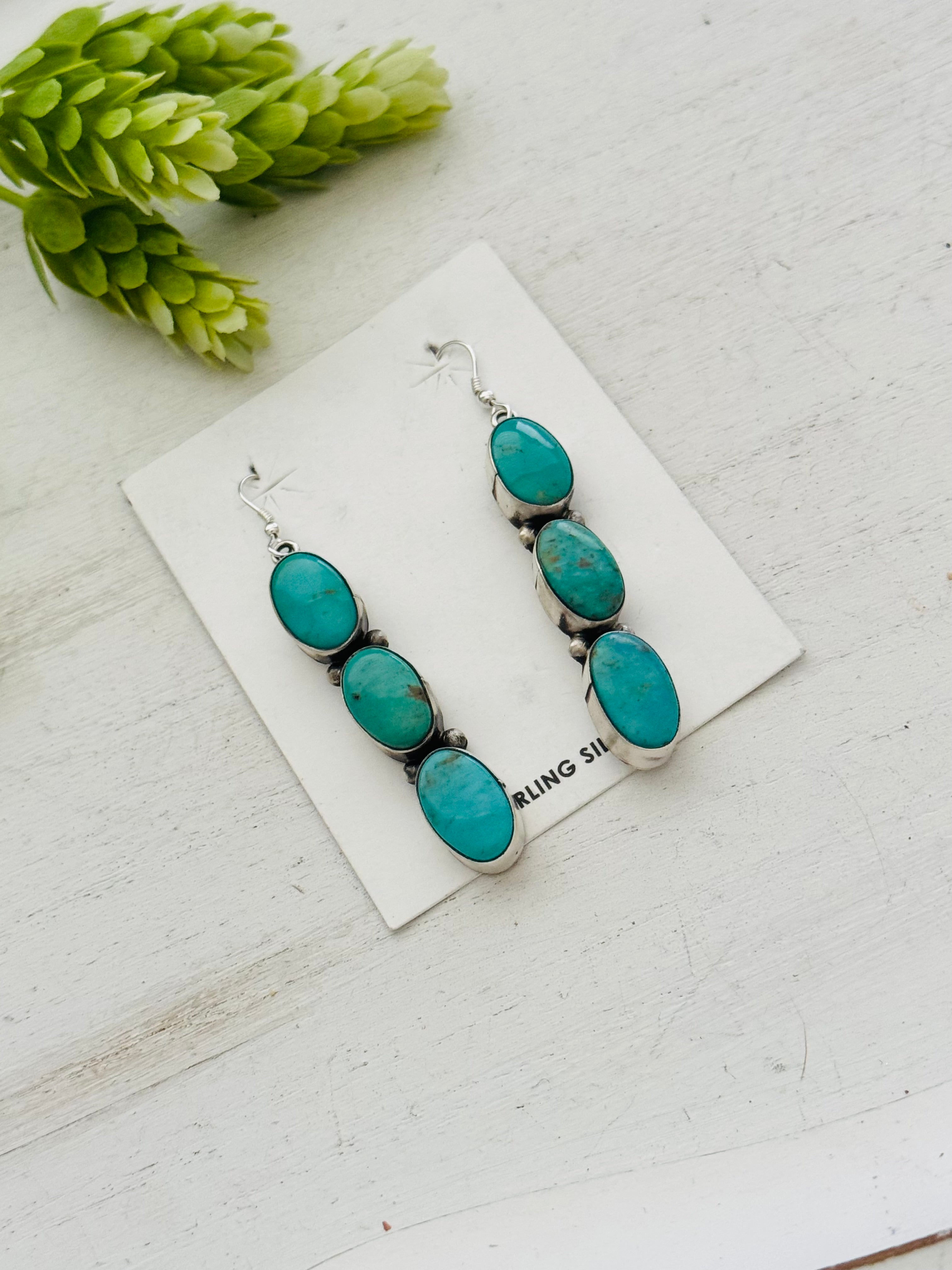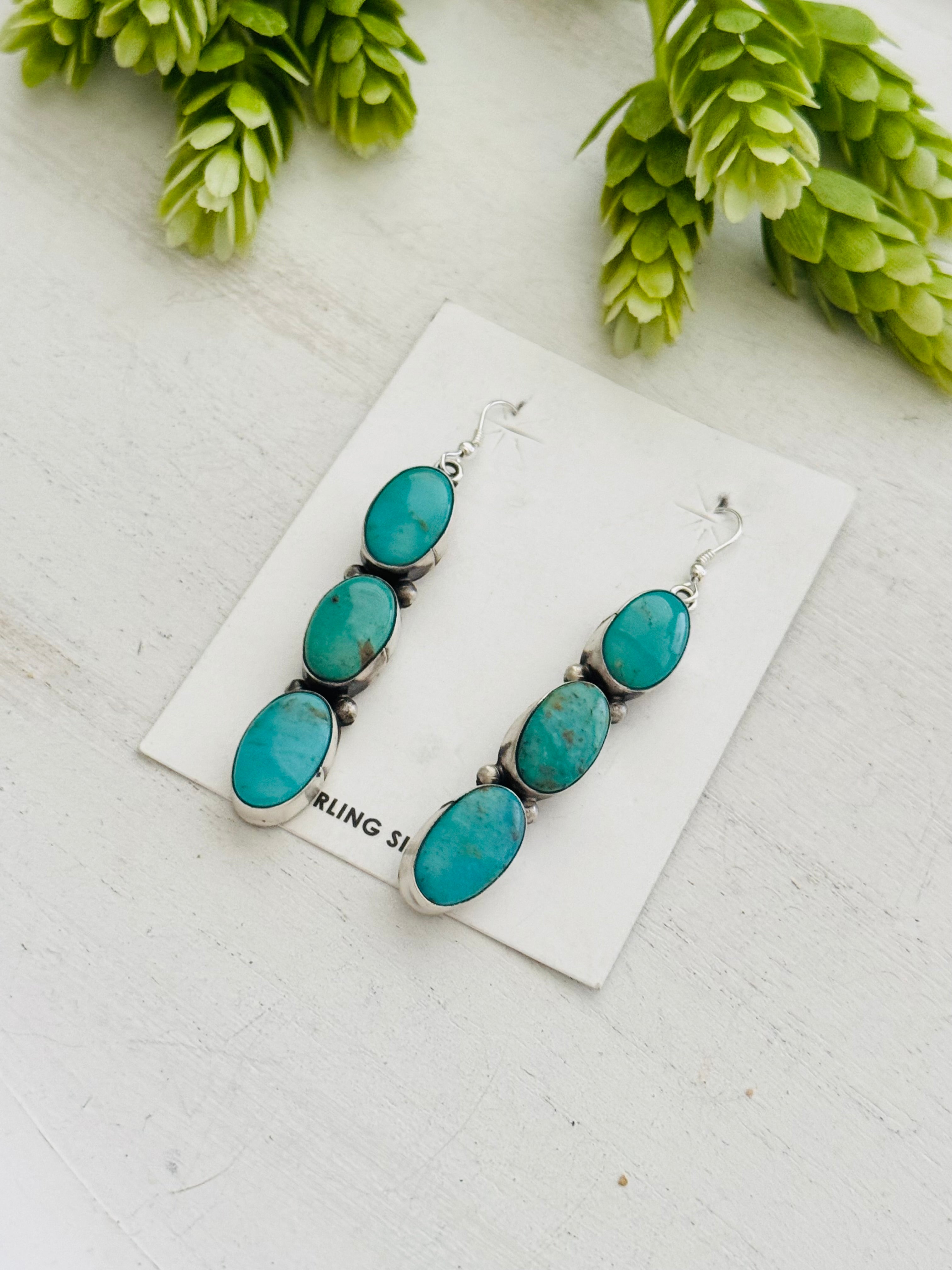 Navajo Made Kingman Turquoise & Sterling Silver Dangle Earrings
