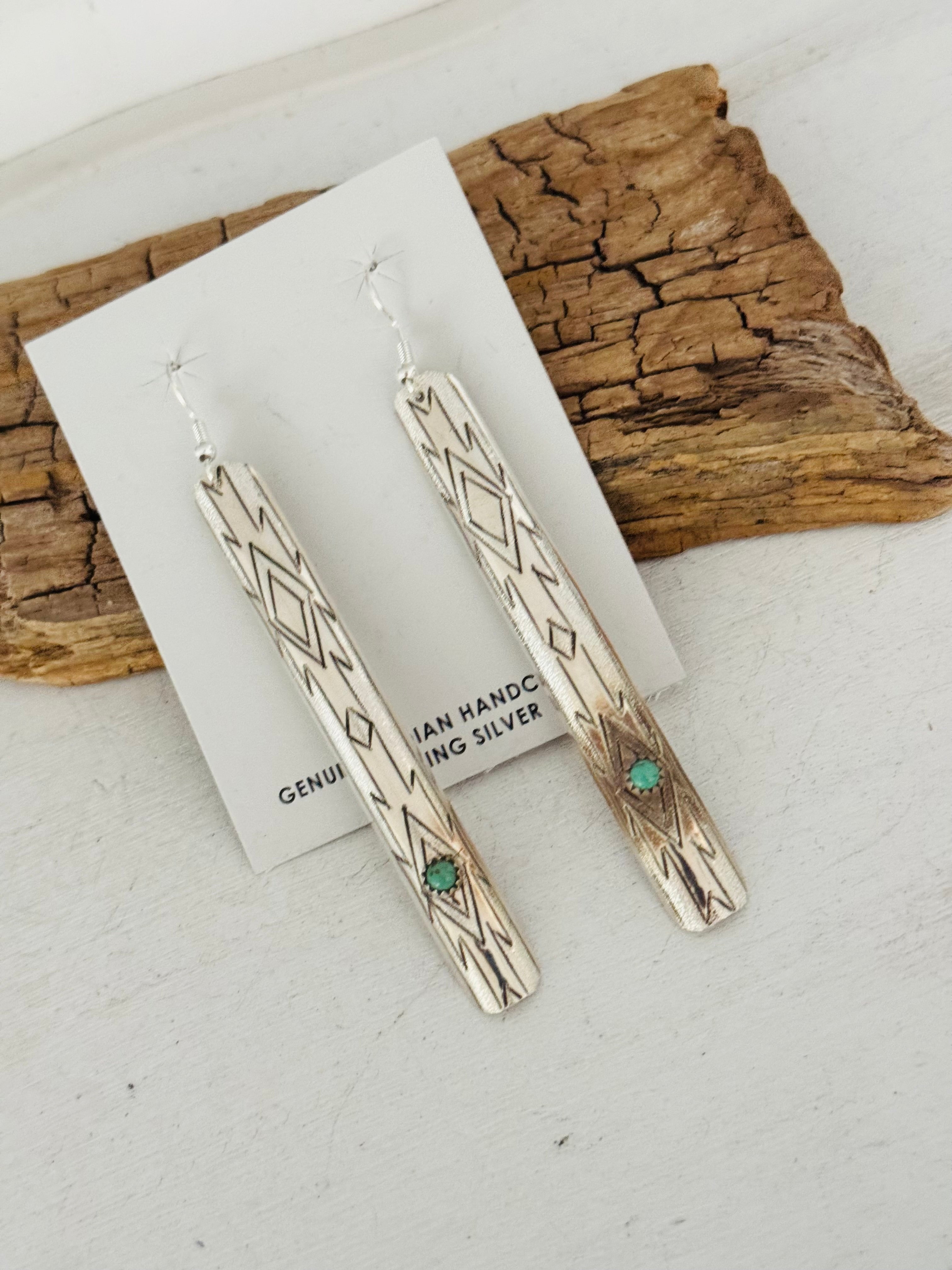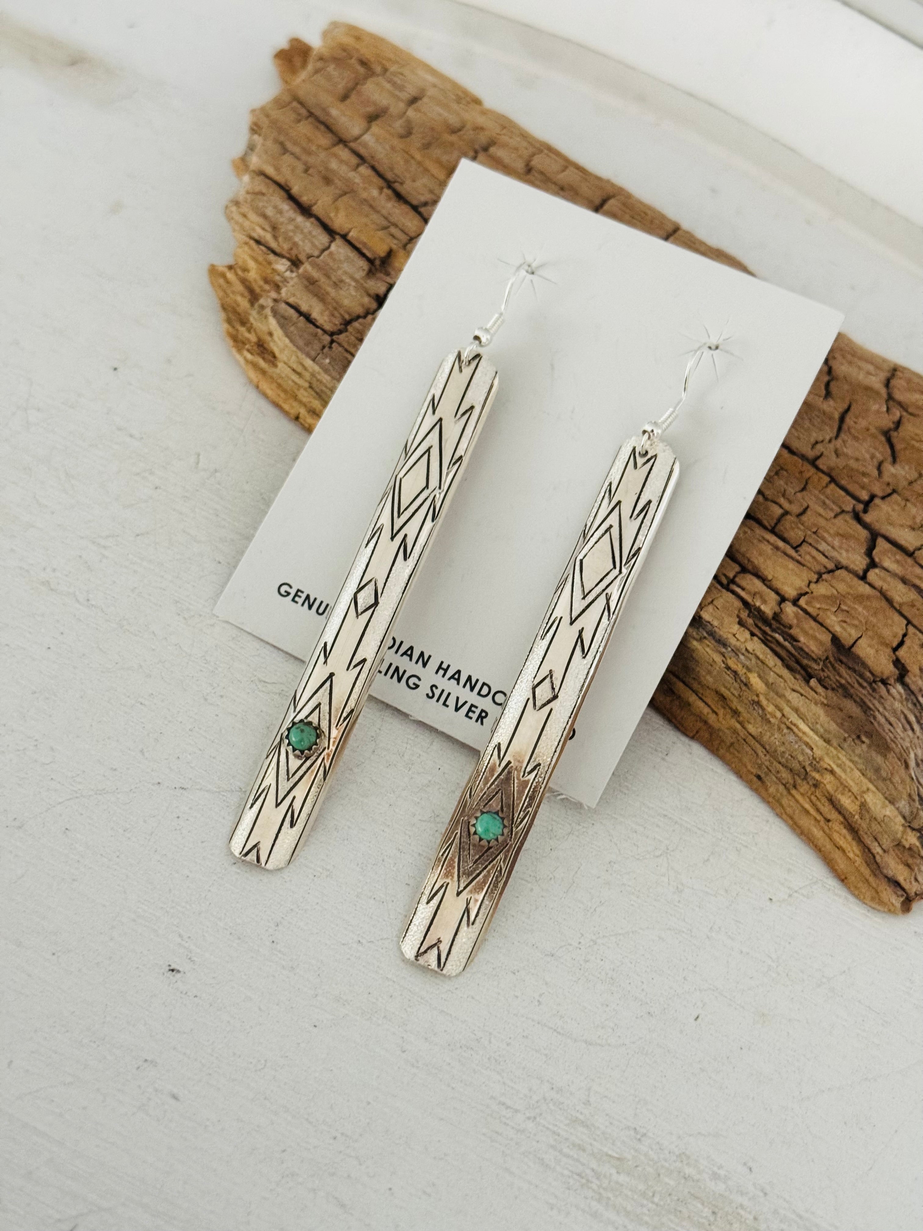 Navajo Made Kingman Turquoise & Sterling Silver Dangle Earrings
