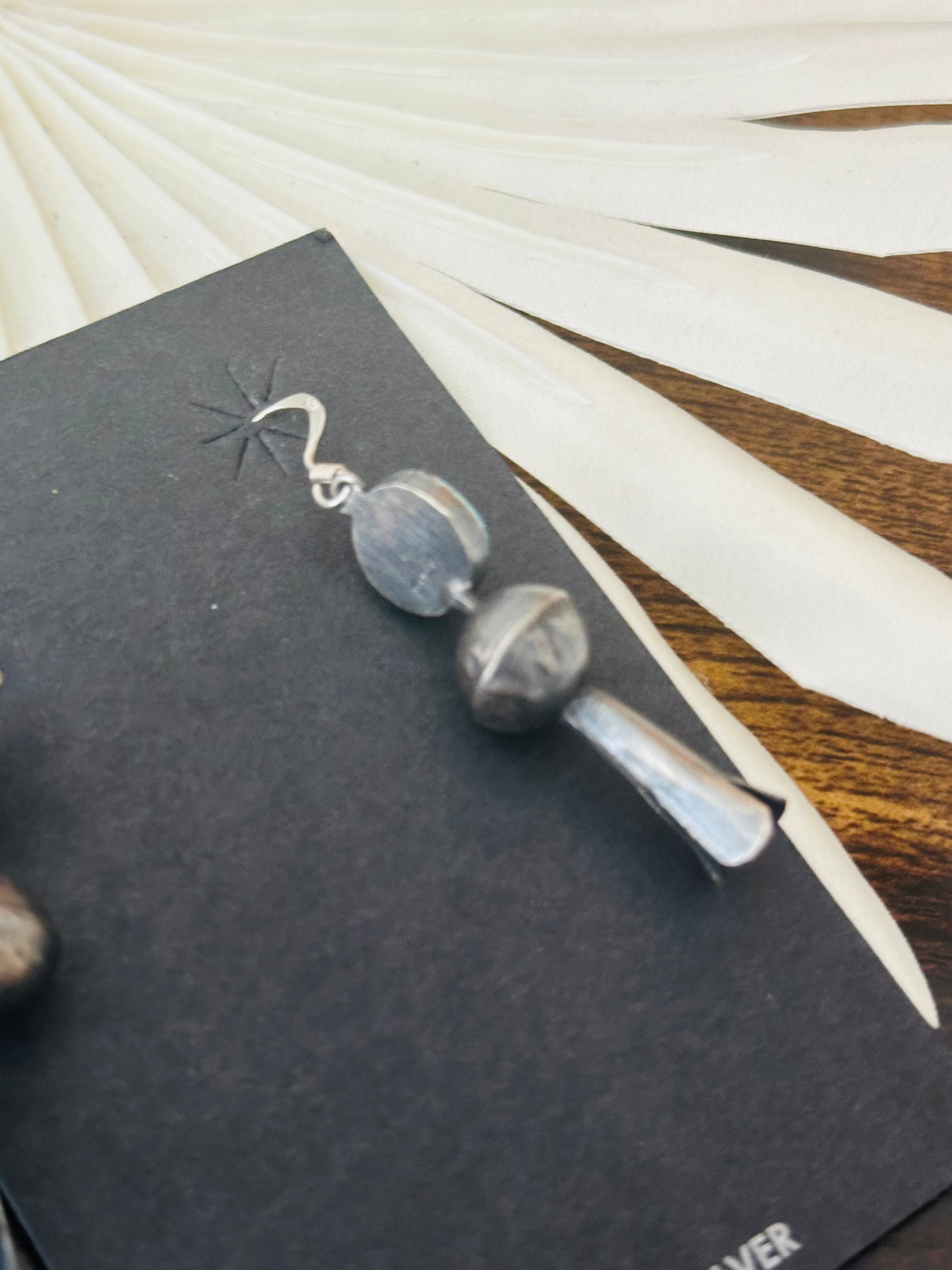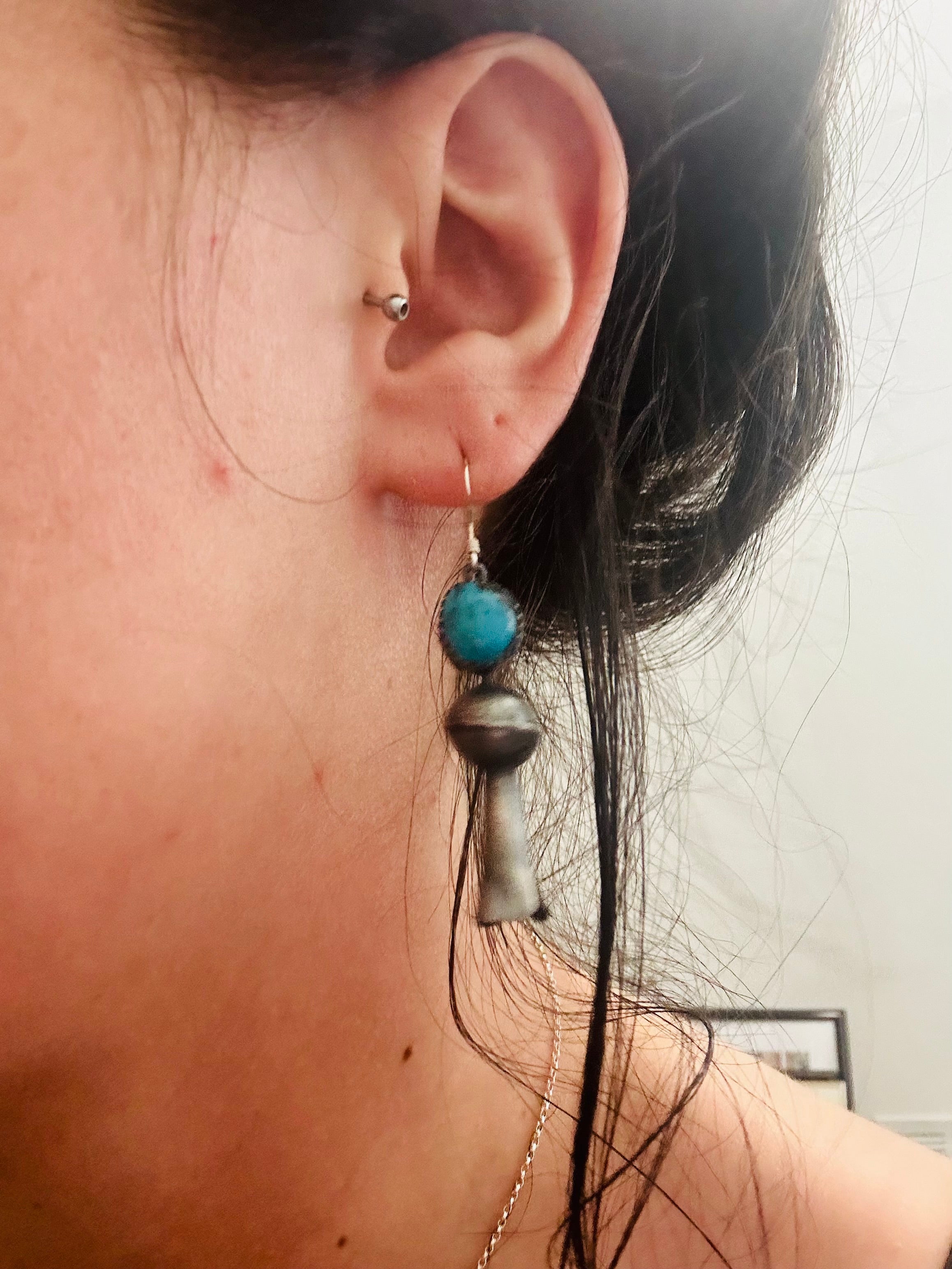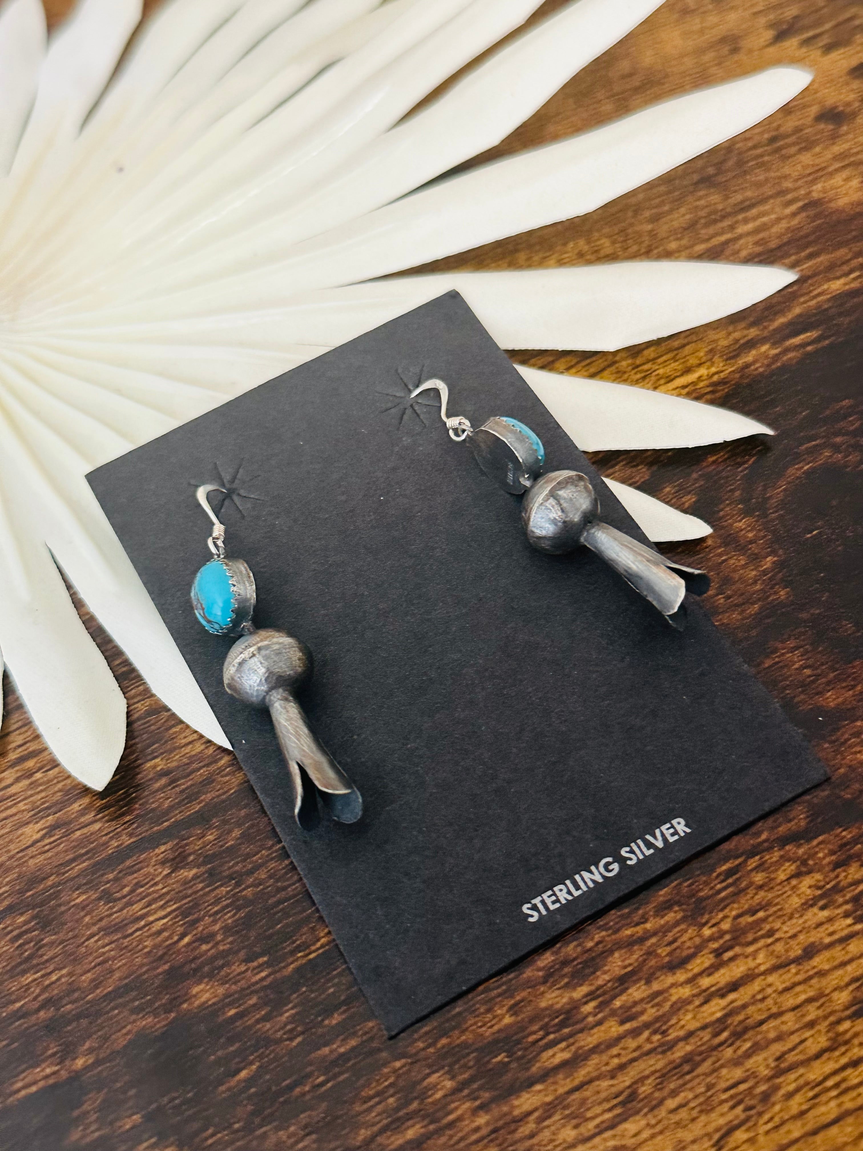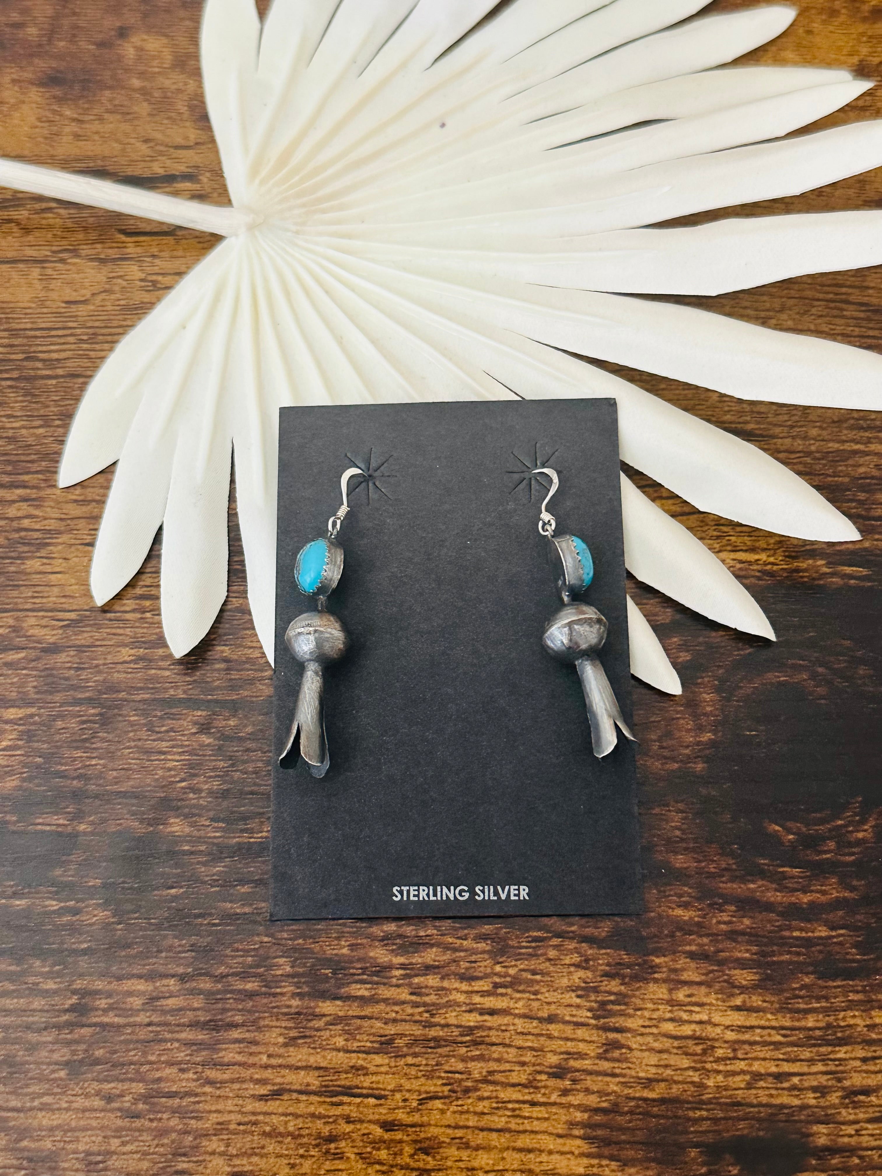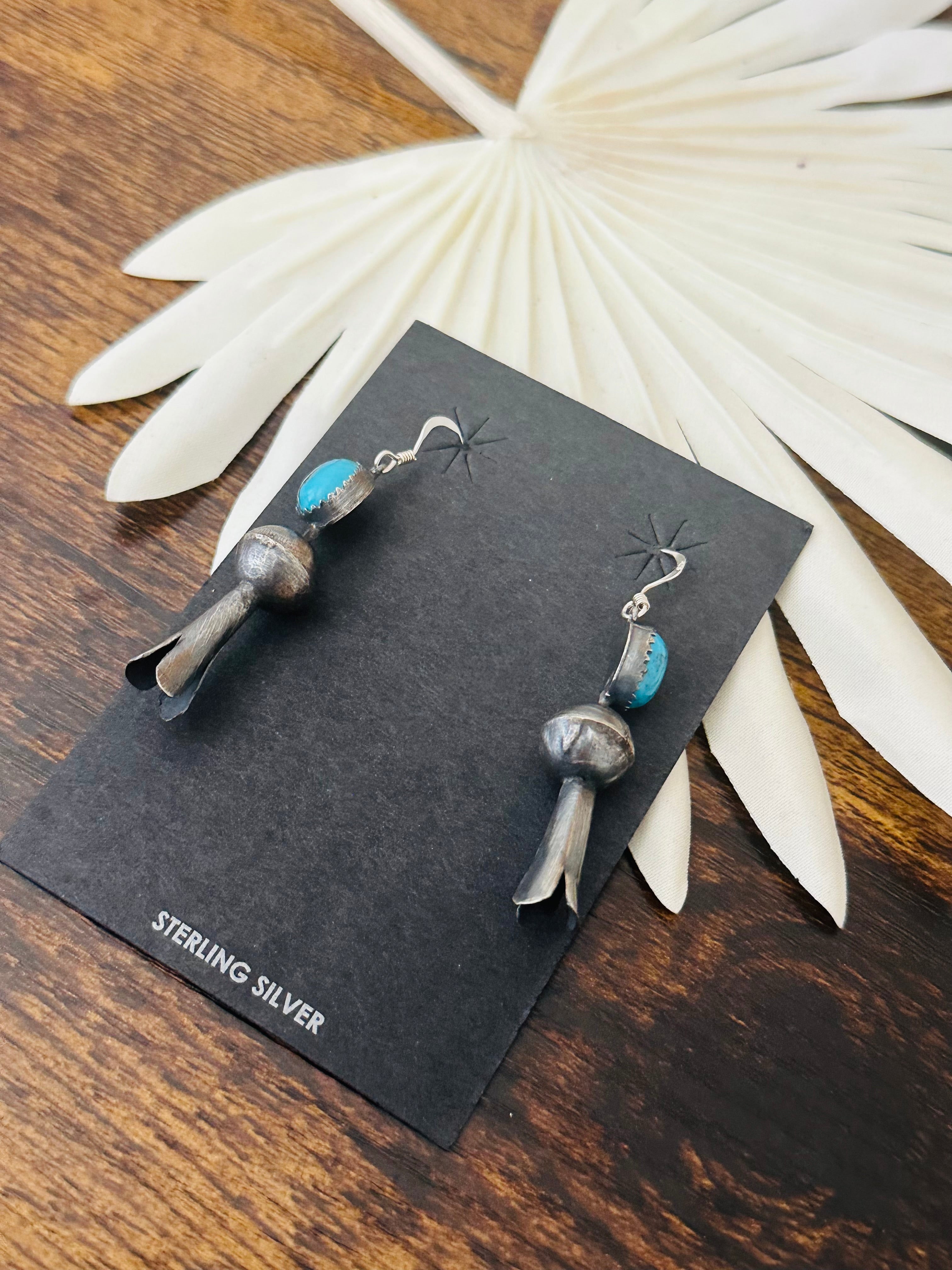 Navajo Made Kingman Turquoise & Sterling Silver Blossom Dangle Earrings