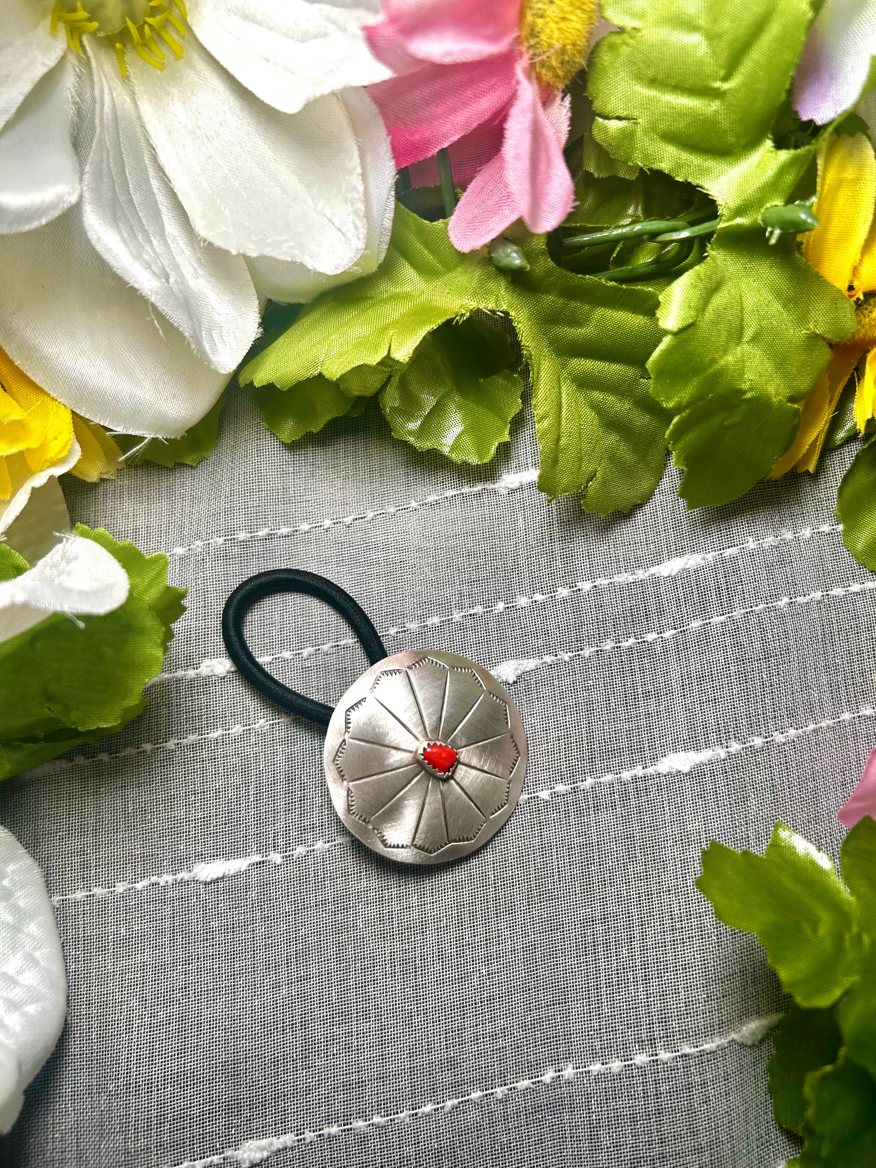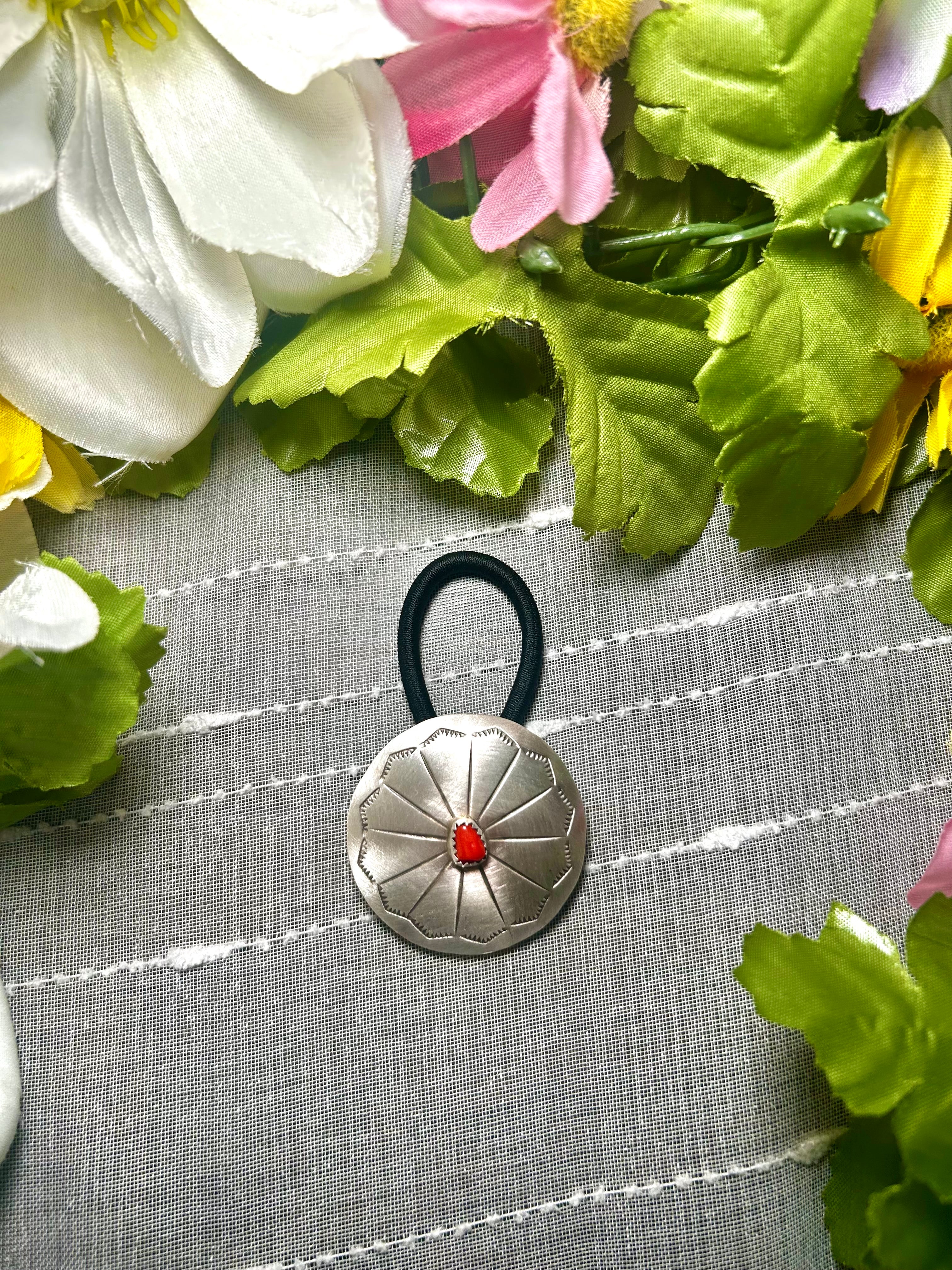 Navajo Made Mediterranean Coral & Sterling Silver Hair Tie