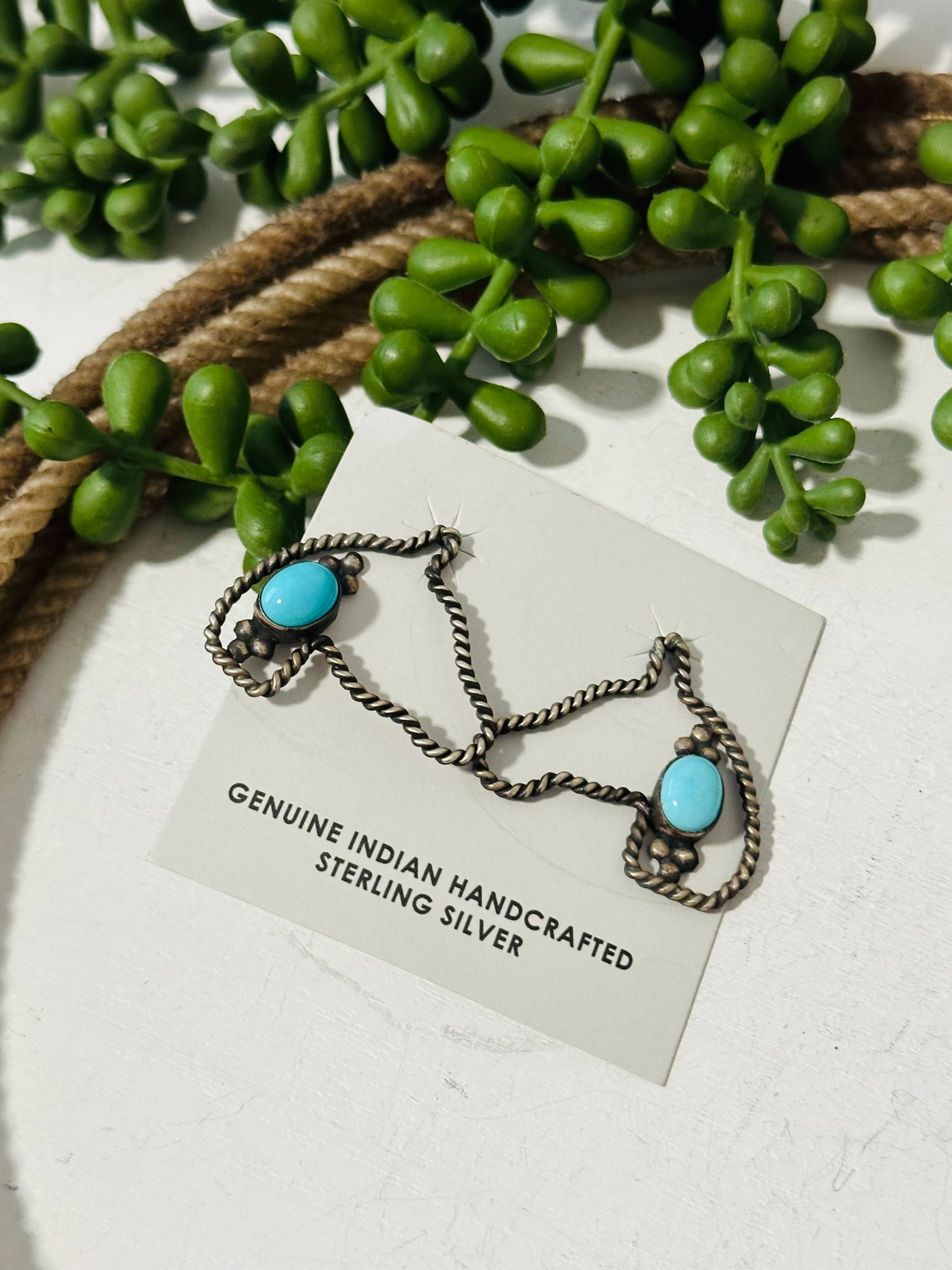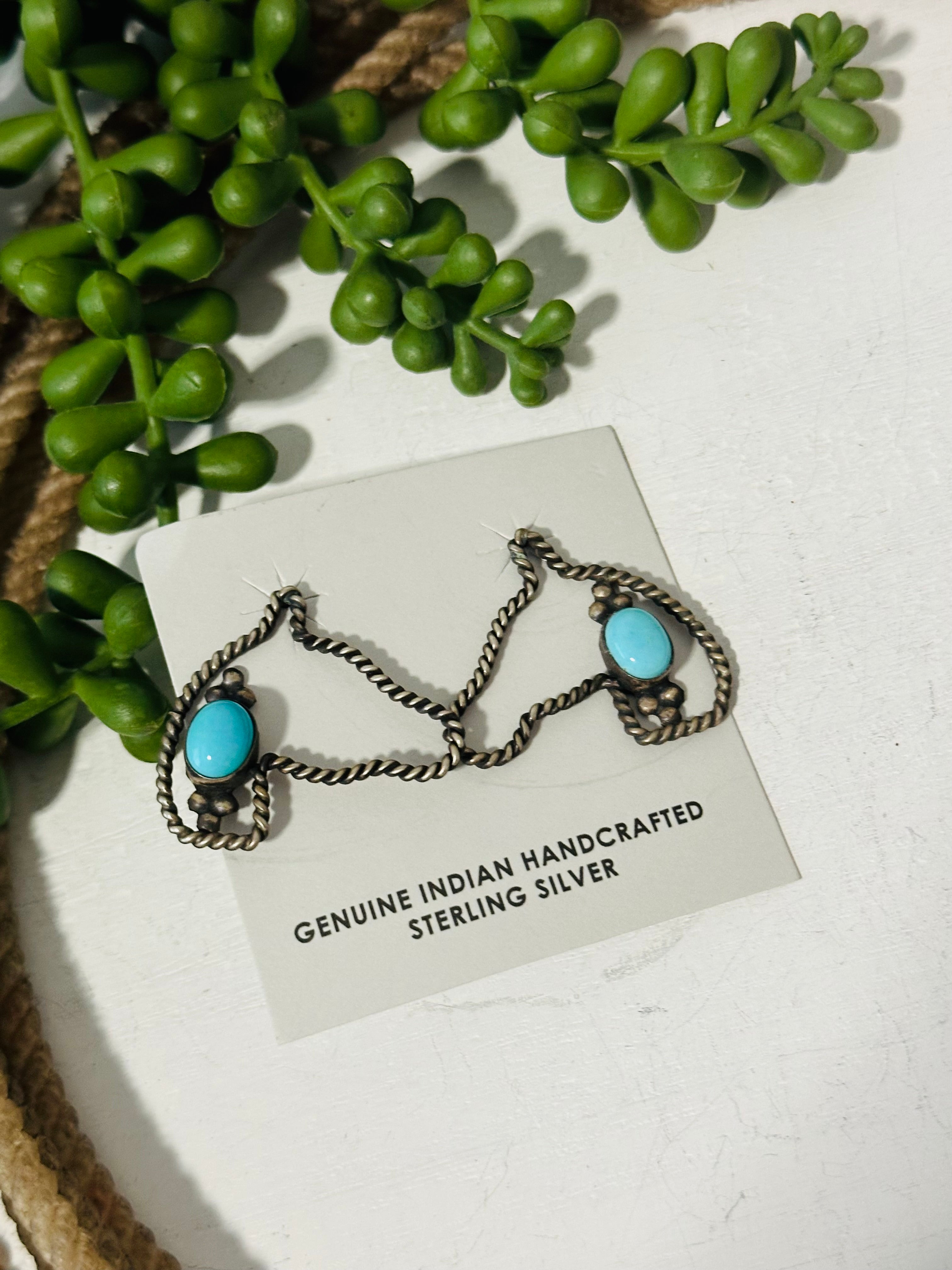 Beautiful dangle earrings. Navajo Made Kingman Turquoise & Sterling Silver Post Earrings. It measures 1 1/4 inches long and 1 3/8 inches wide . Signed and stamped.