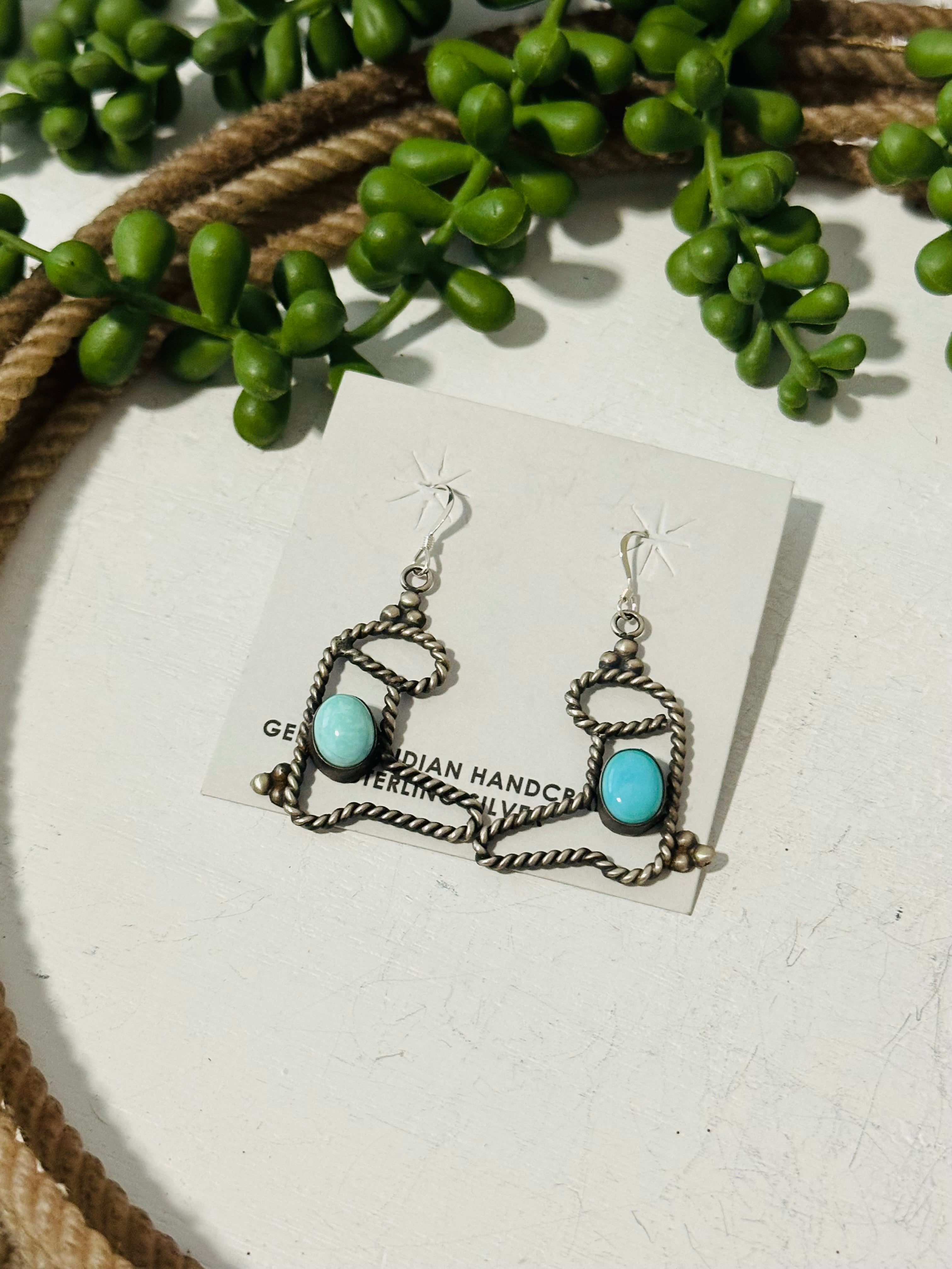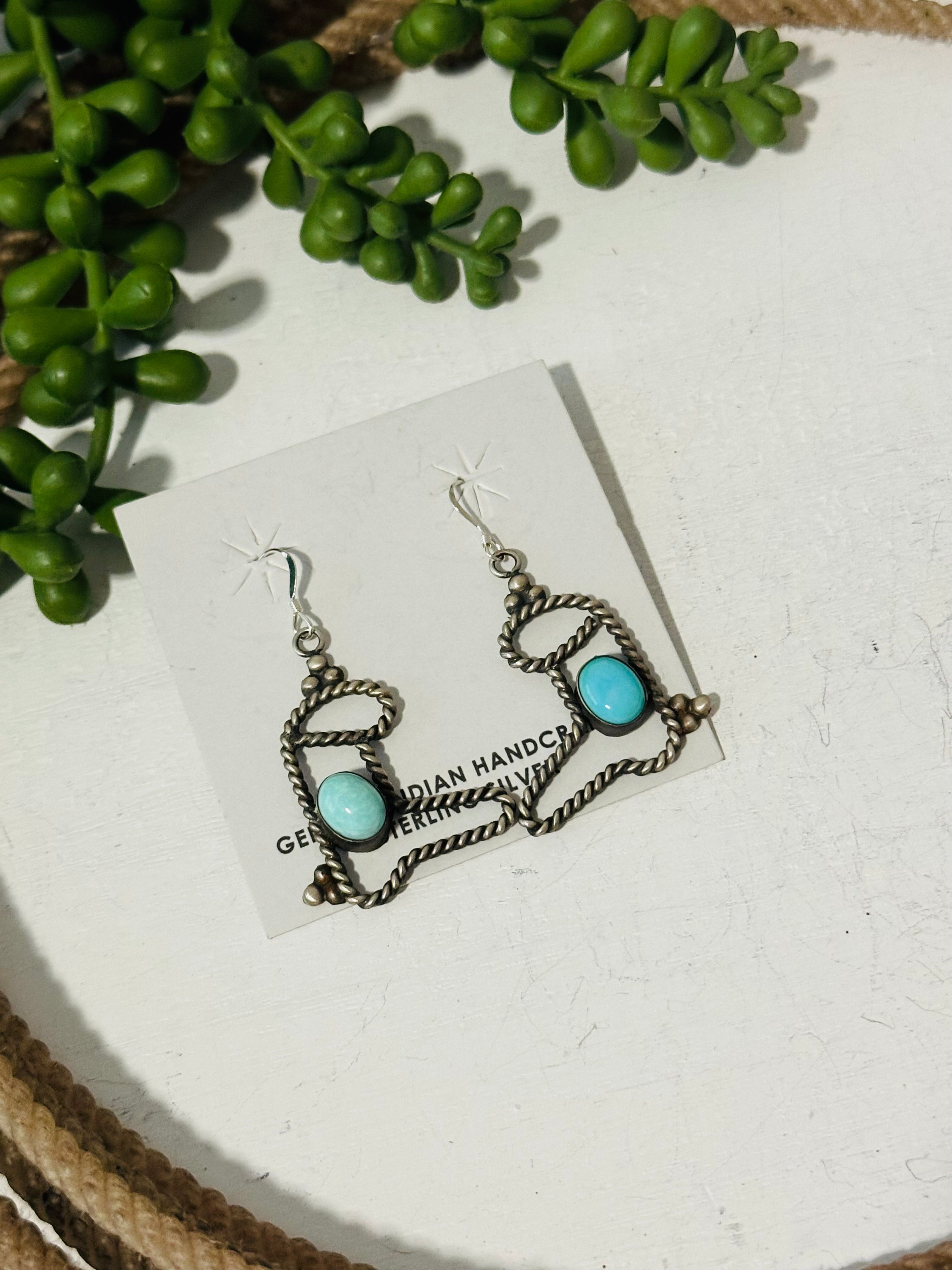 Navajo Made Kingman Turquoise & Sterling Silver Boot Dangle Earrings