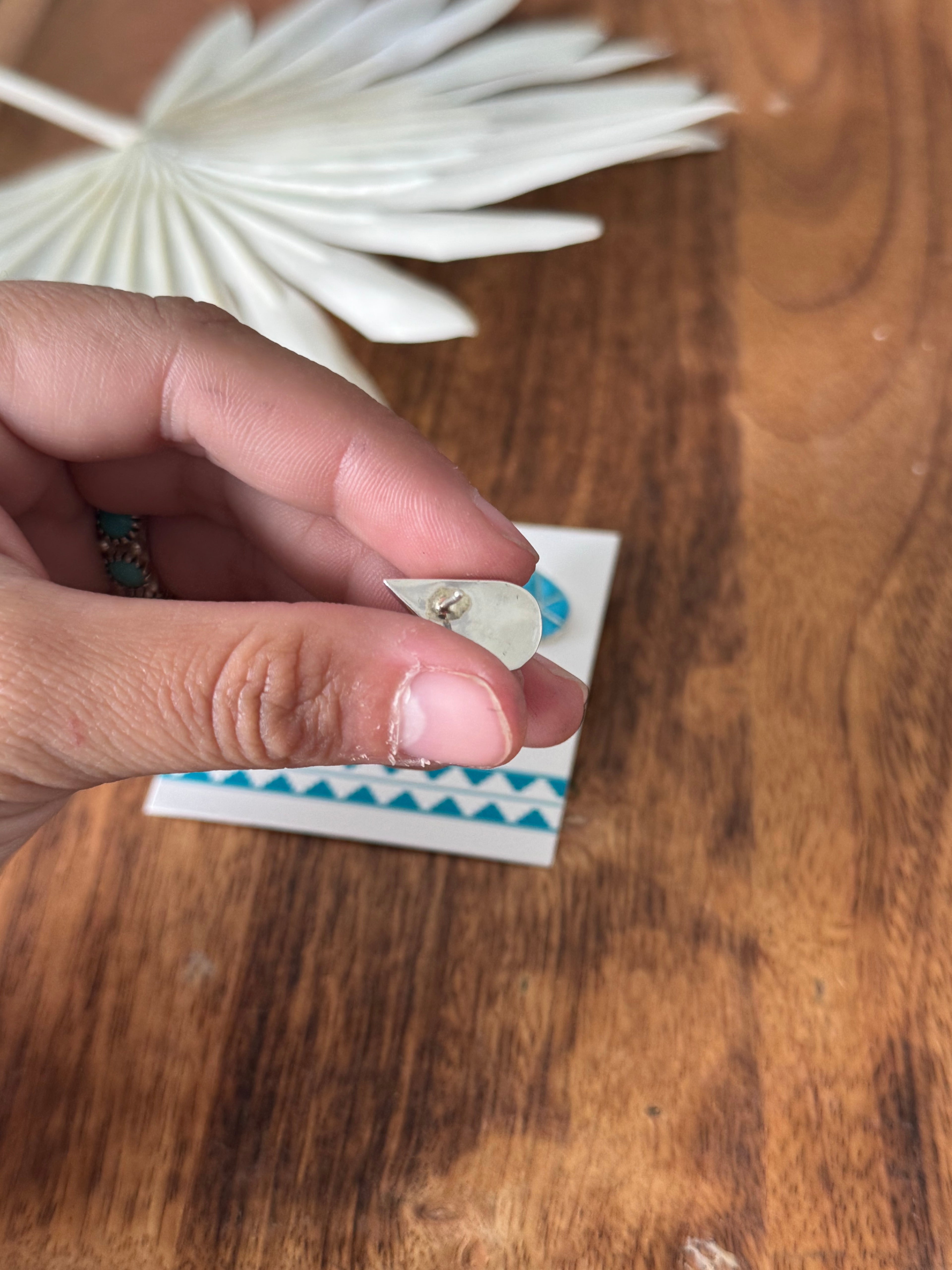 Zuni Made Turquoise & Sterling Silver Inlay Post Earrings