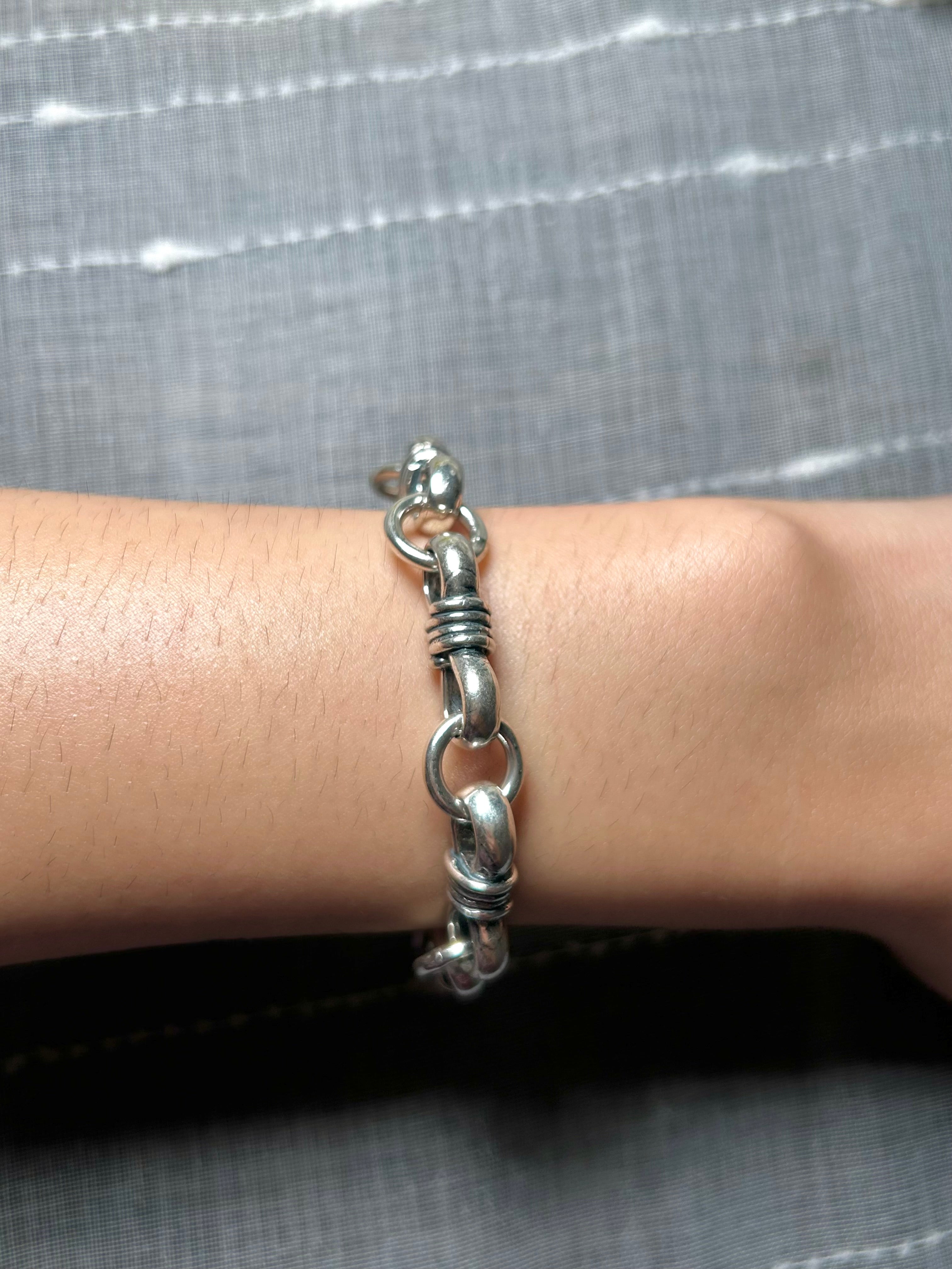 Navajo Made Sterling Silver Link Bracelet. They measure 8 1/2 inches long and 3/8 of an inch wide. Stamped sterling silver.