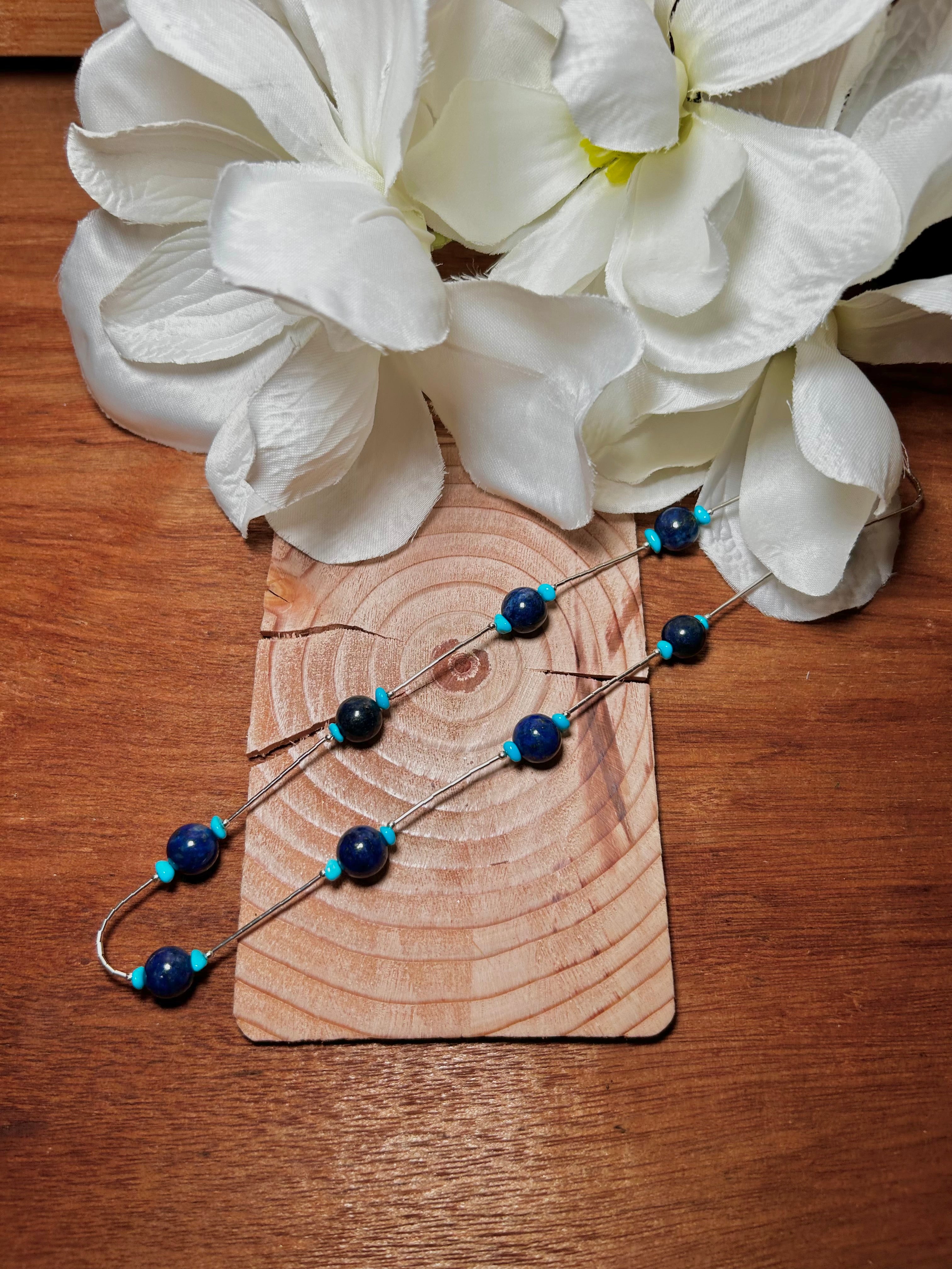 Navajo Made Multi Stone and Sterling Silver Strung Necklace. It measures 18 1/2 inches long. Signed by the artist and stamped sterling silver.