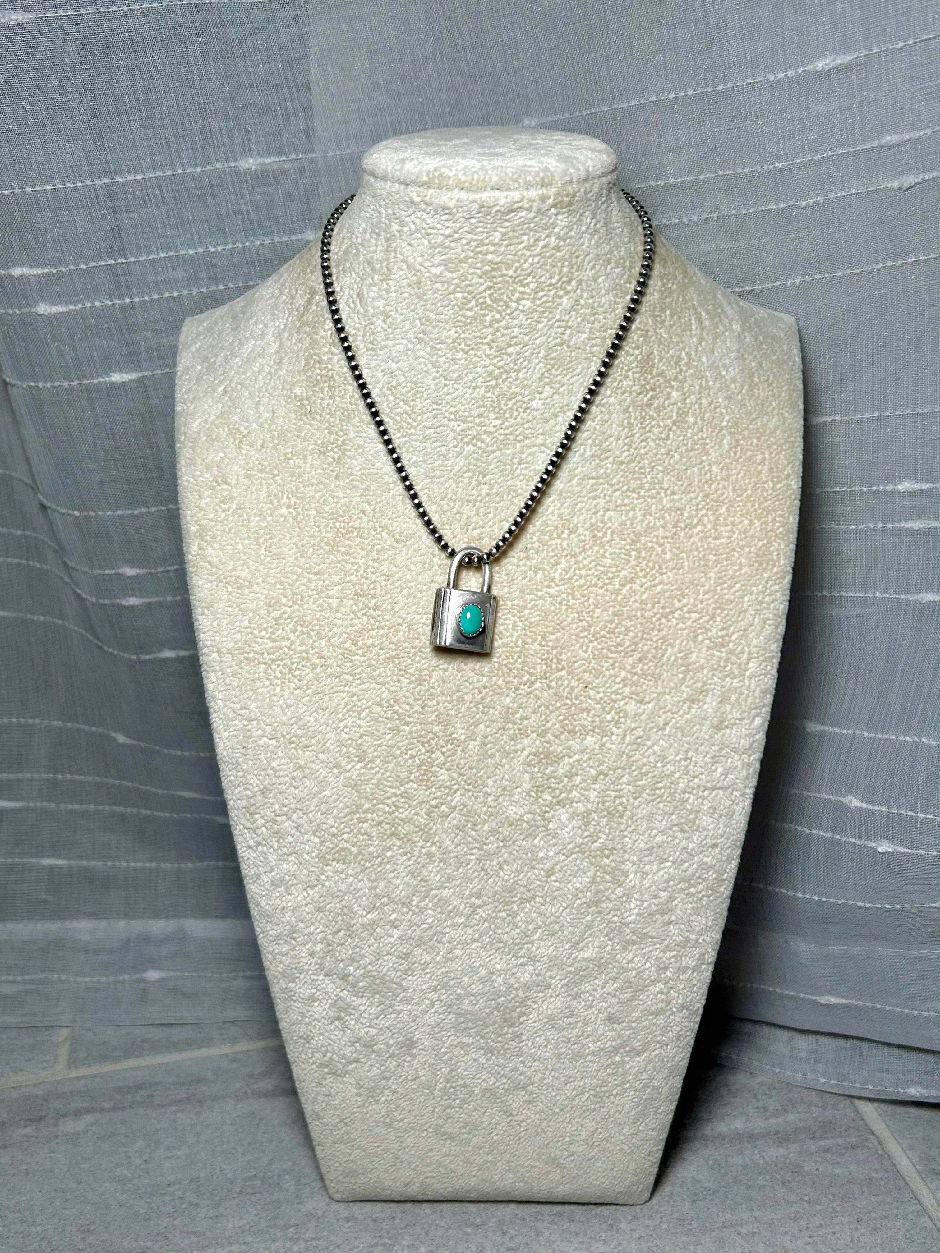 Navajo Made Kingman Turquoise & Sterling Silver Pendant. It measures 1 1/8 inches long and 3/4 of an inch wide. Pendant Only! Signed by the artist and stamped sterling silver.