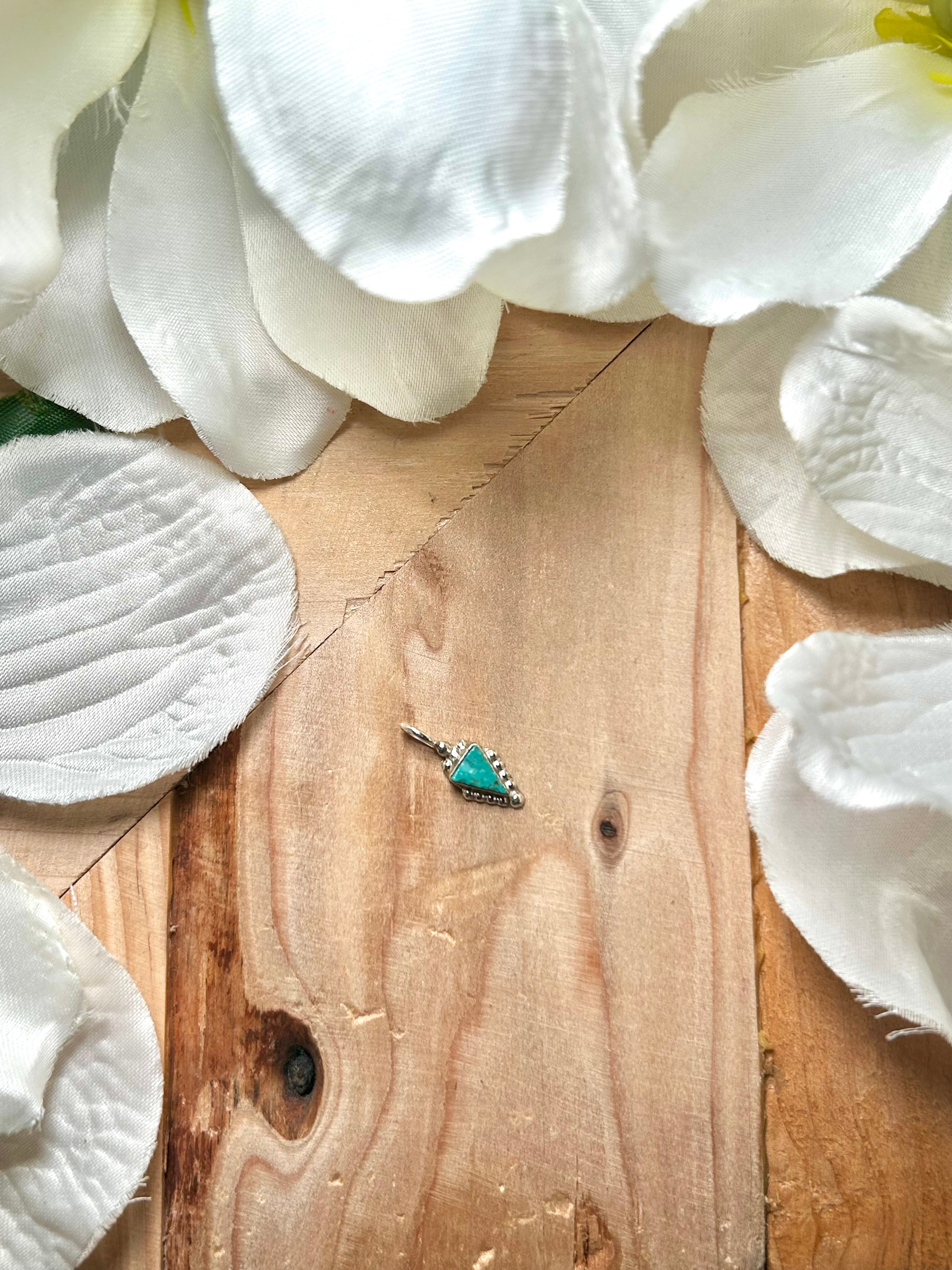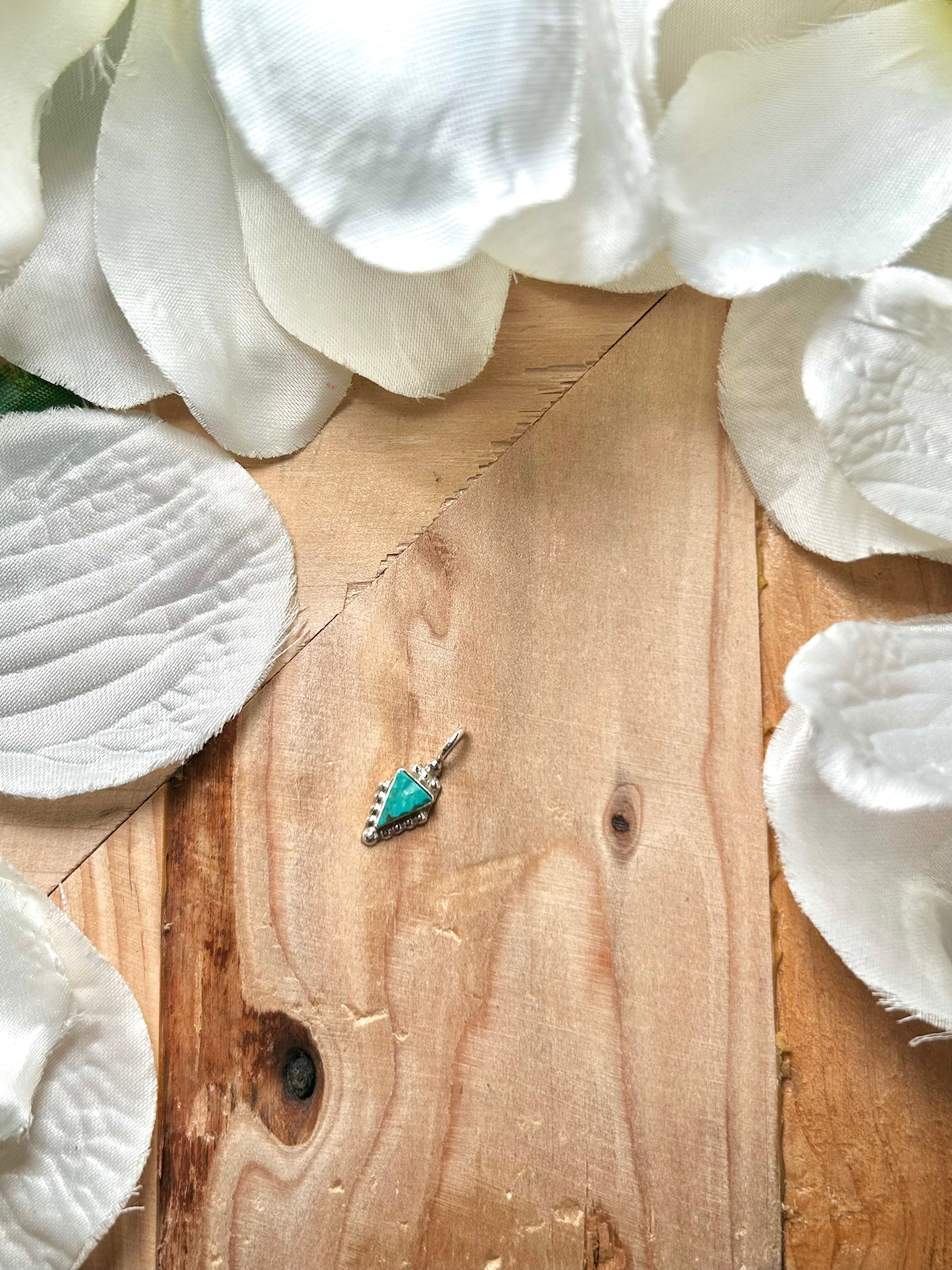 Navajo Made Kingman Turquoise & Sterling Silver Pendant. It measures 3/4 of an inch long and 3/8 of an inch wide. Pendant Only! Signed by the artist and stamped sterling silver.