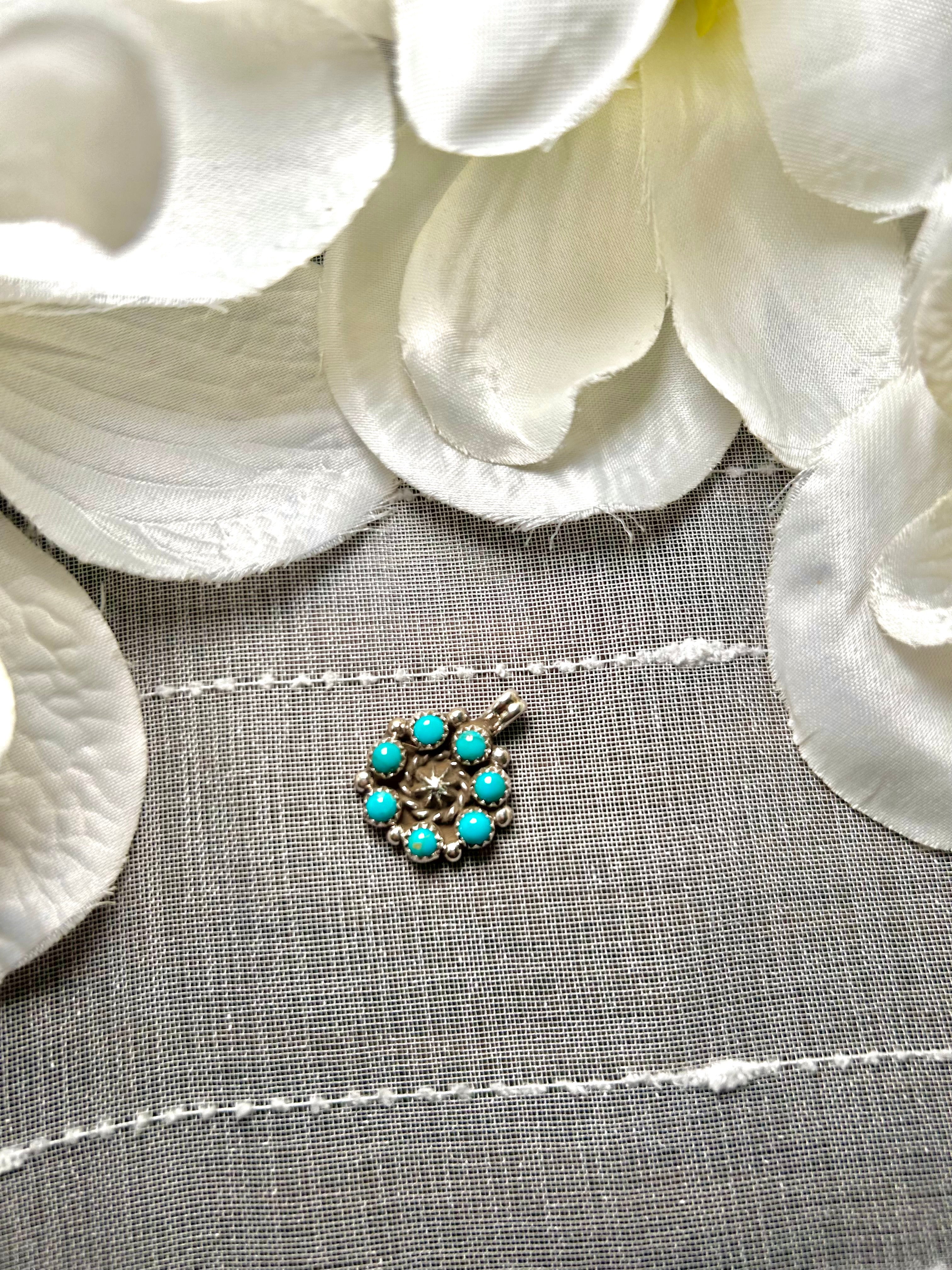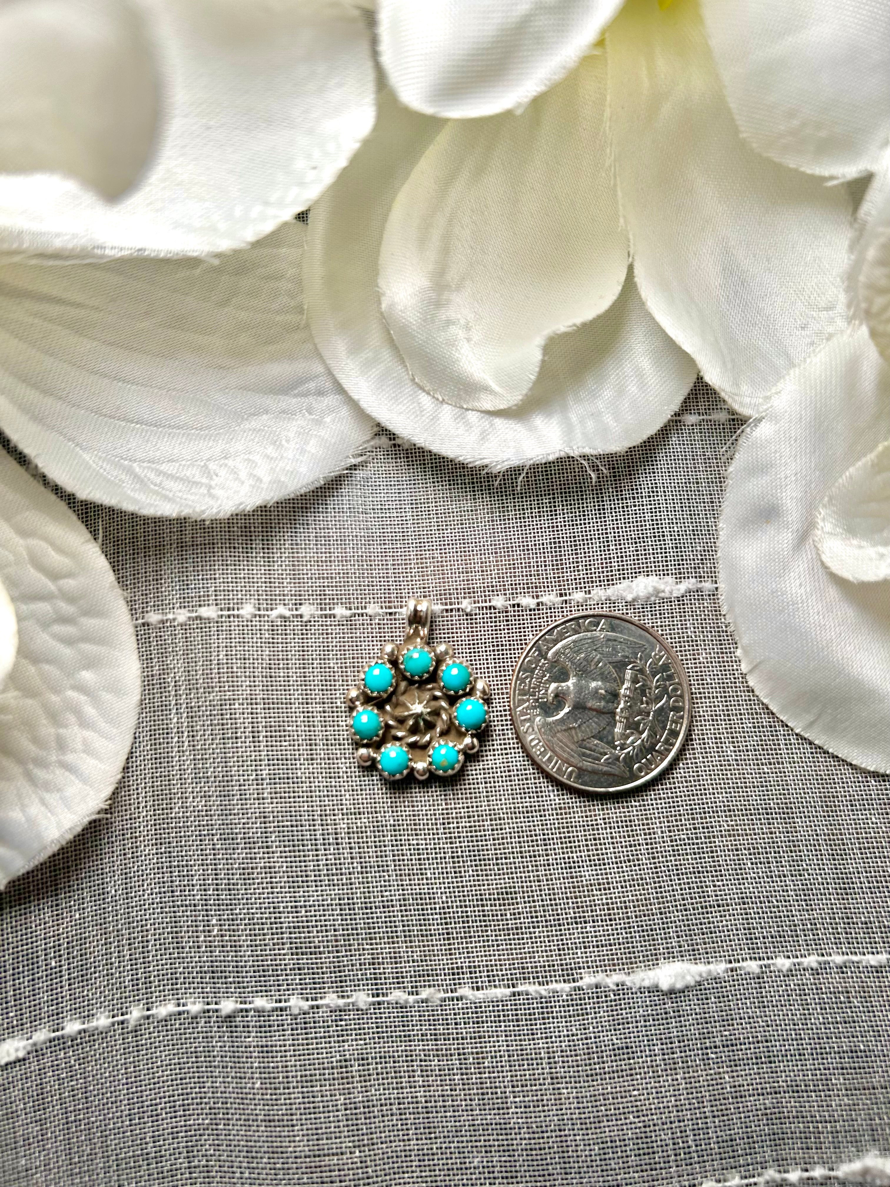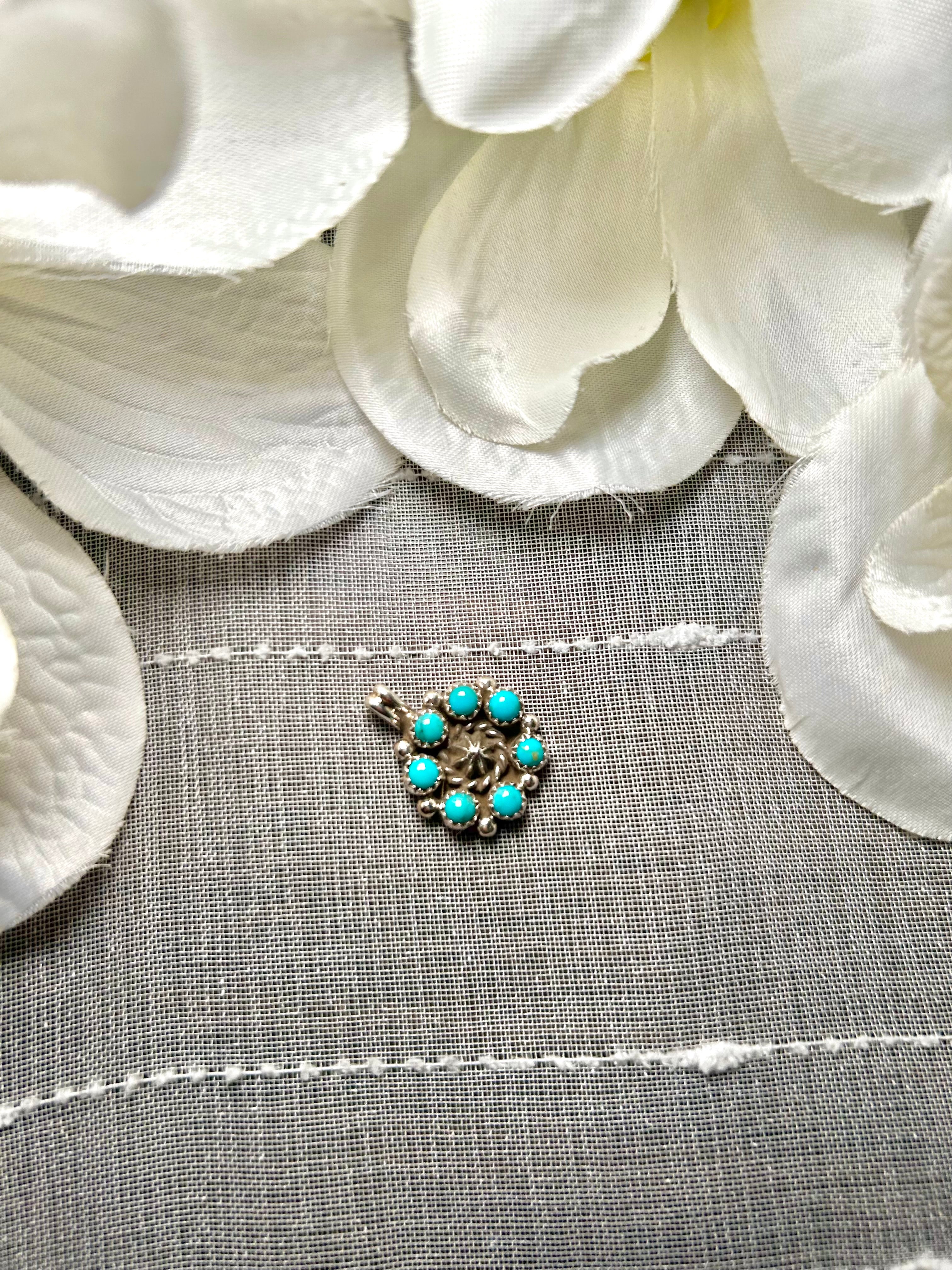 Fairren Beggy Kingman Turquoise & Sterling Silver Pendant. It measures 7/8 of an inch long and 3/4 of an inch wide. Pendant Only! Signed by the artist and stamped sterling silver.