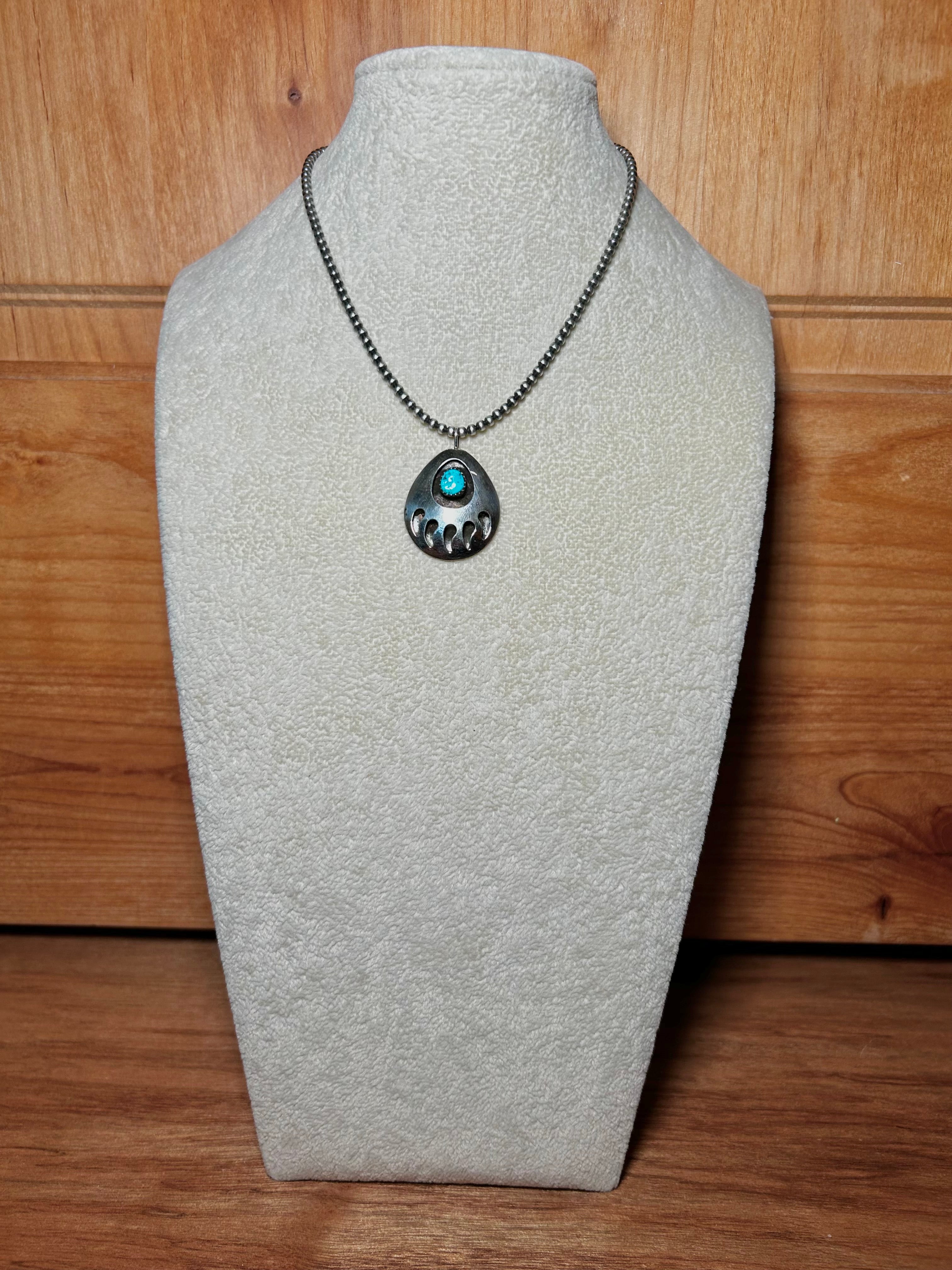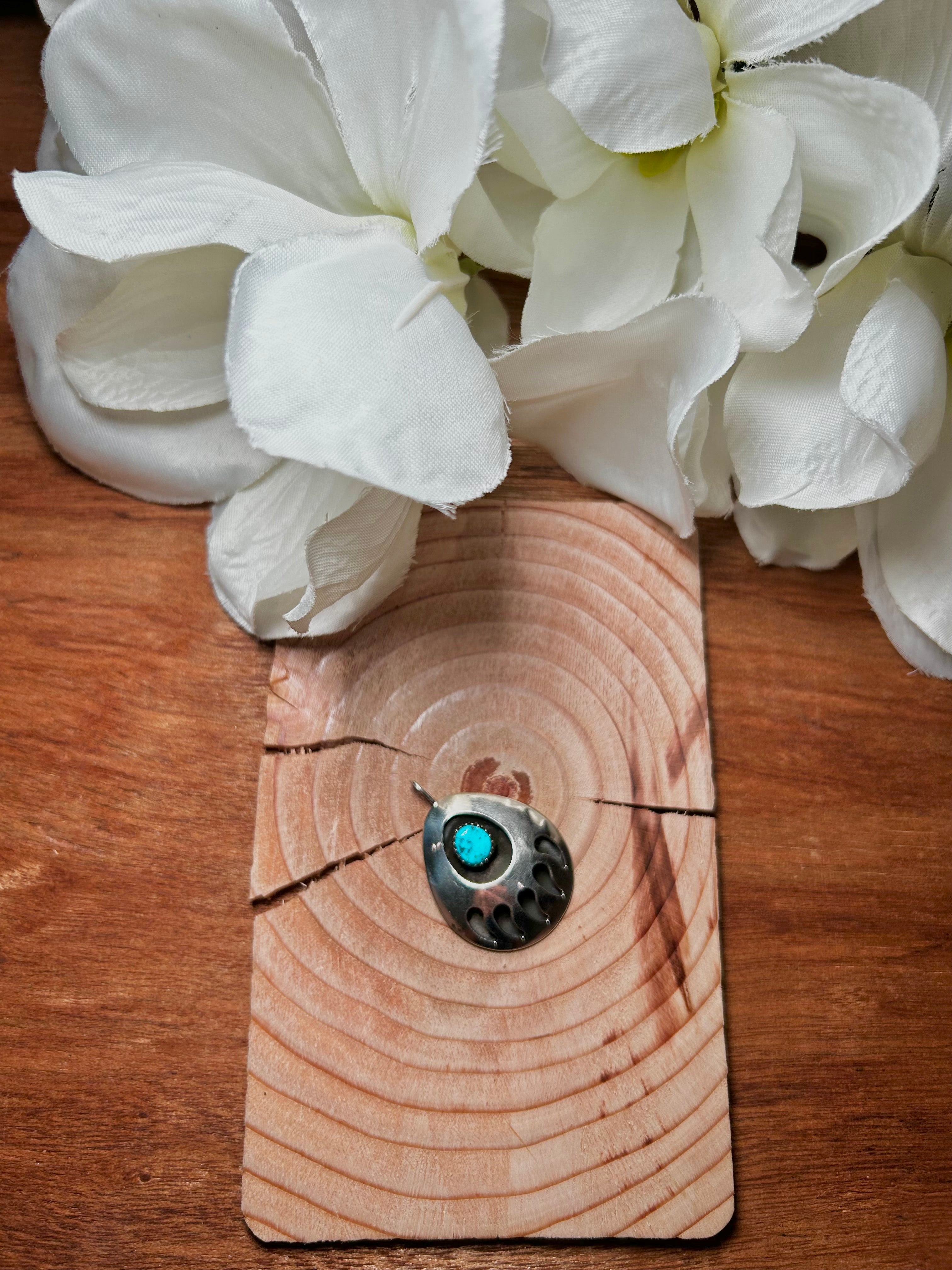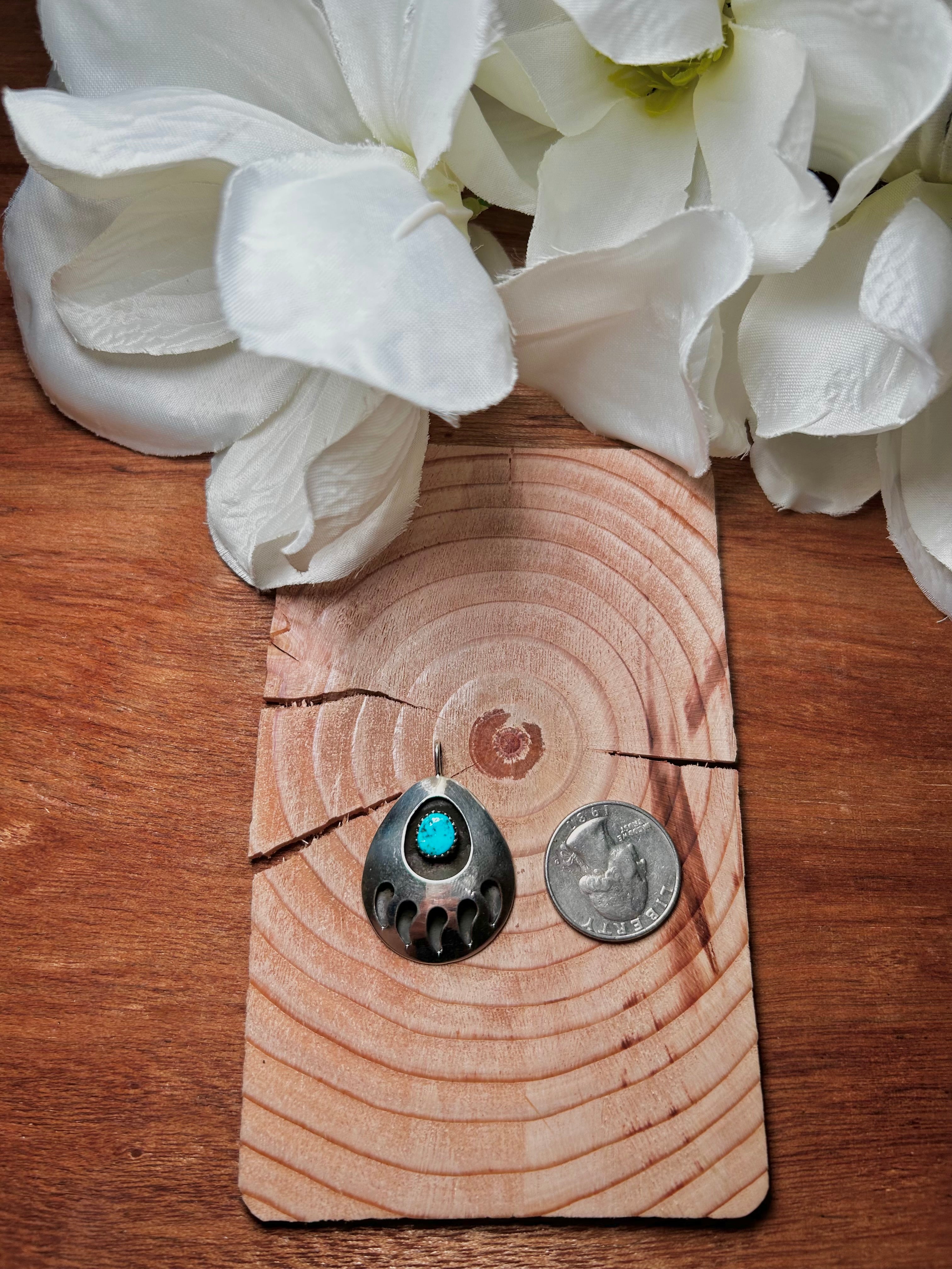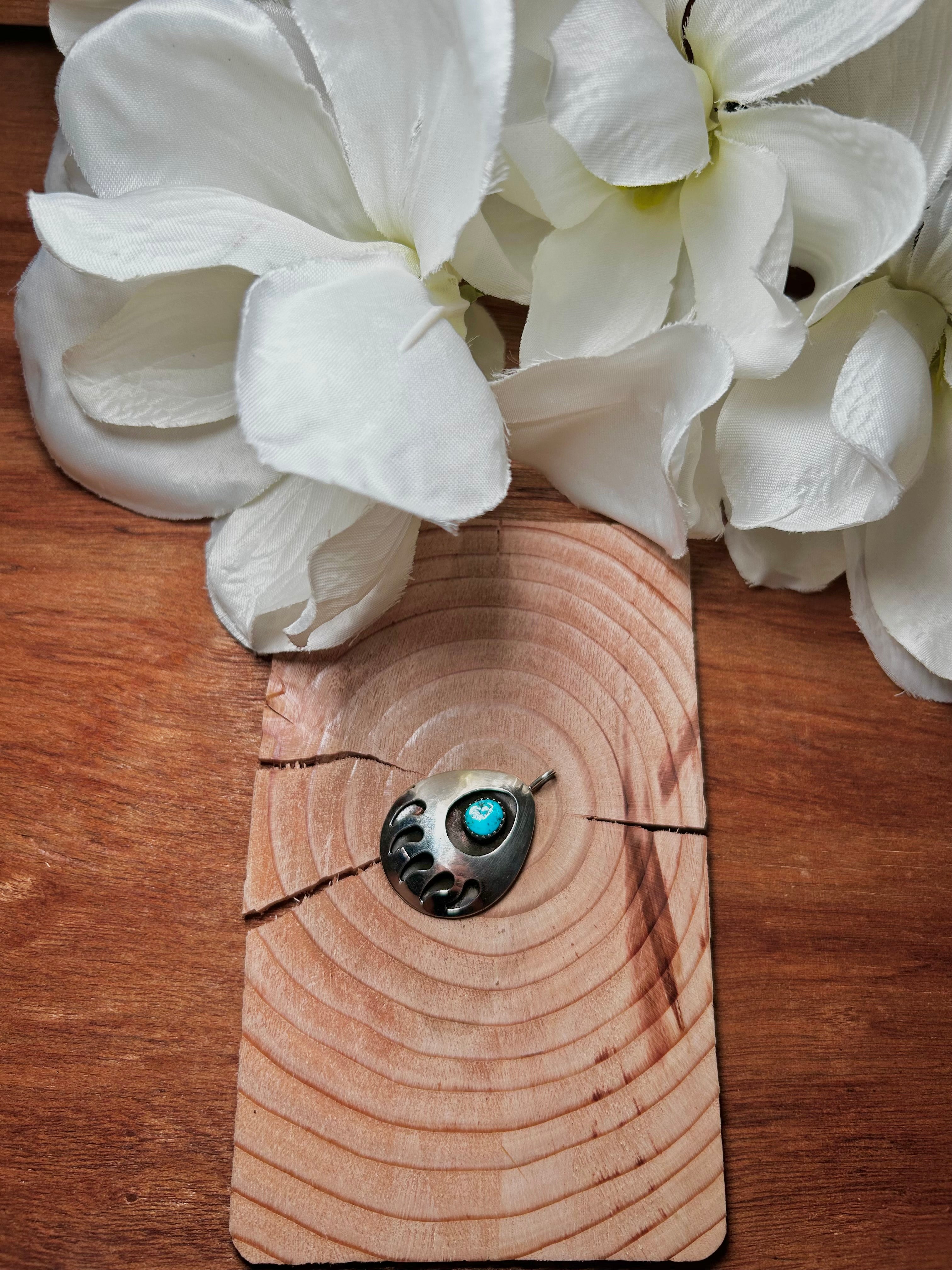 Navajo Made Kingman Turquoise & Sterling Silver Pendant