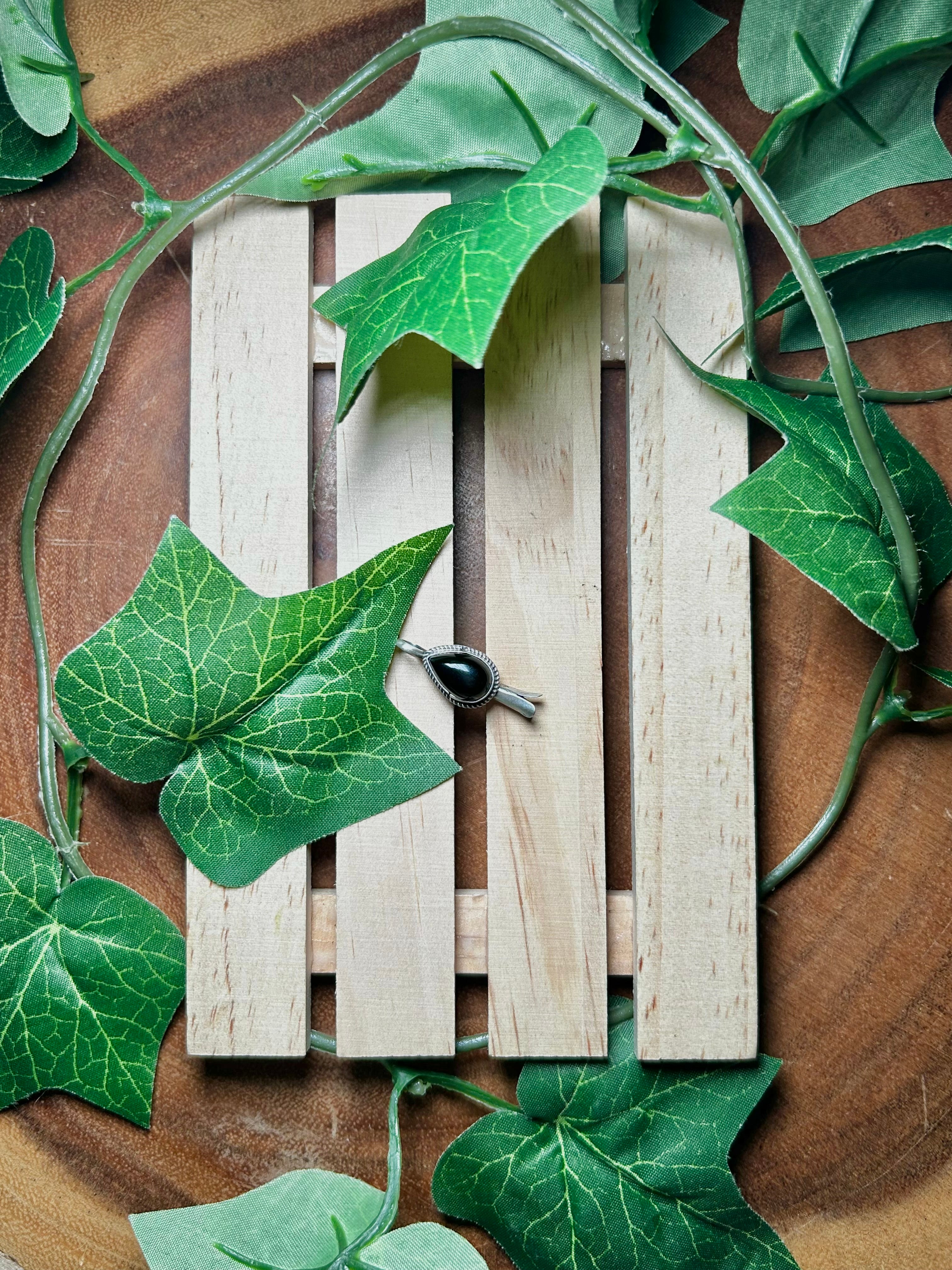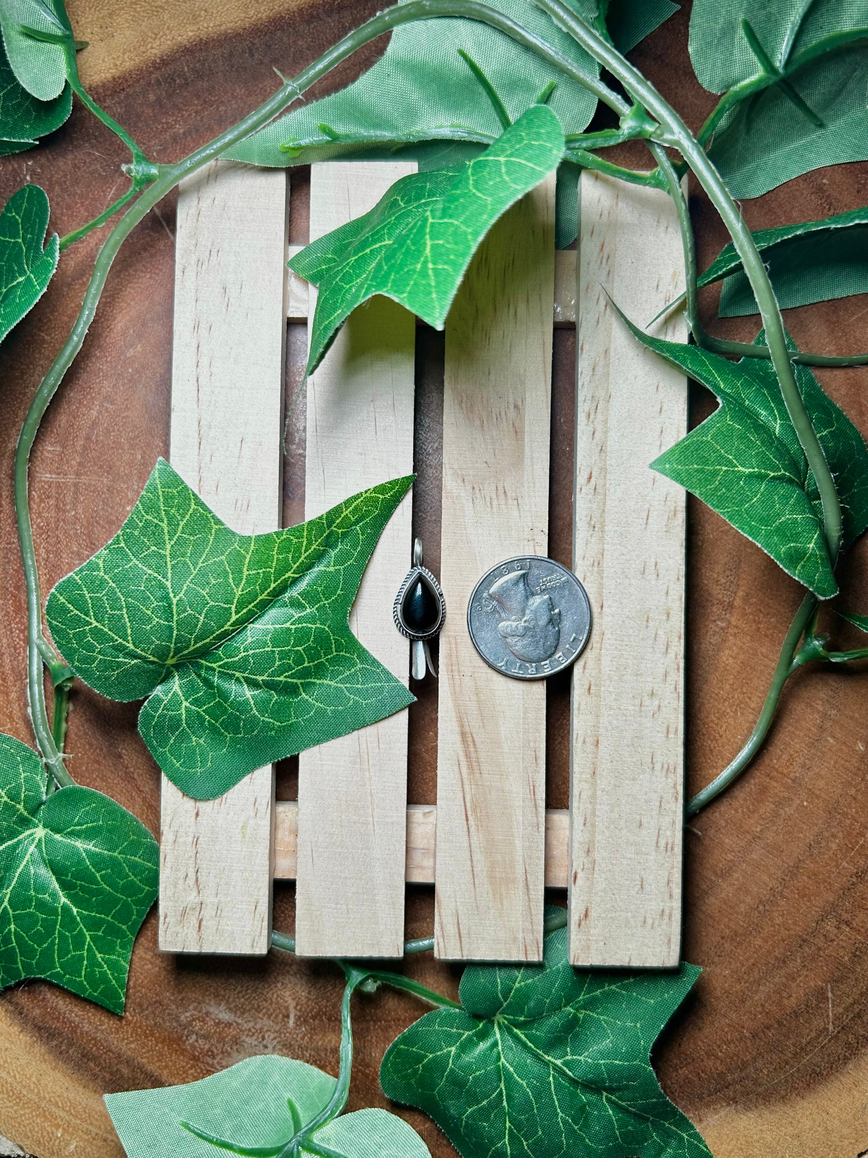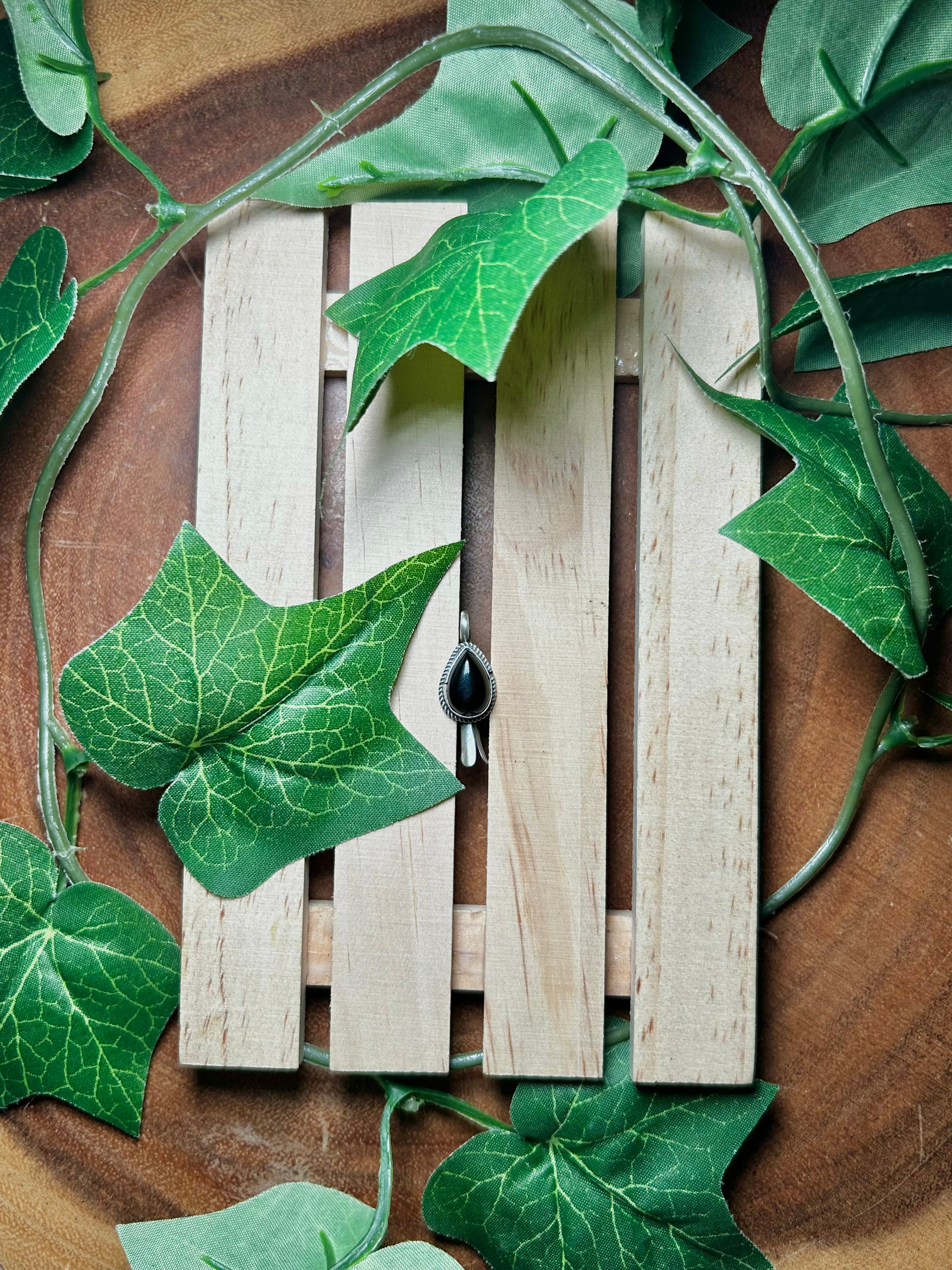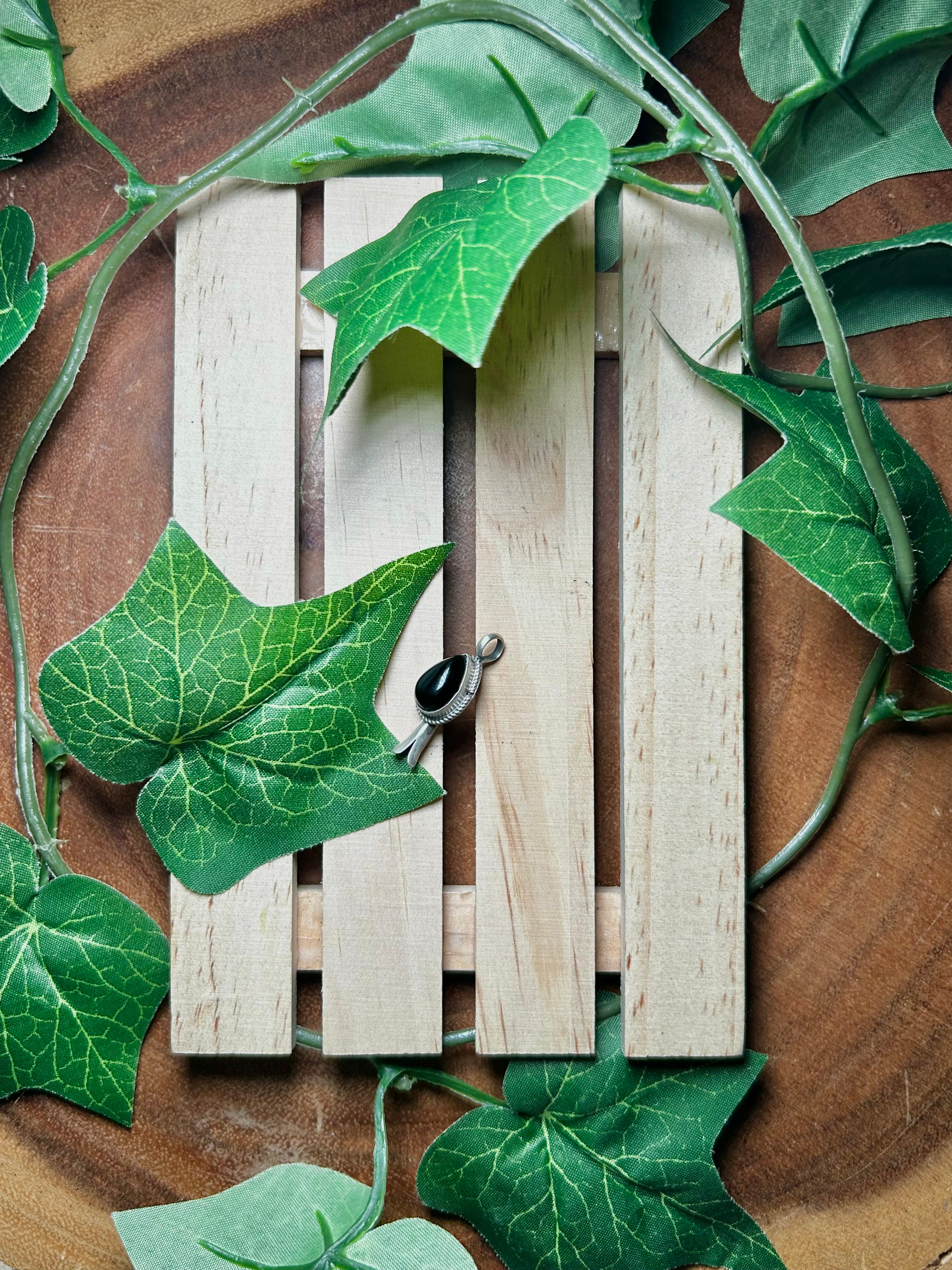 Navajo Made Onyx & Sterling Silver Pendant. It measures 1 1/8 inches long and 3/8 of an inch wide. Pendant Only!! Signed by the artist and stamped sterling silver.