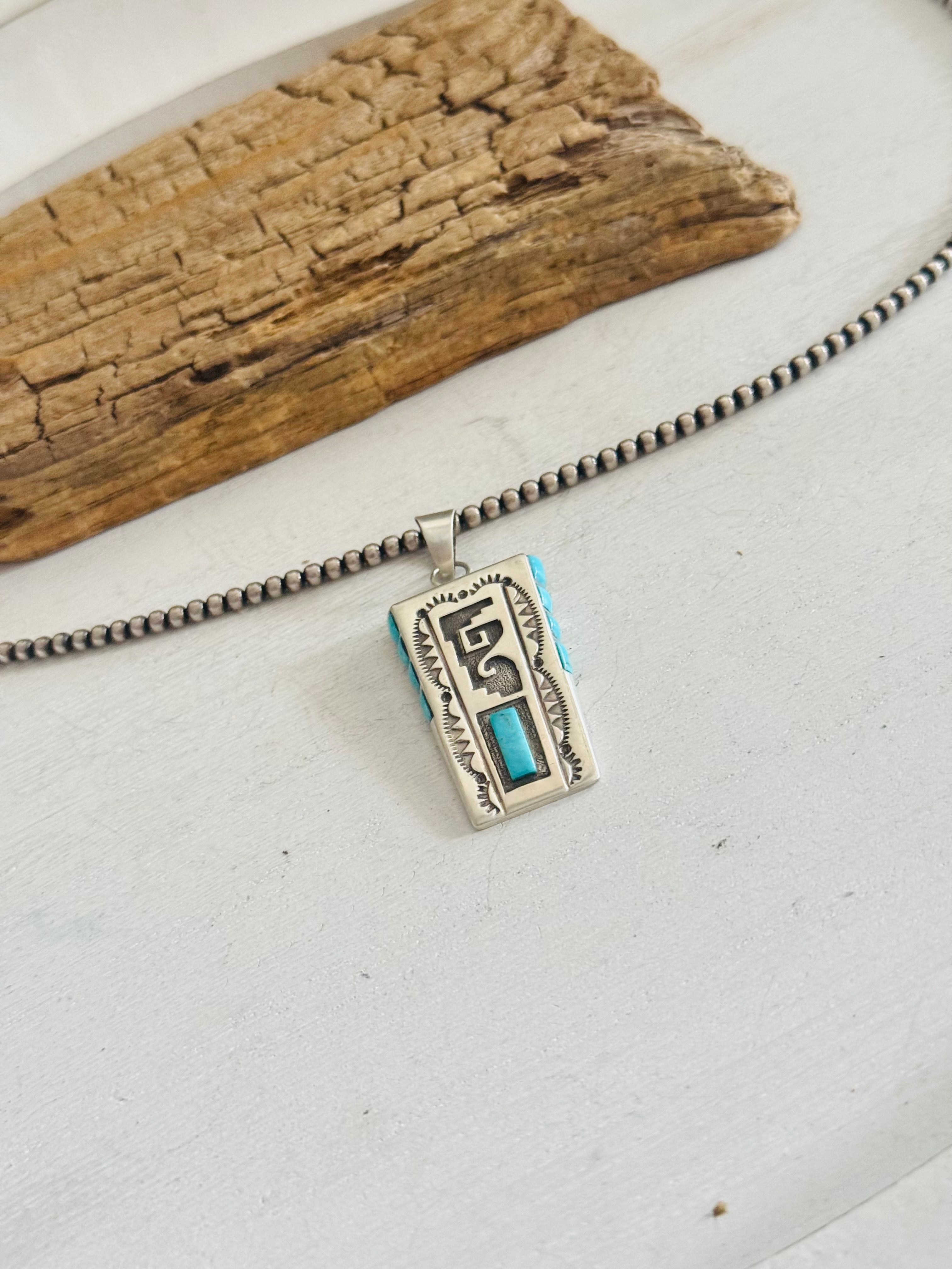 Navajo Made Kingman Turquoise & Sterling Silver Pendant