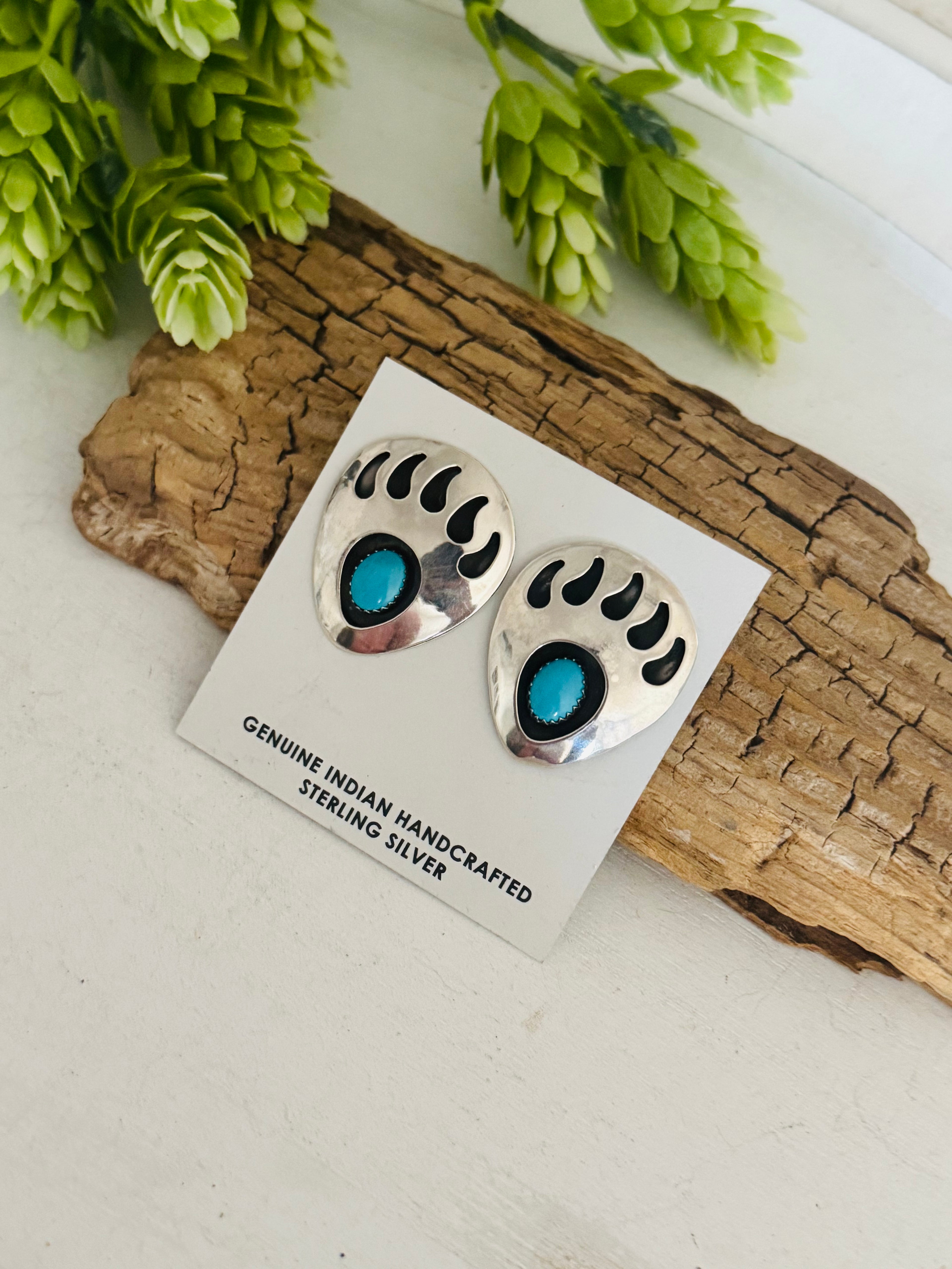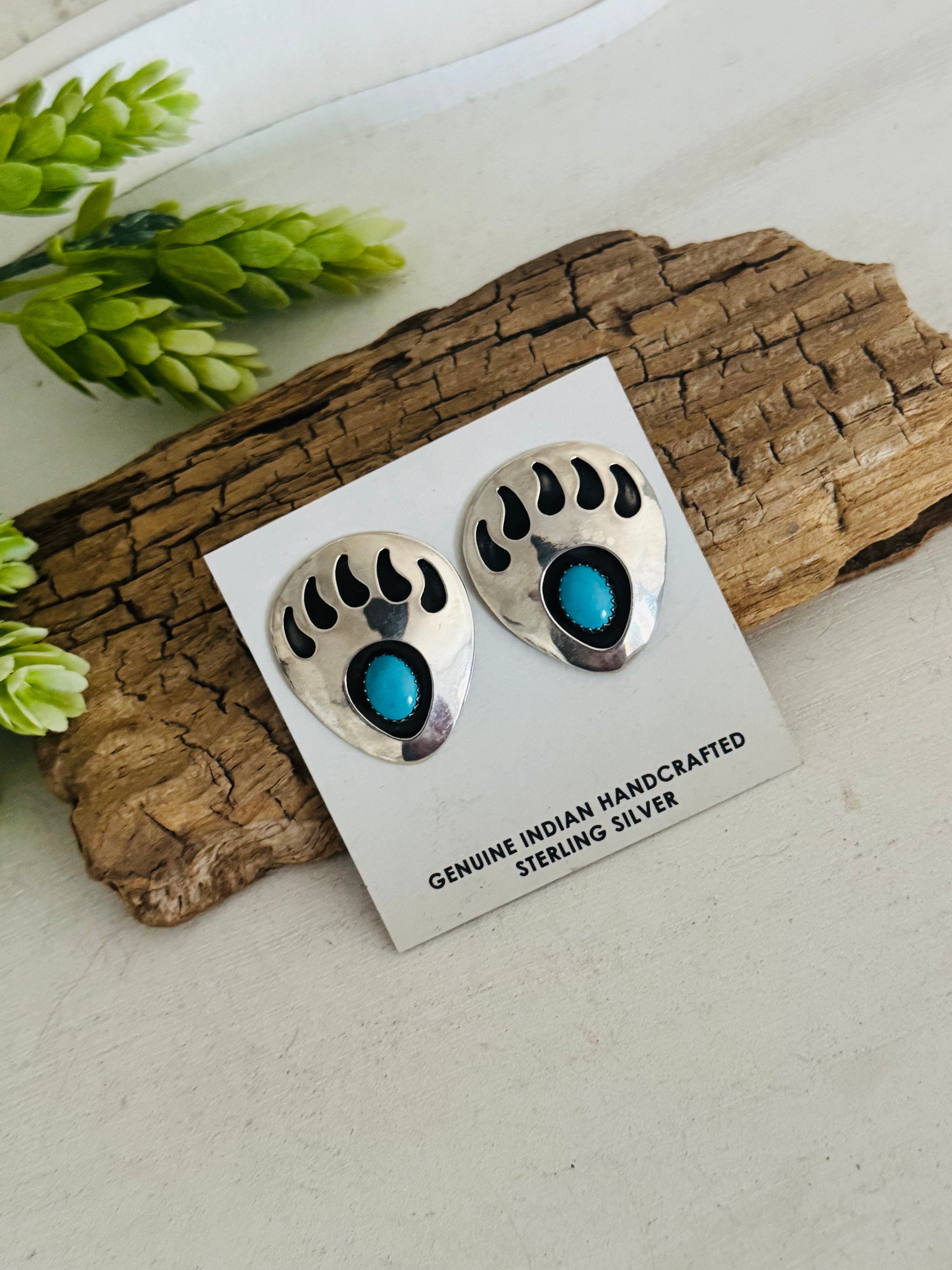 Navajo Made Kingman Turquoise & Sterling Silver Post Dangle Earrings