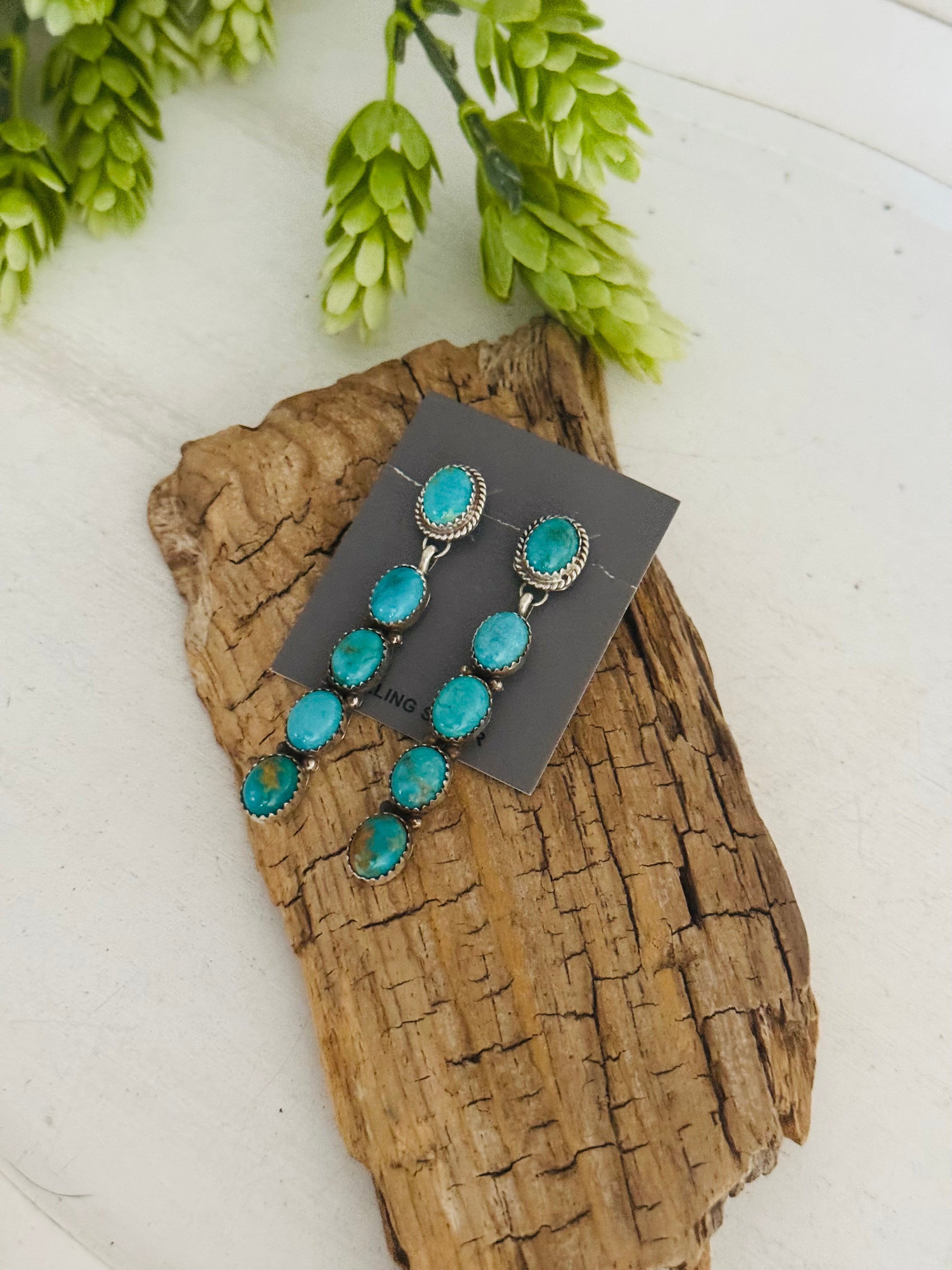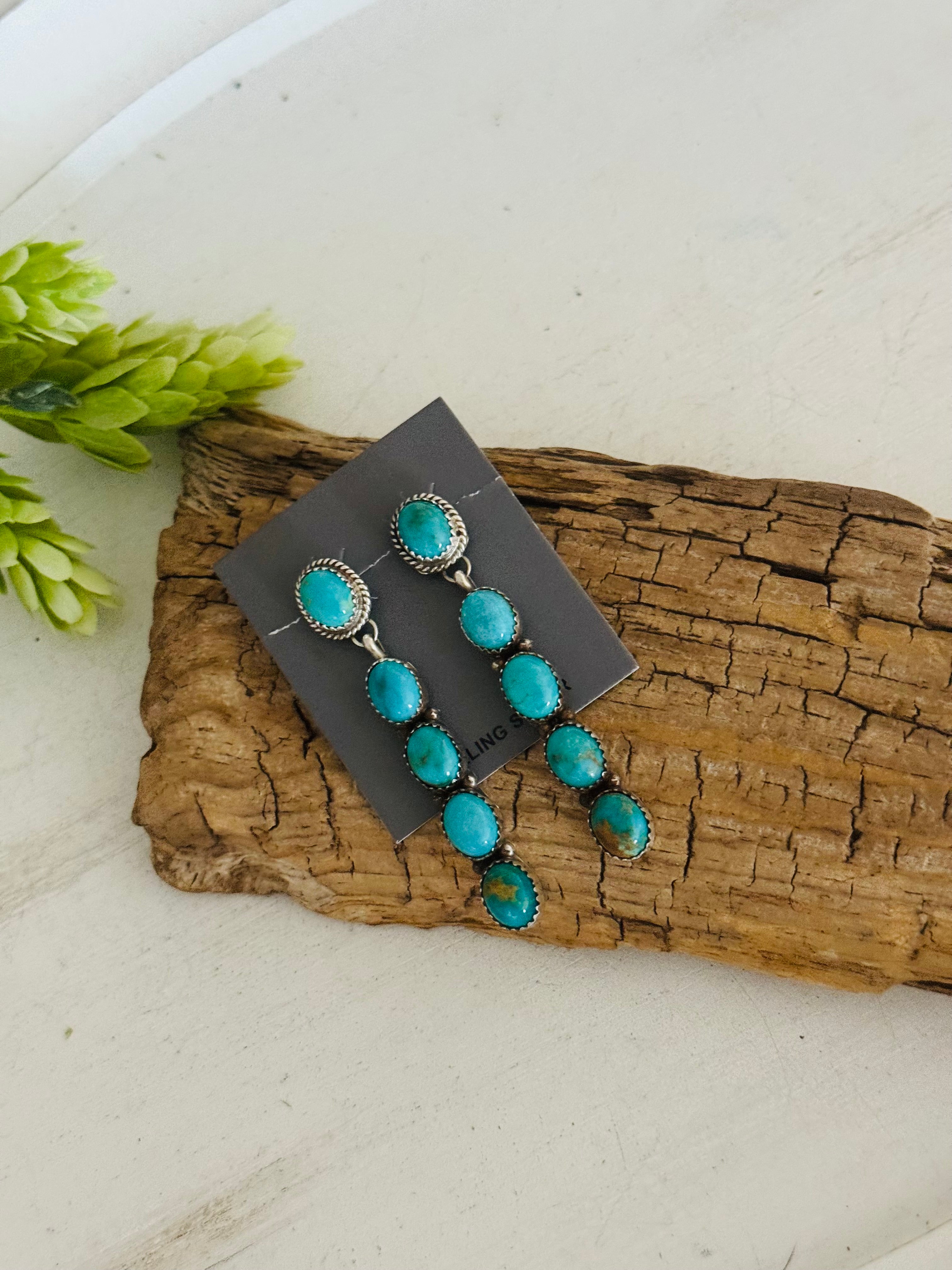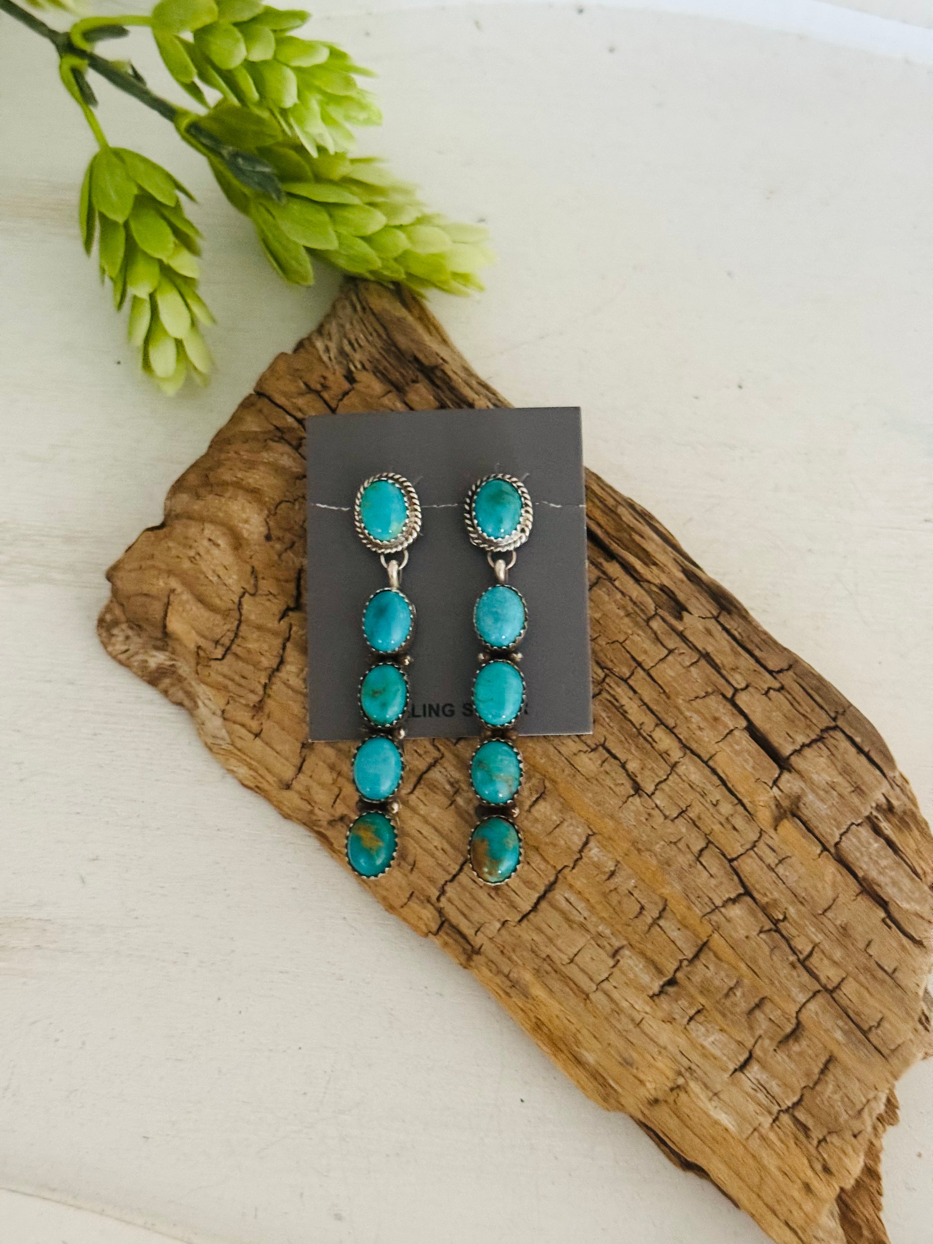 Navajo Made Kingman Turquoise & Sterling Silver Post Dangle Earrings