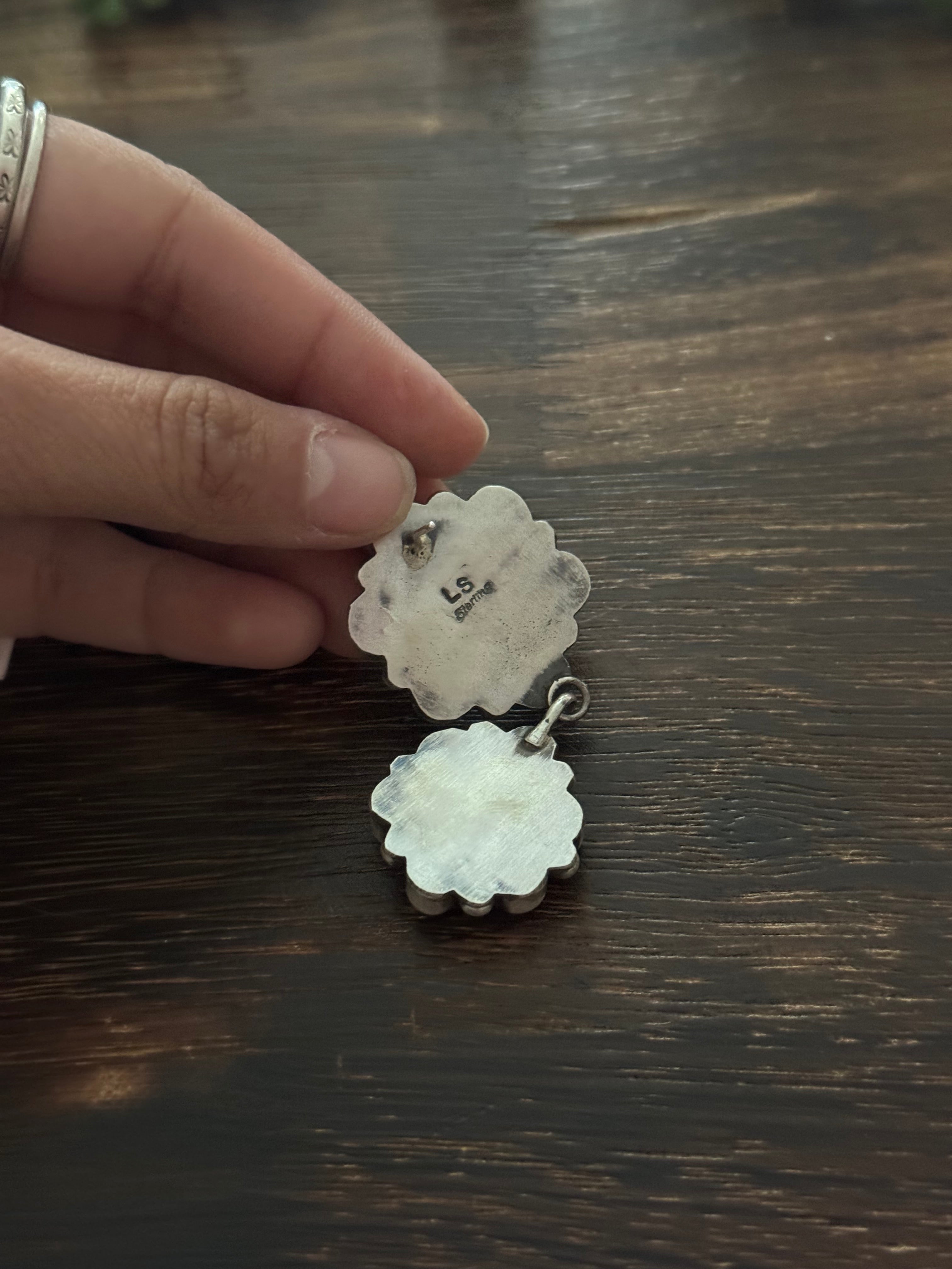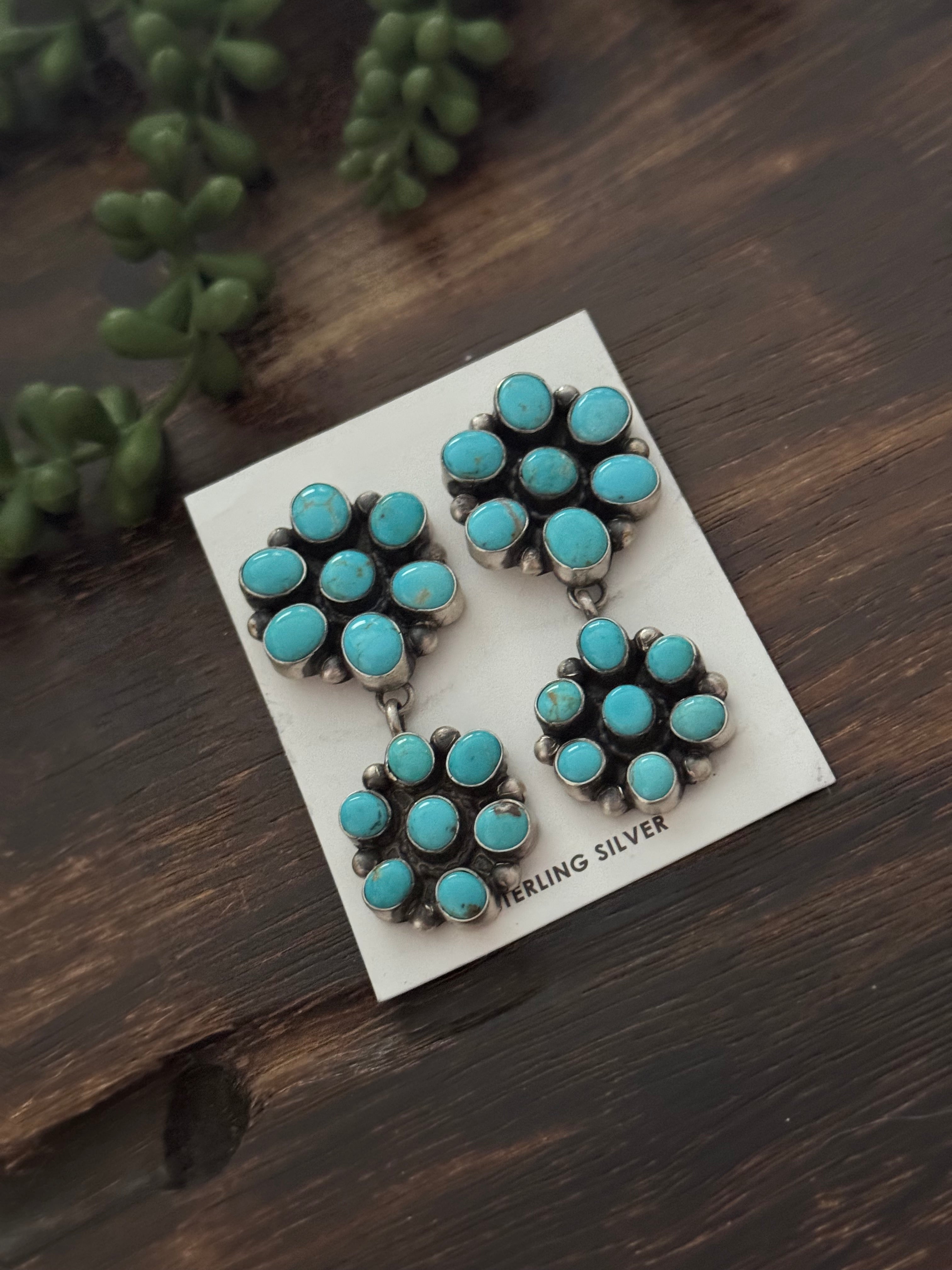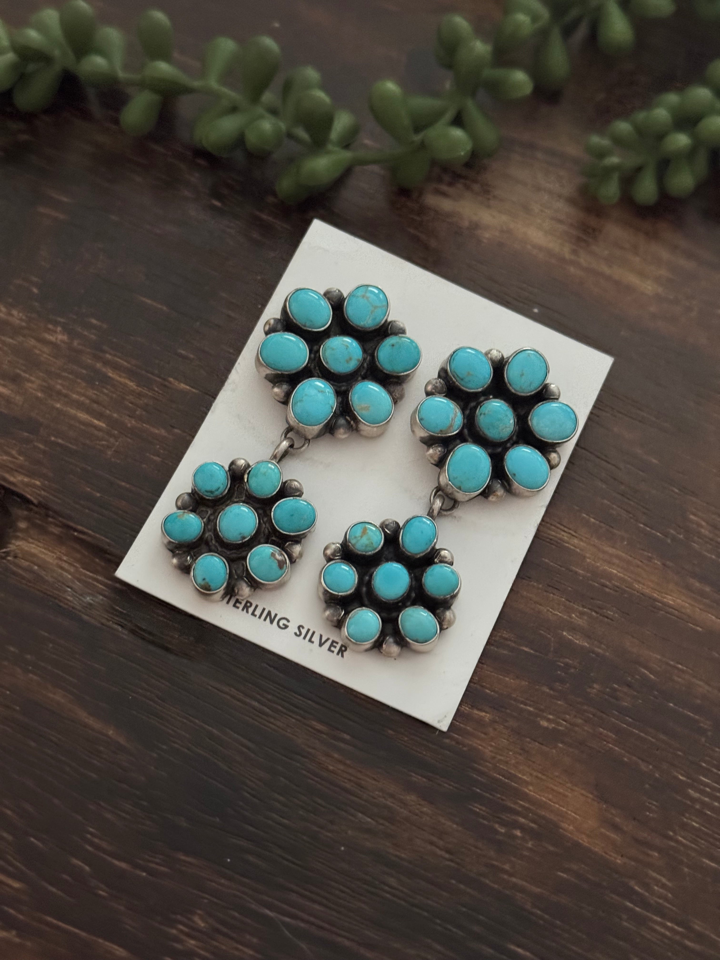 Navajo Made Kingman Turquoise & Sterling Silver Post Dangle Cluster Earrings