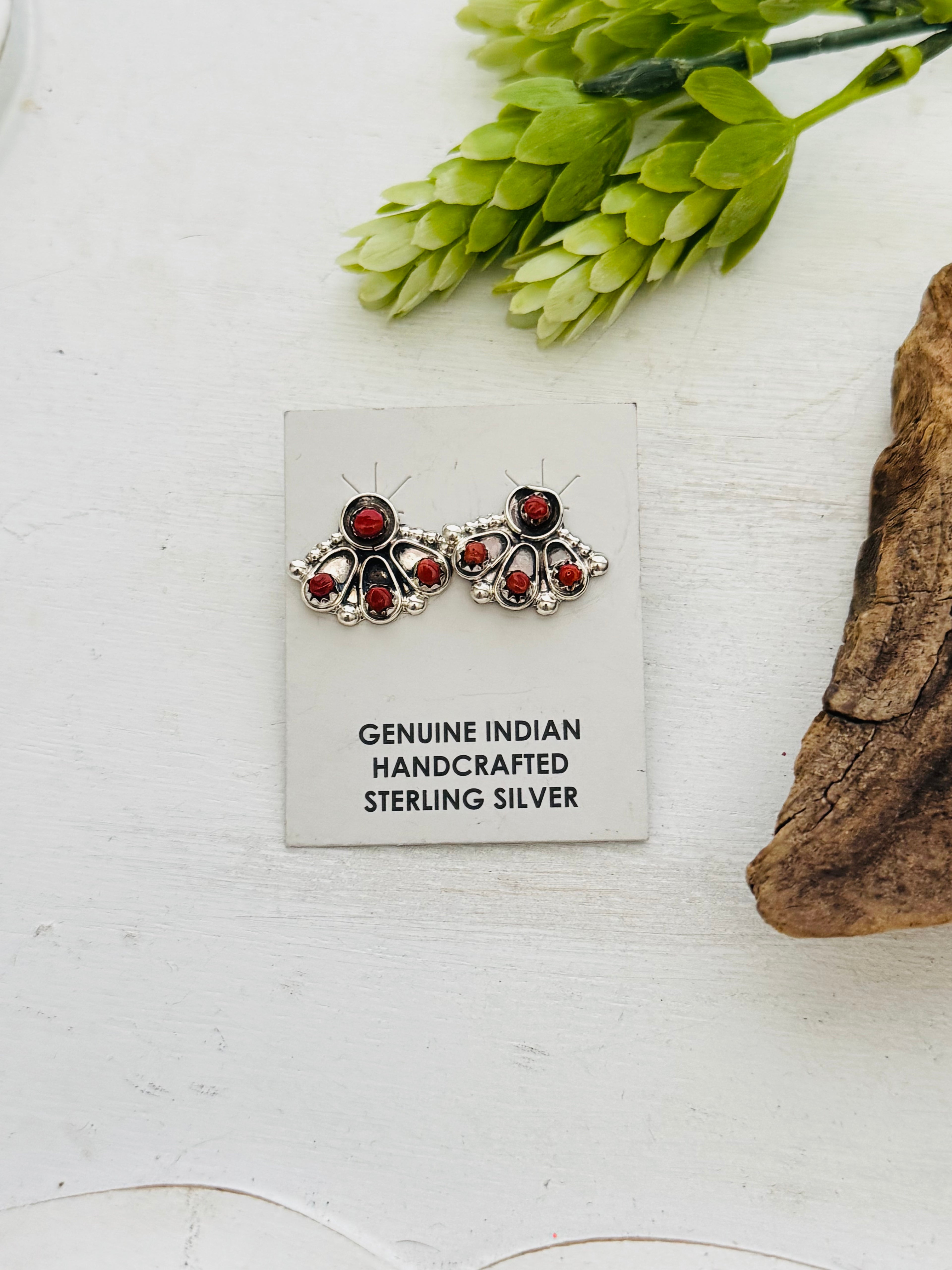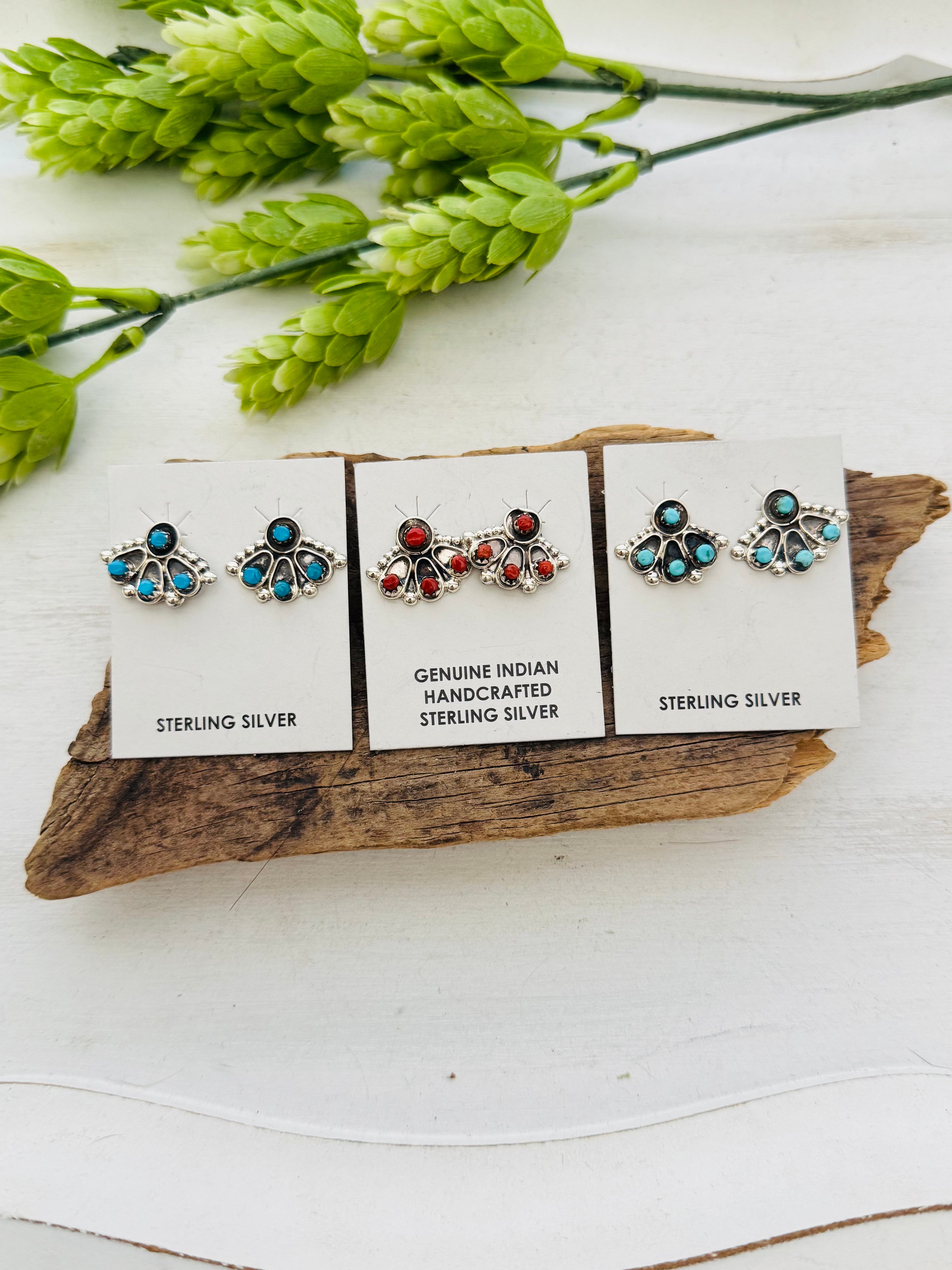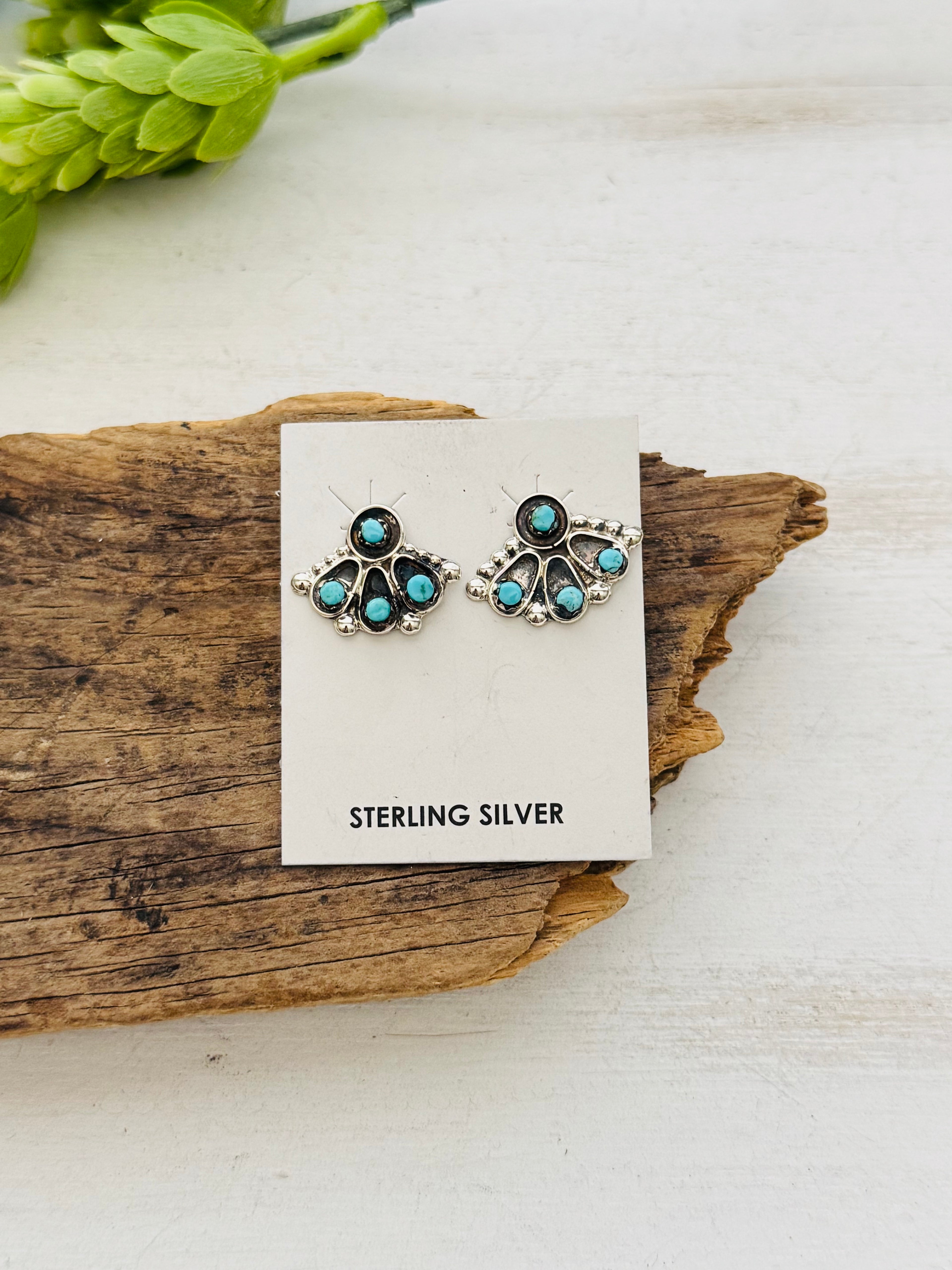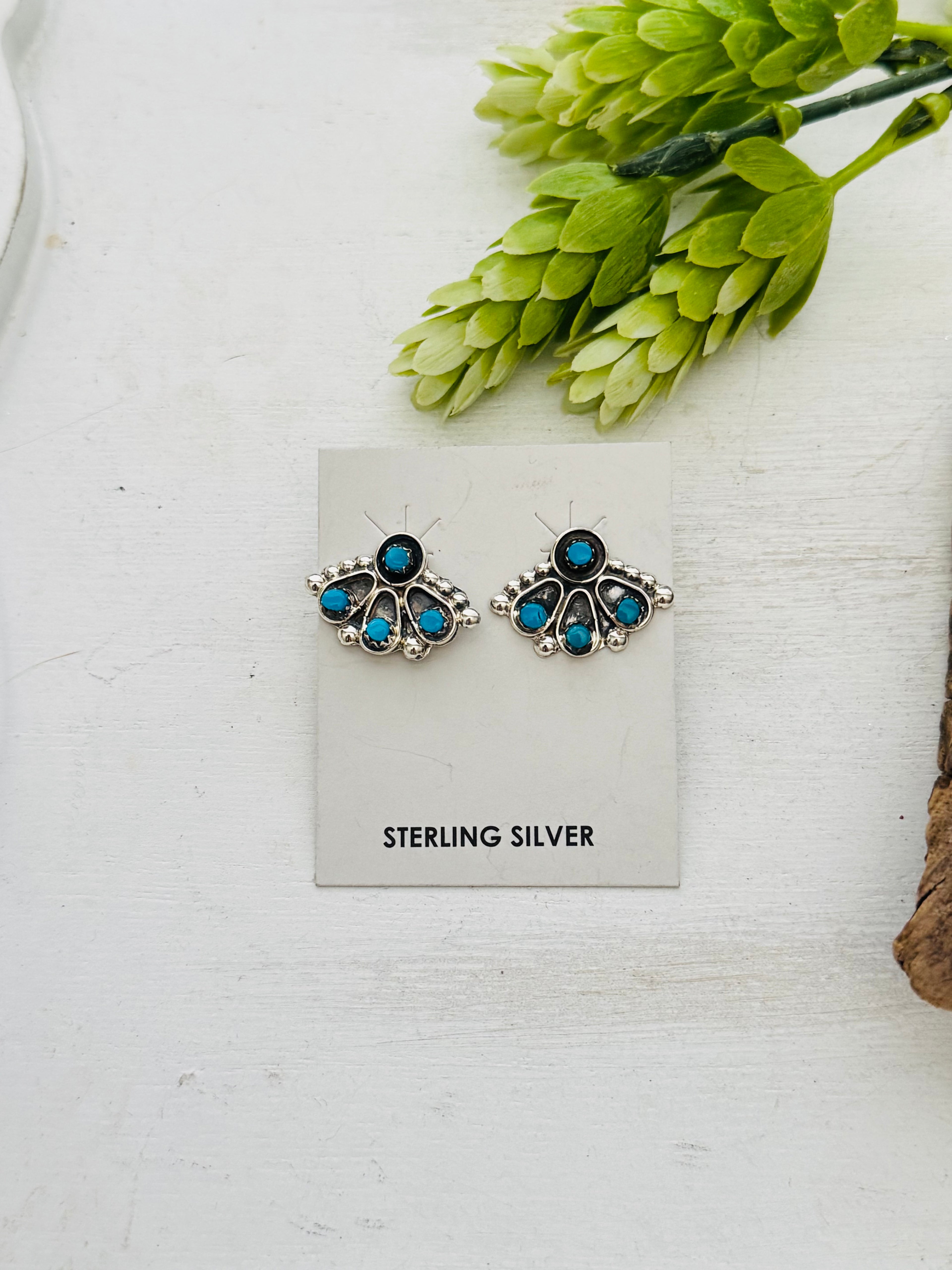 Navajo Made Sterling Silver Post Earrings. They measure 5/8 of an inch long and 7/8 of an inch wide . Stamped sterling silver.