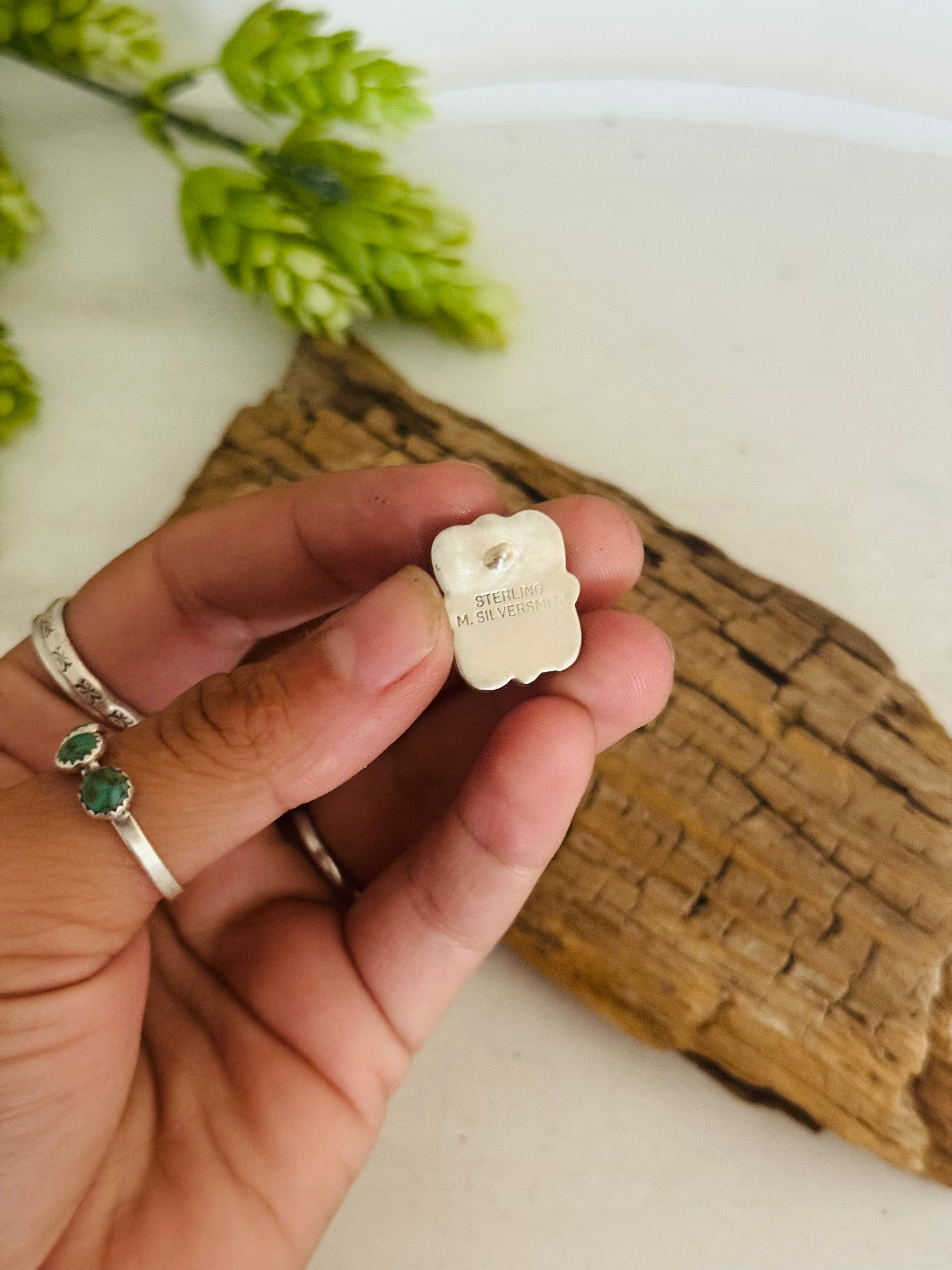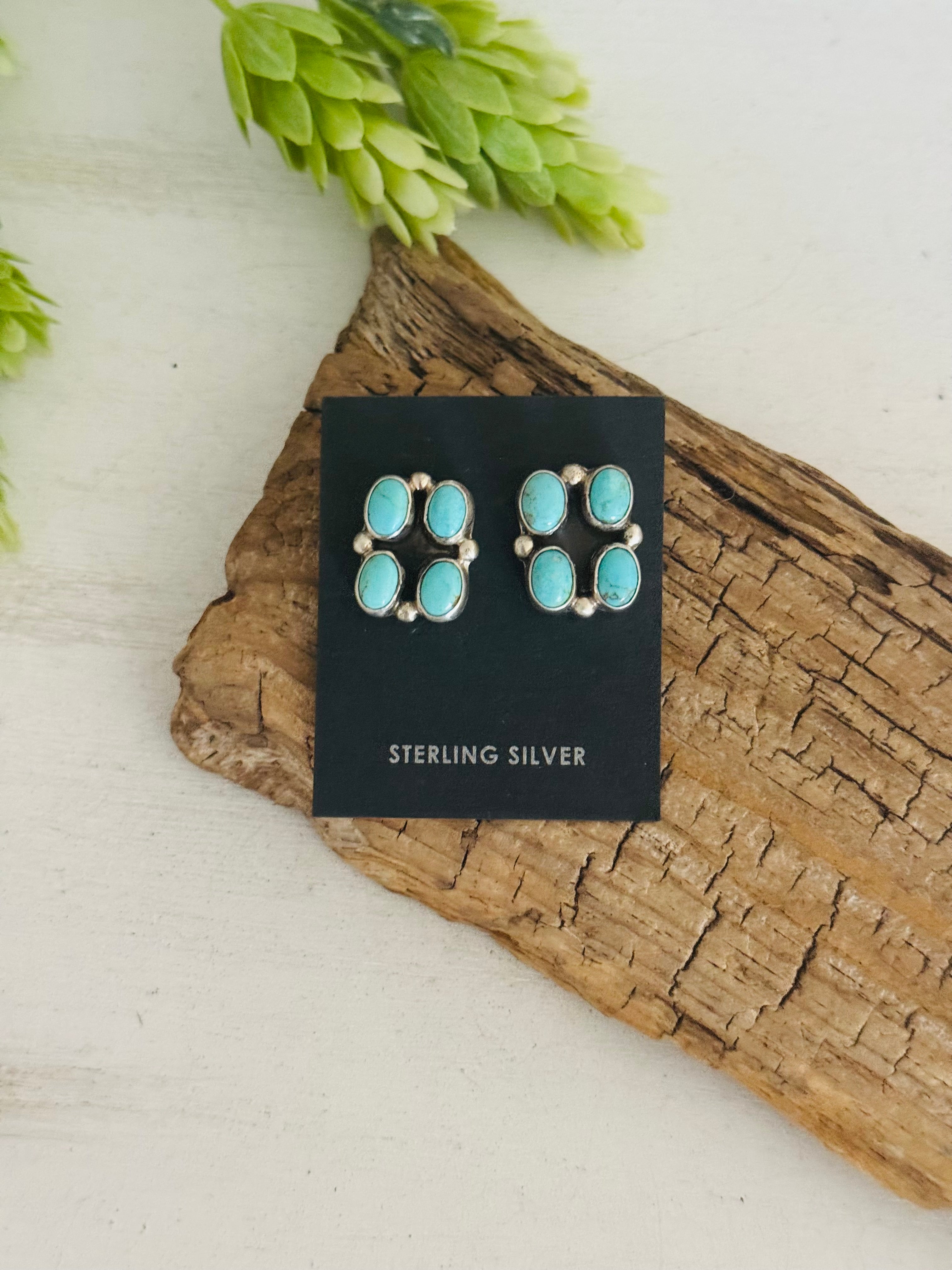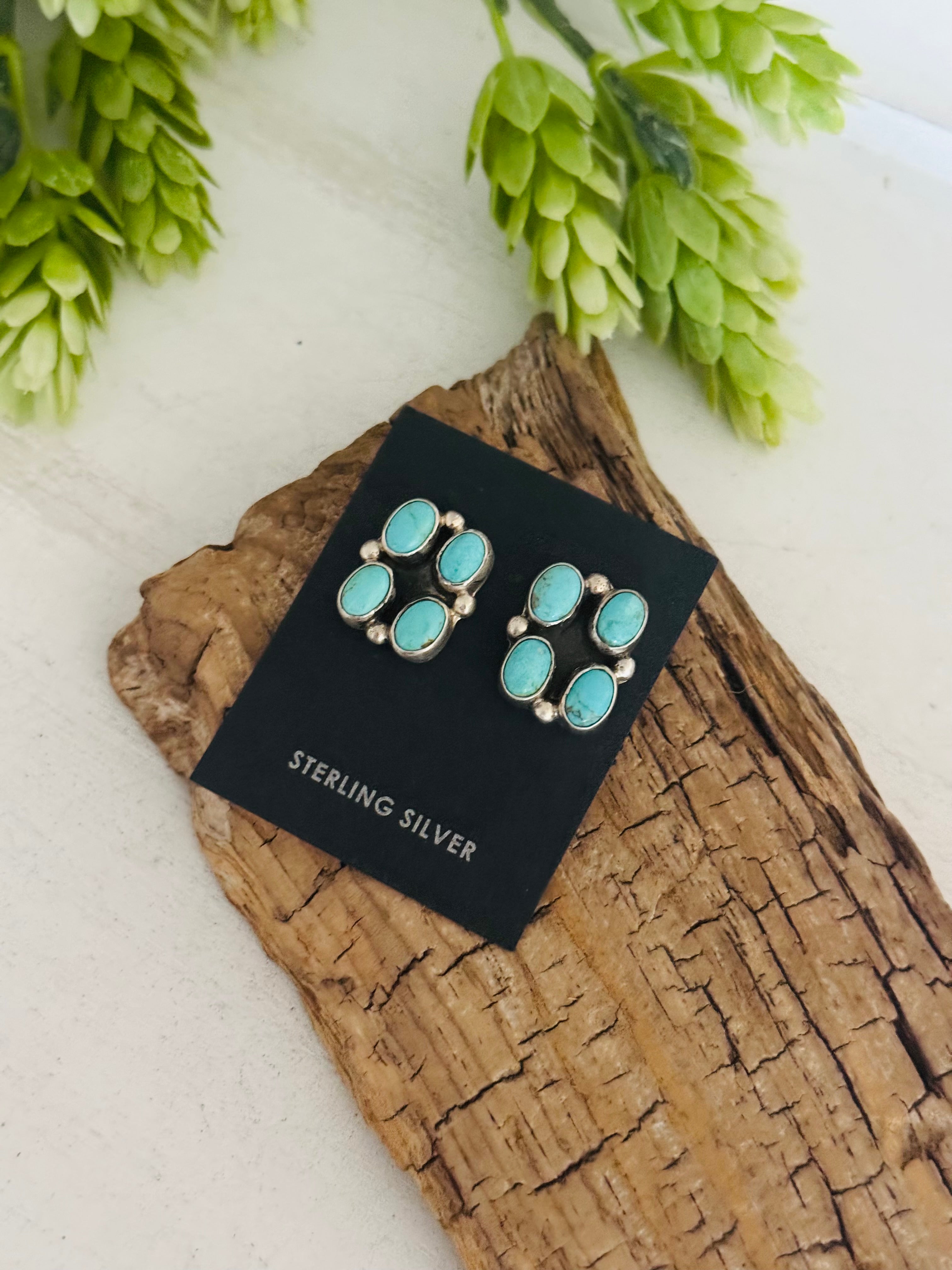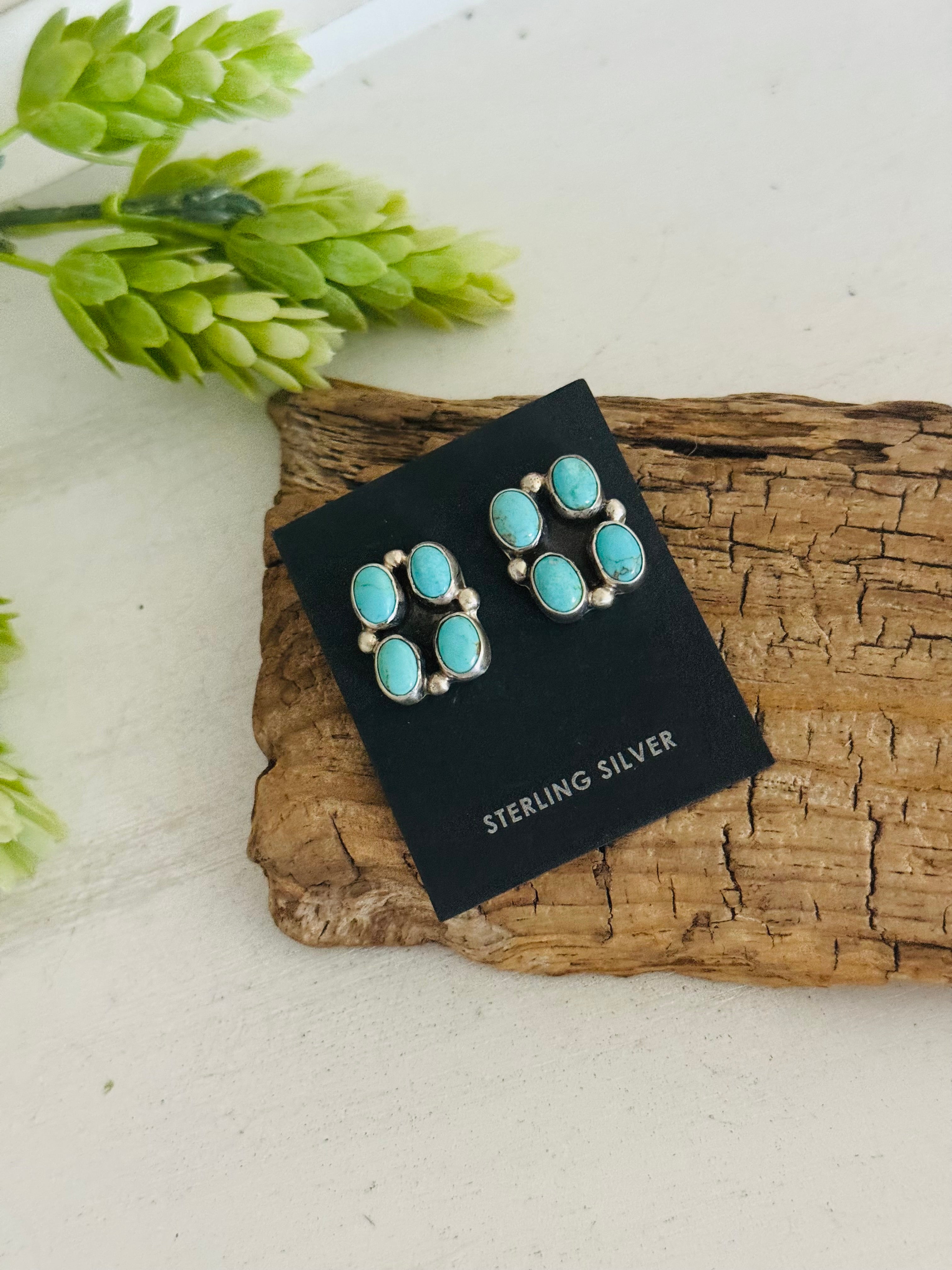 Navajo Made Kingman Turquoise & Sterling Silver Post Cluster Earrings