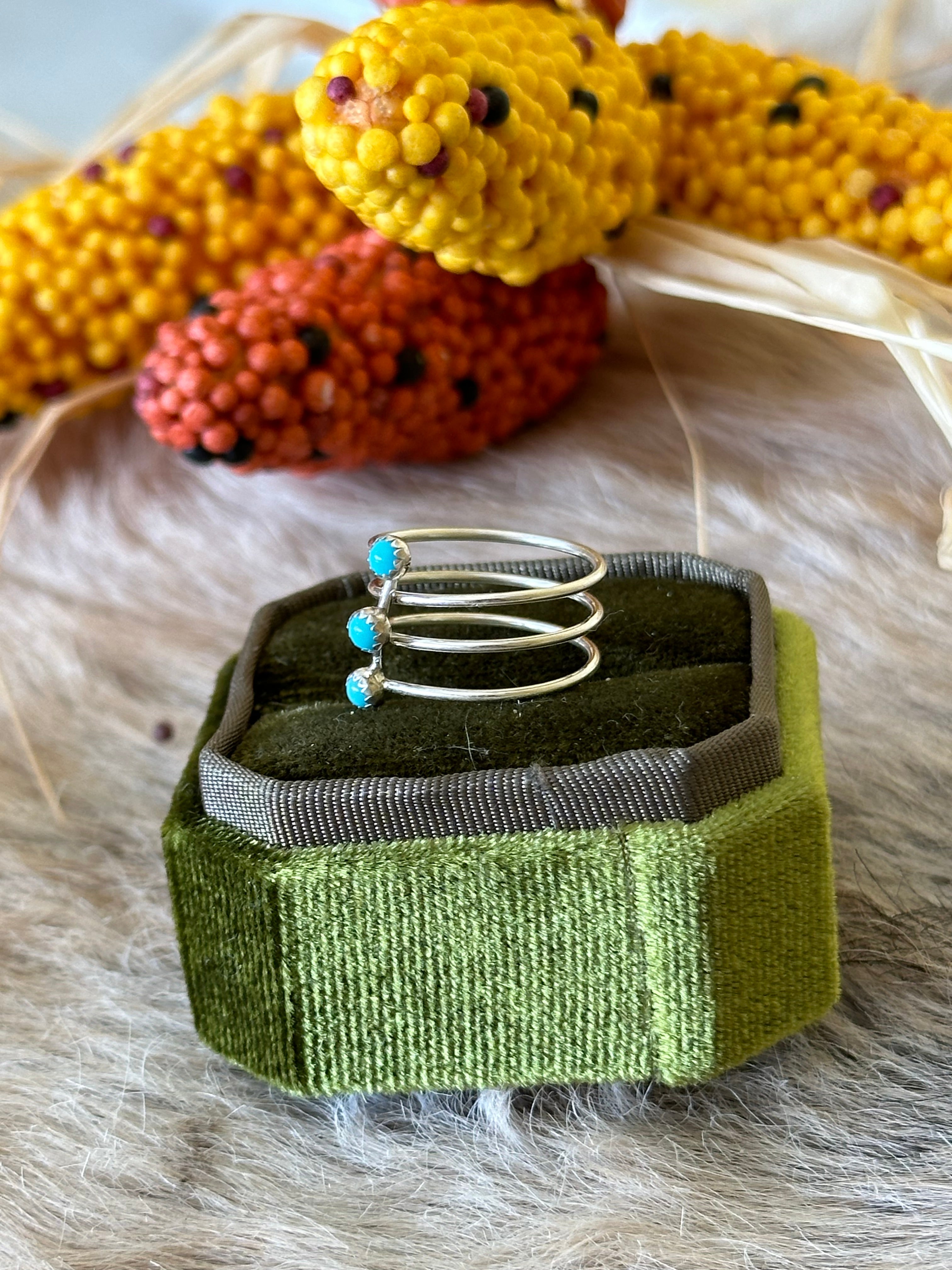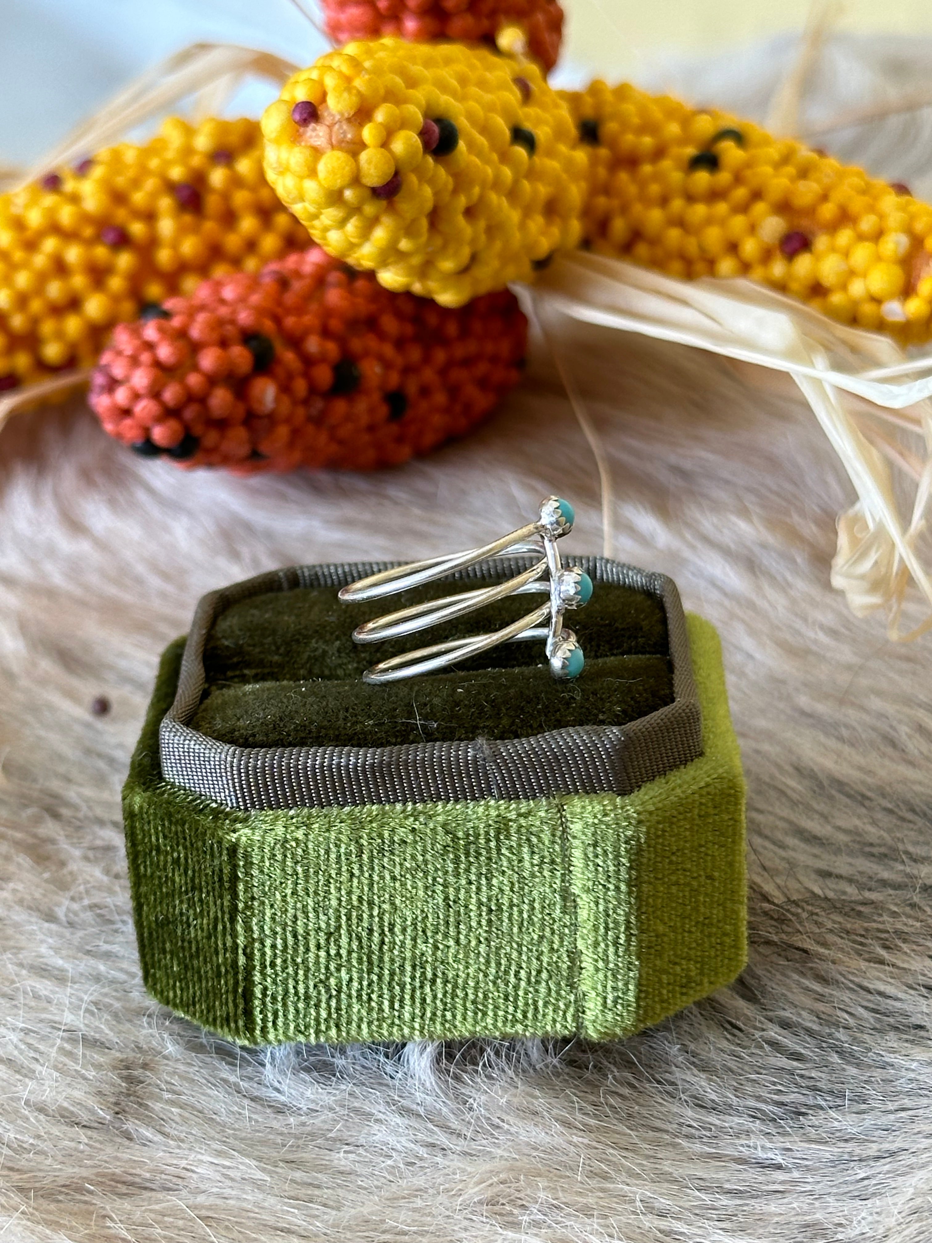 This is an awesome ring. Navajo Made Turquoise & Sterling Silver Ring. It measures 1/2 of an inch long .