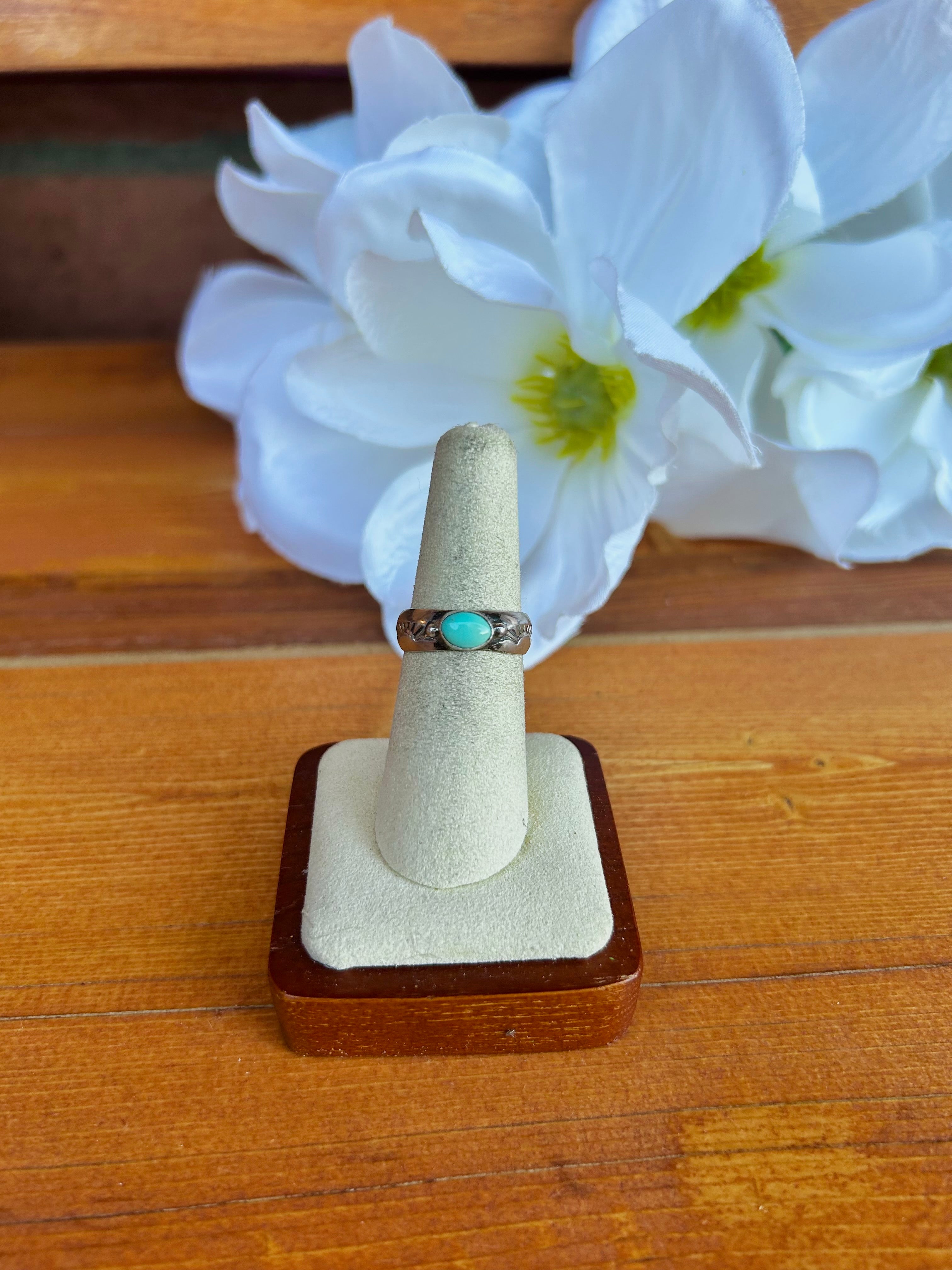 Navajo Made Kingman Turquoise & Sterling Silver Ring Size 6.5
