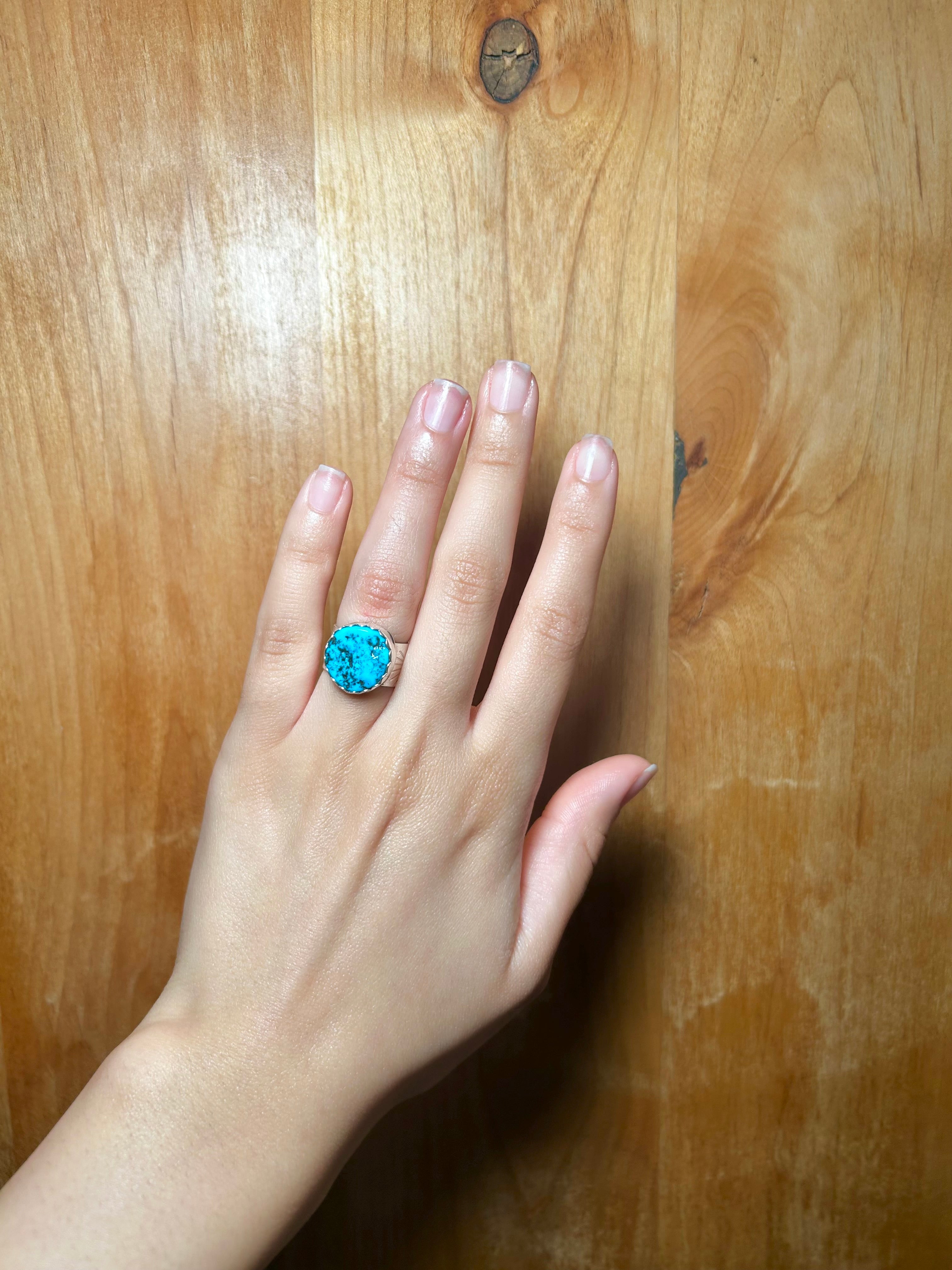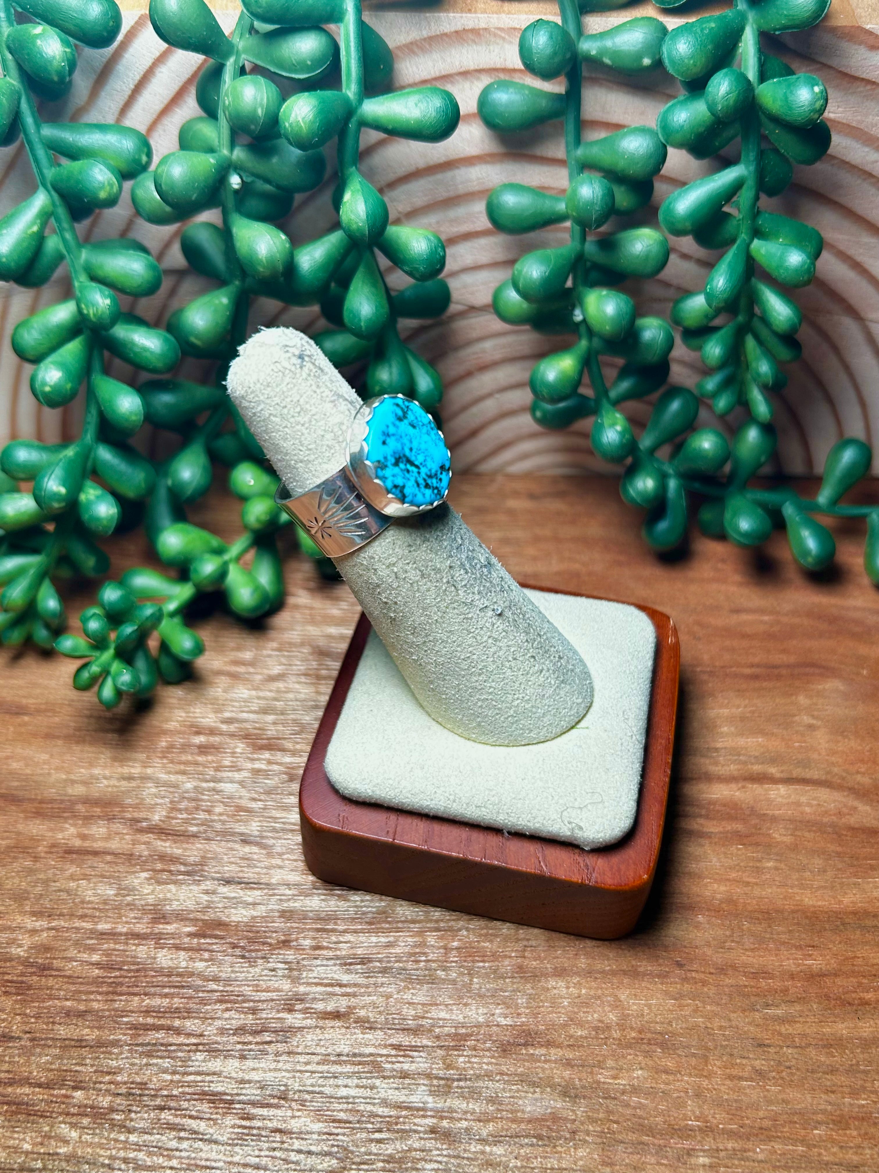 Navajo Made Kingman Turquoise & Sterling Silver Ring Size 5