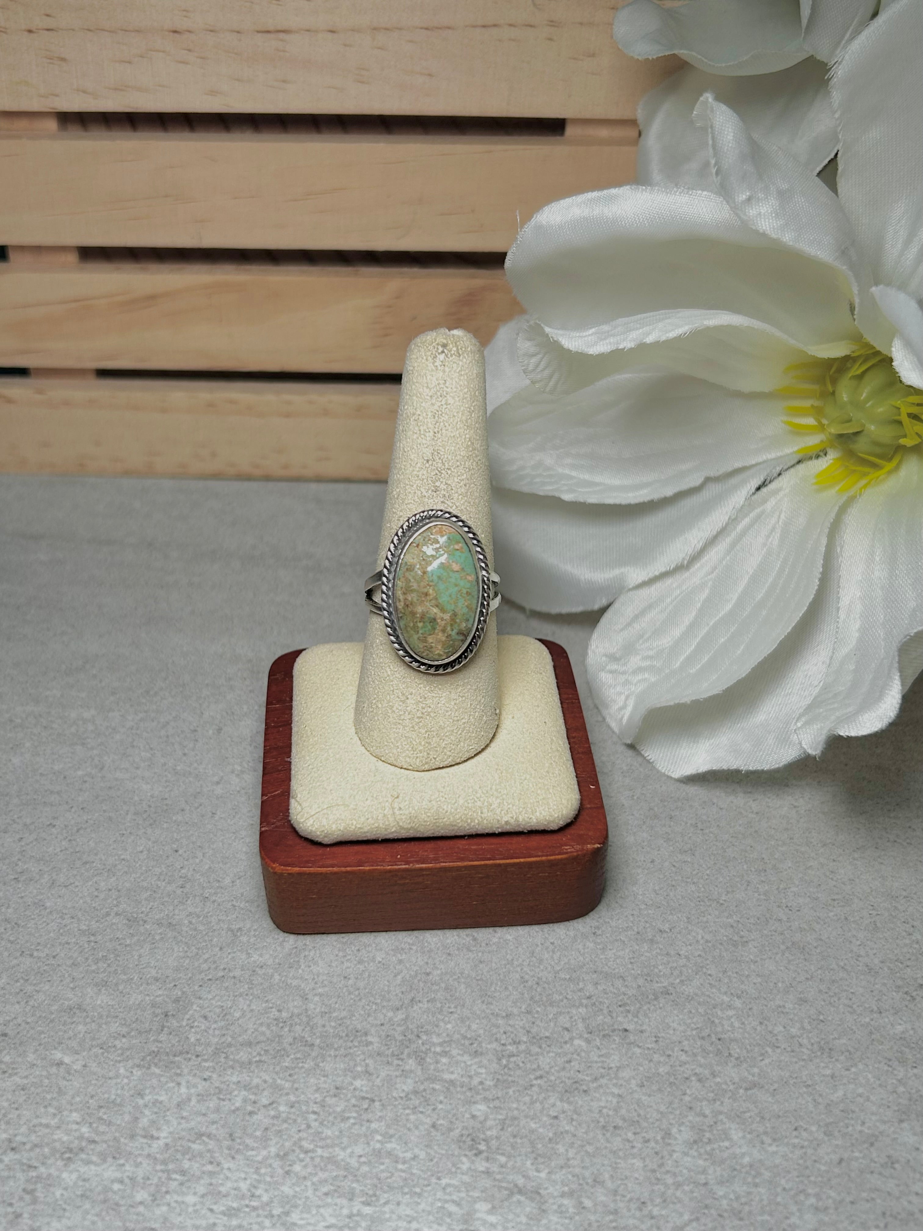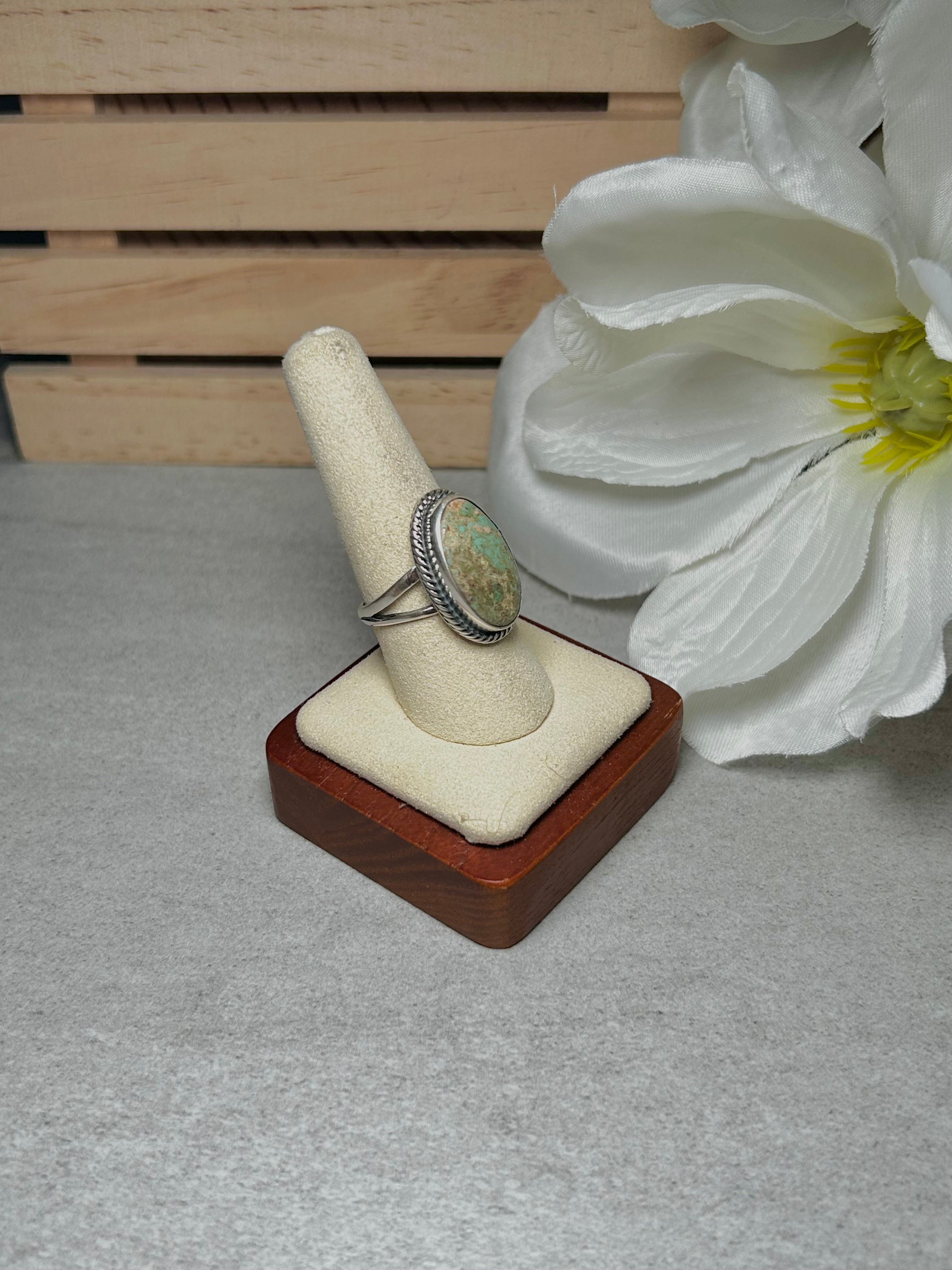 Navajo Made Kingman Turquoise & Sterling Silver Ring Size 9.25
