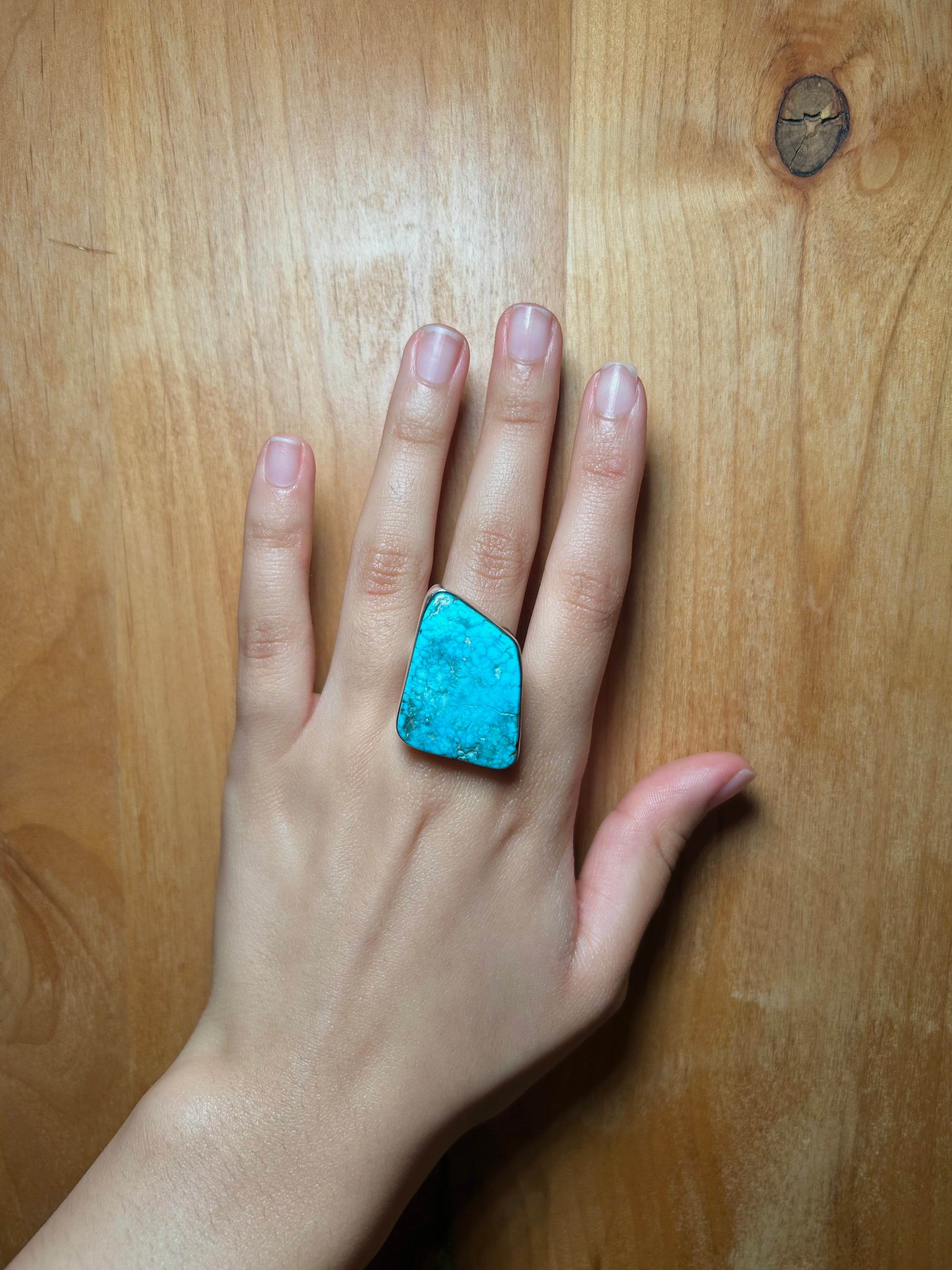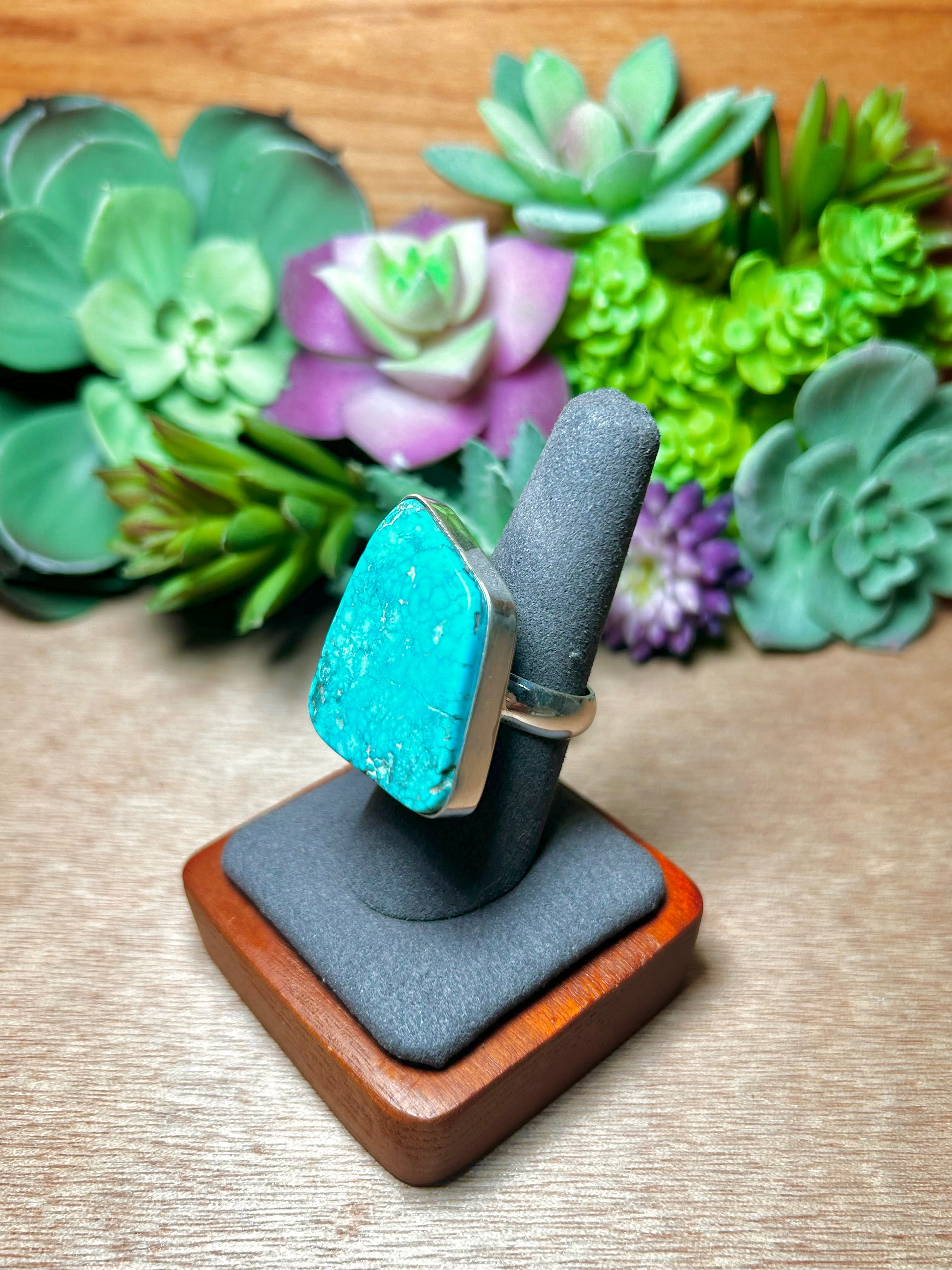 Navajo Made Kingman Turquoise & Sterling Silver Ring Size 8