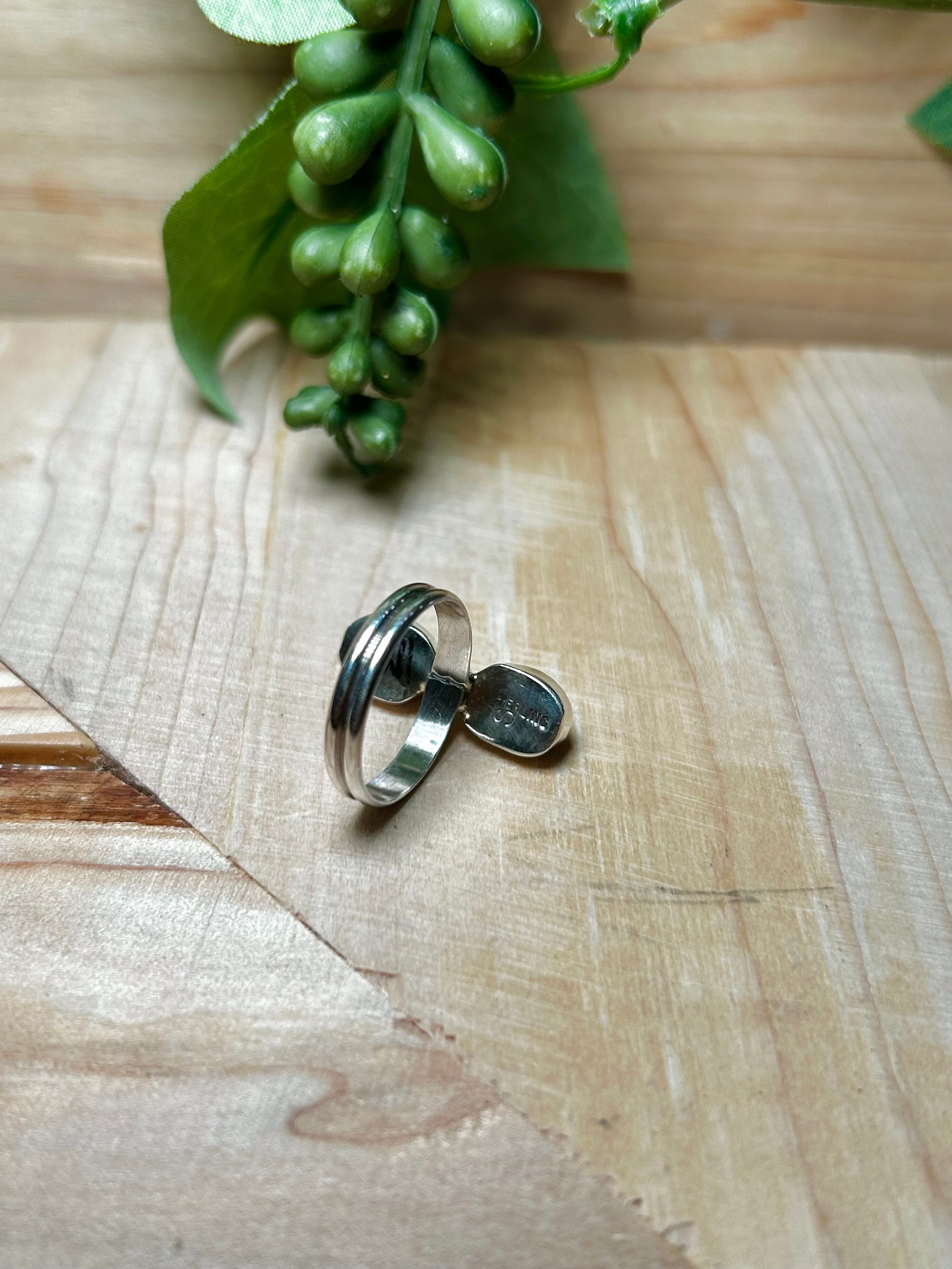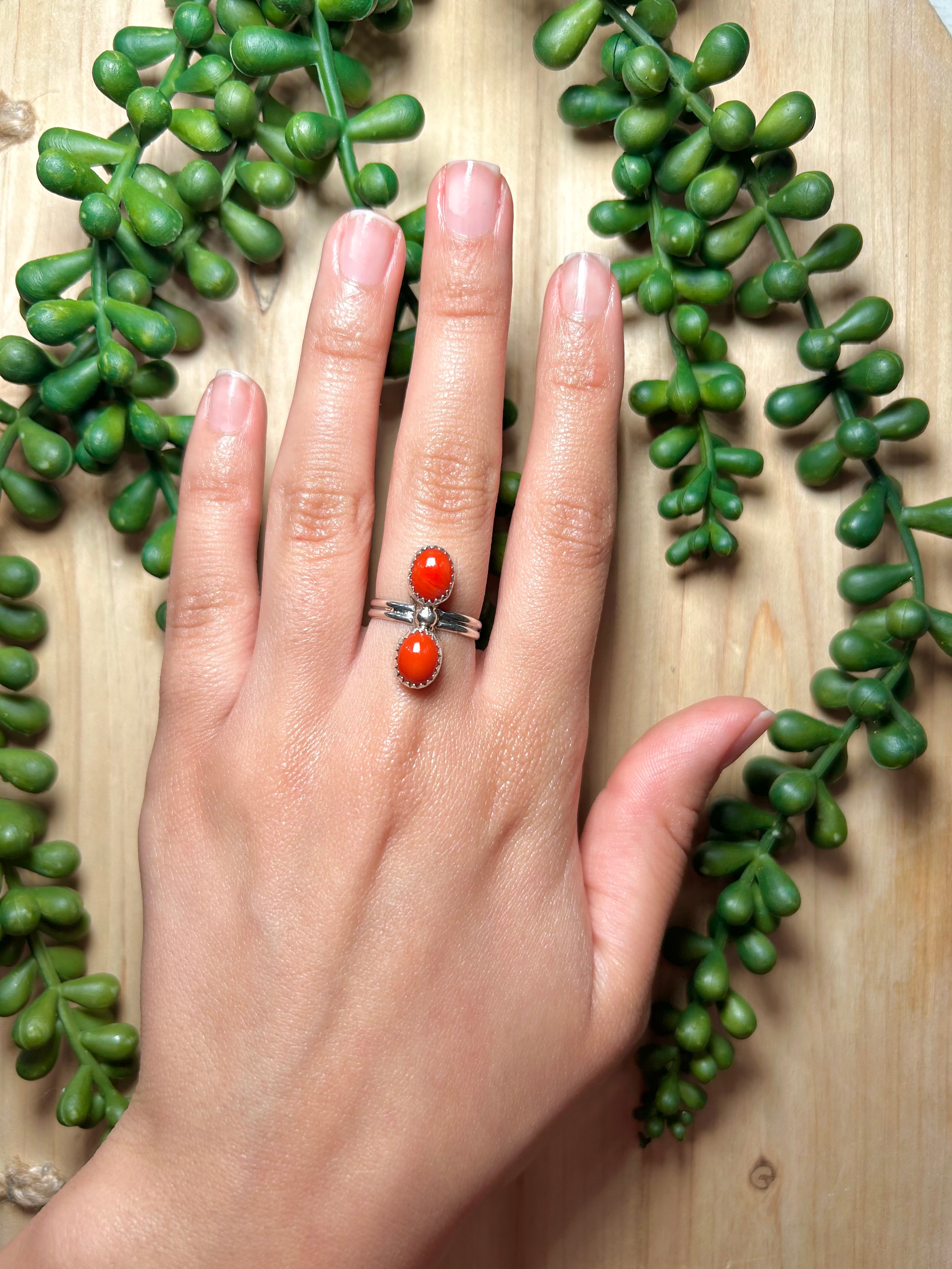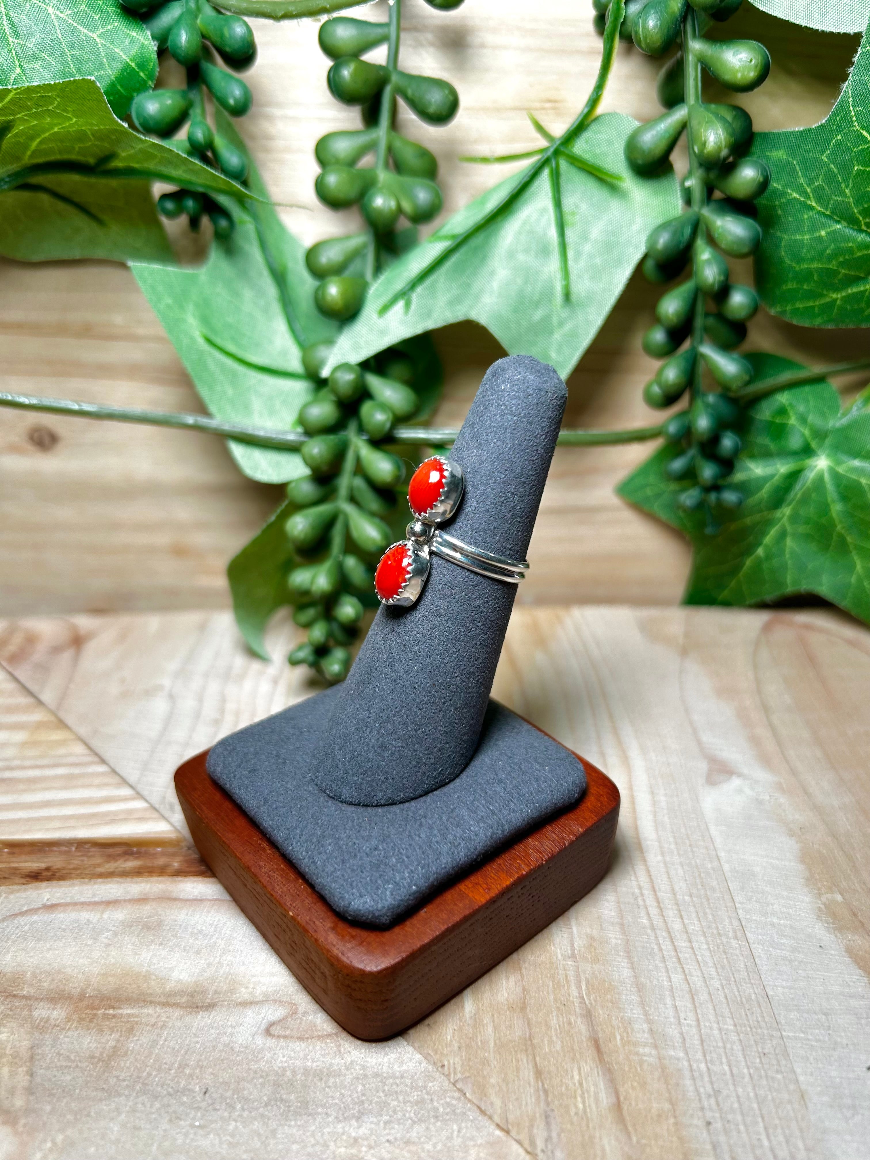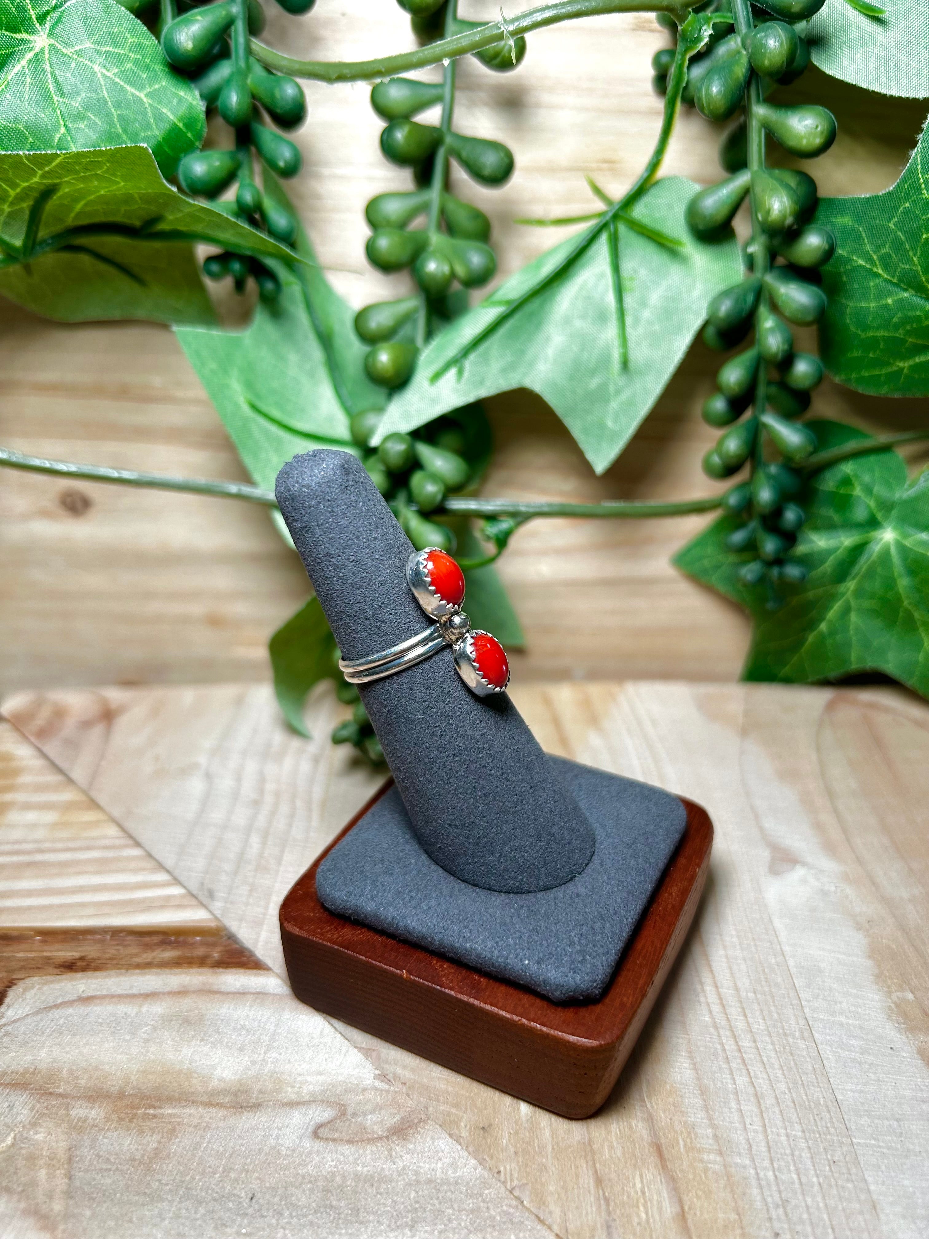 Navajo Made Natural Coral & Sterling Silver Ring Size 6
