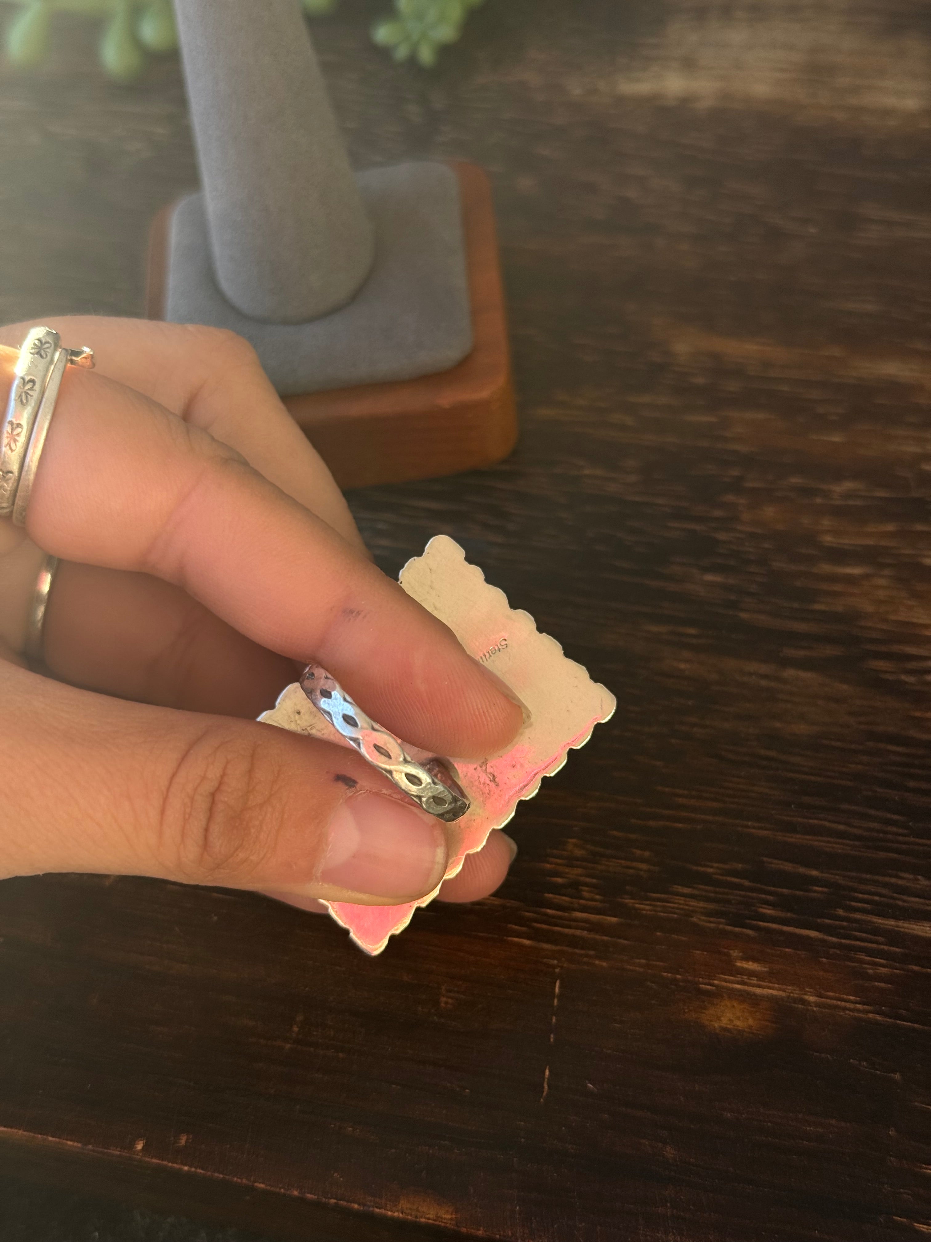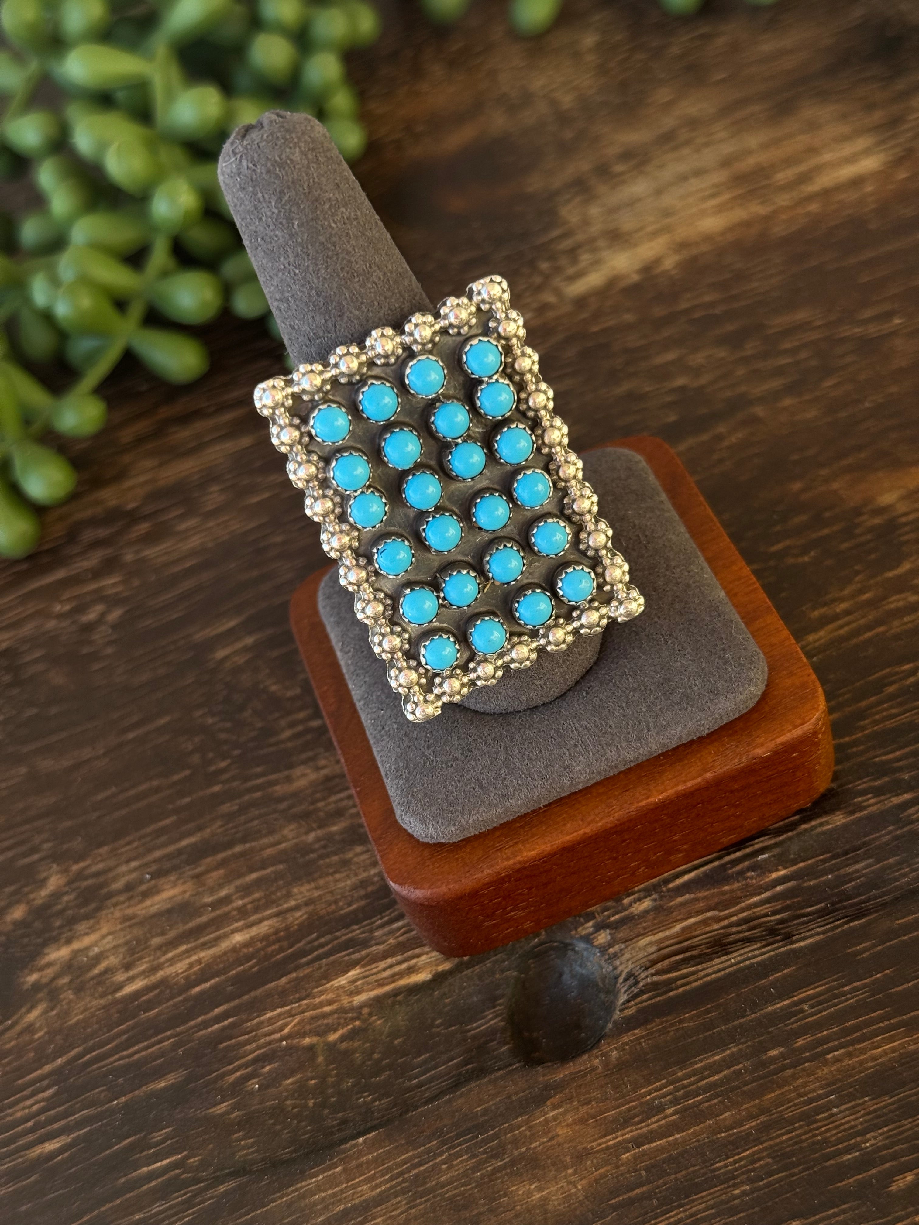 Navajo Made Turquoise & Sterling Silver Cluster Ring Size 10.25