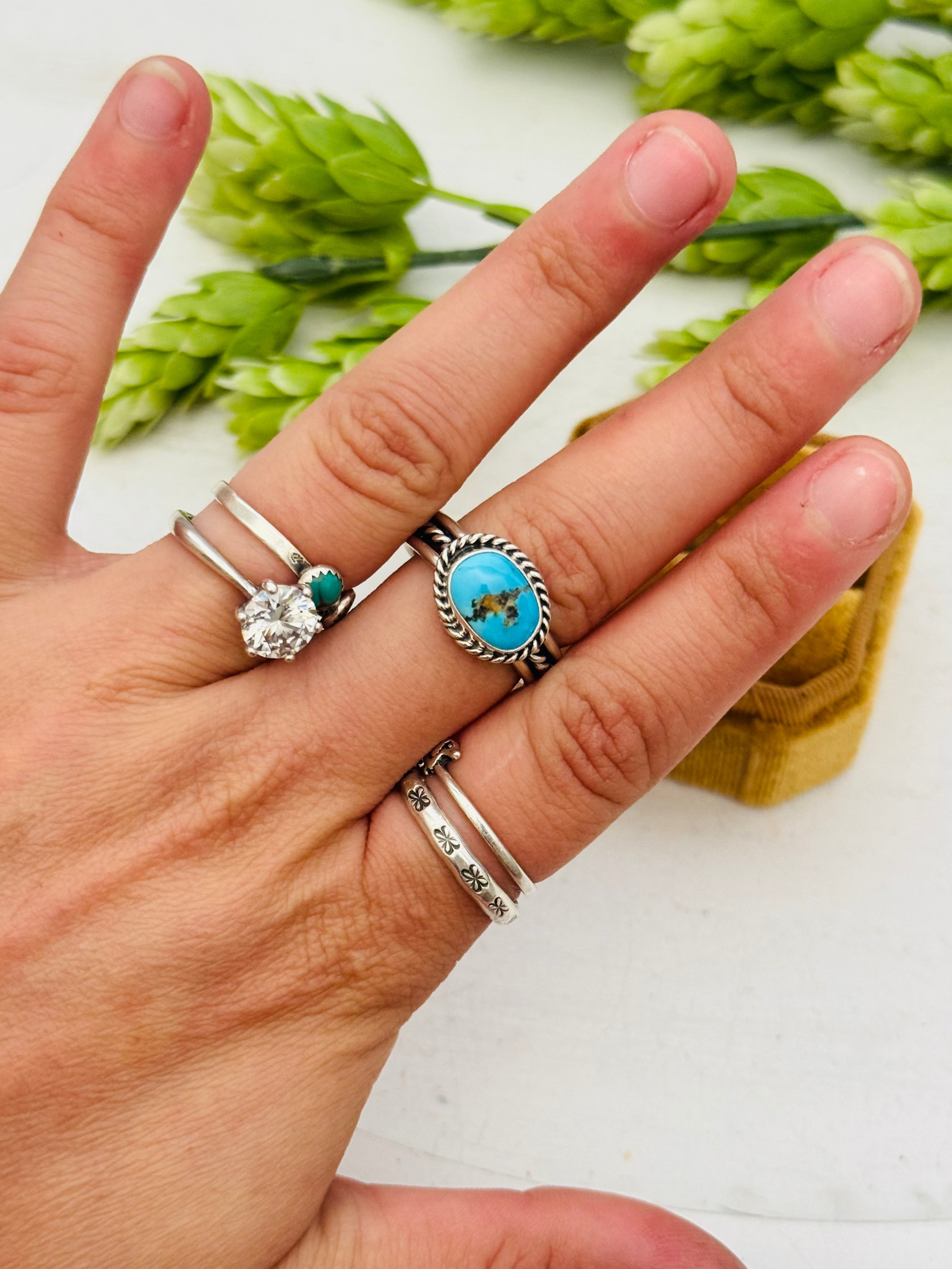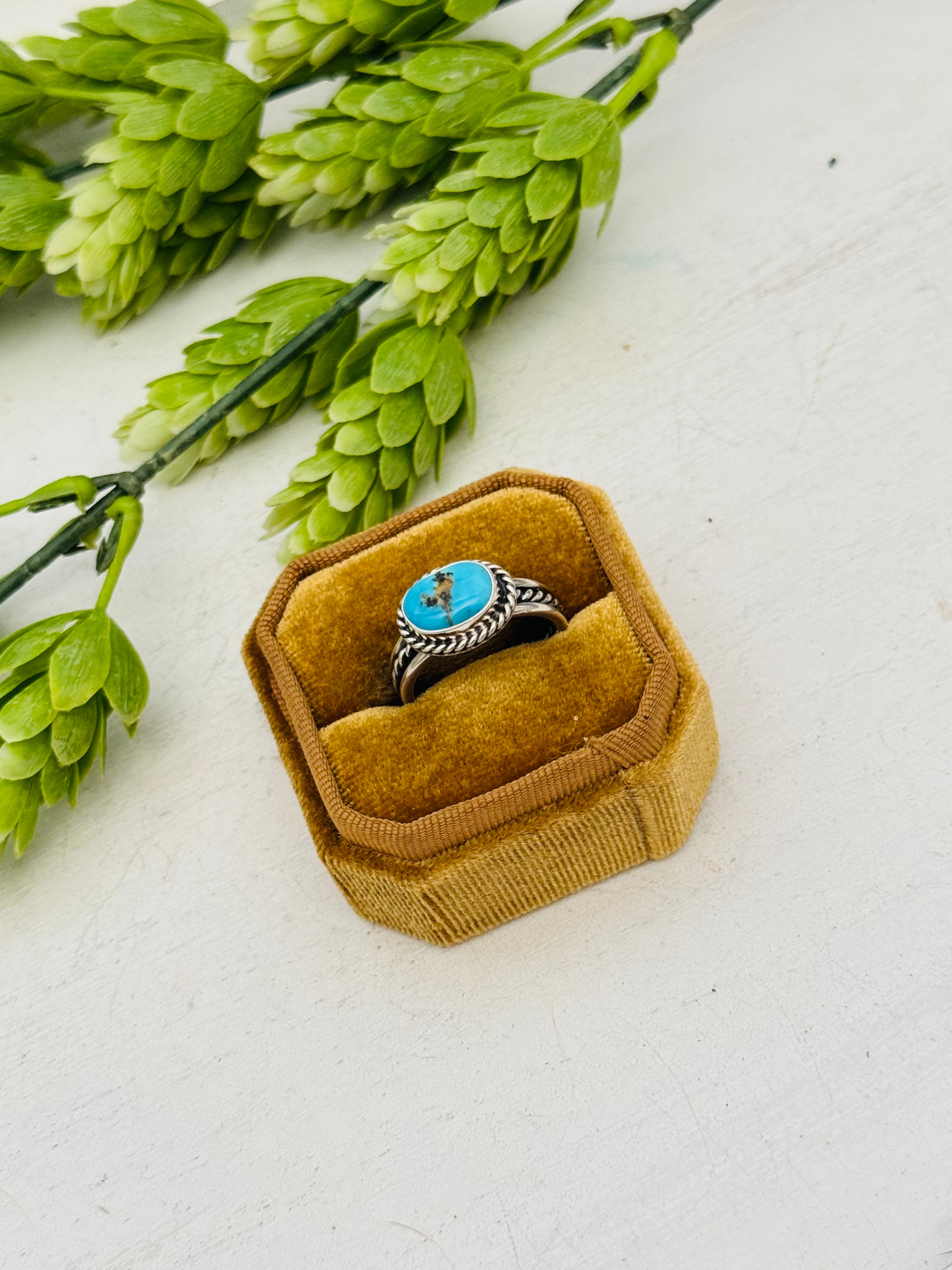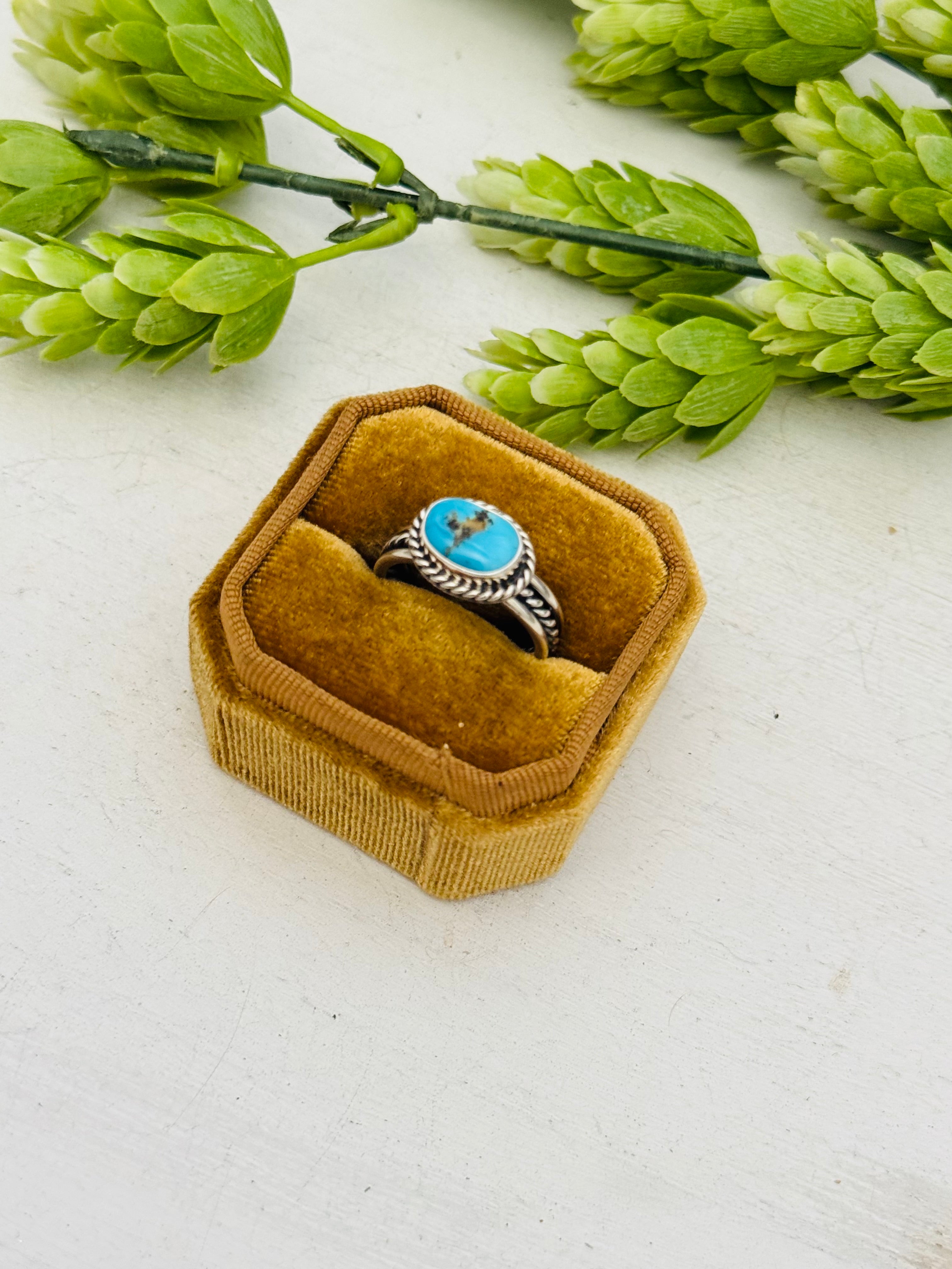 Navajo Made Kingman Turquoise & Sterling Silver Ring Size 7