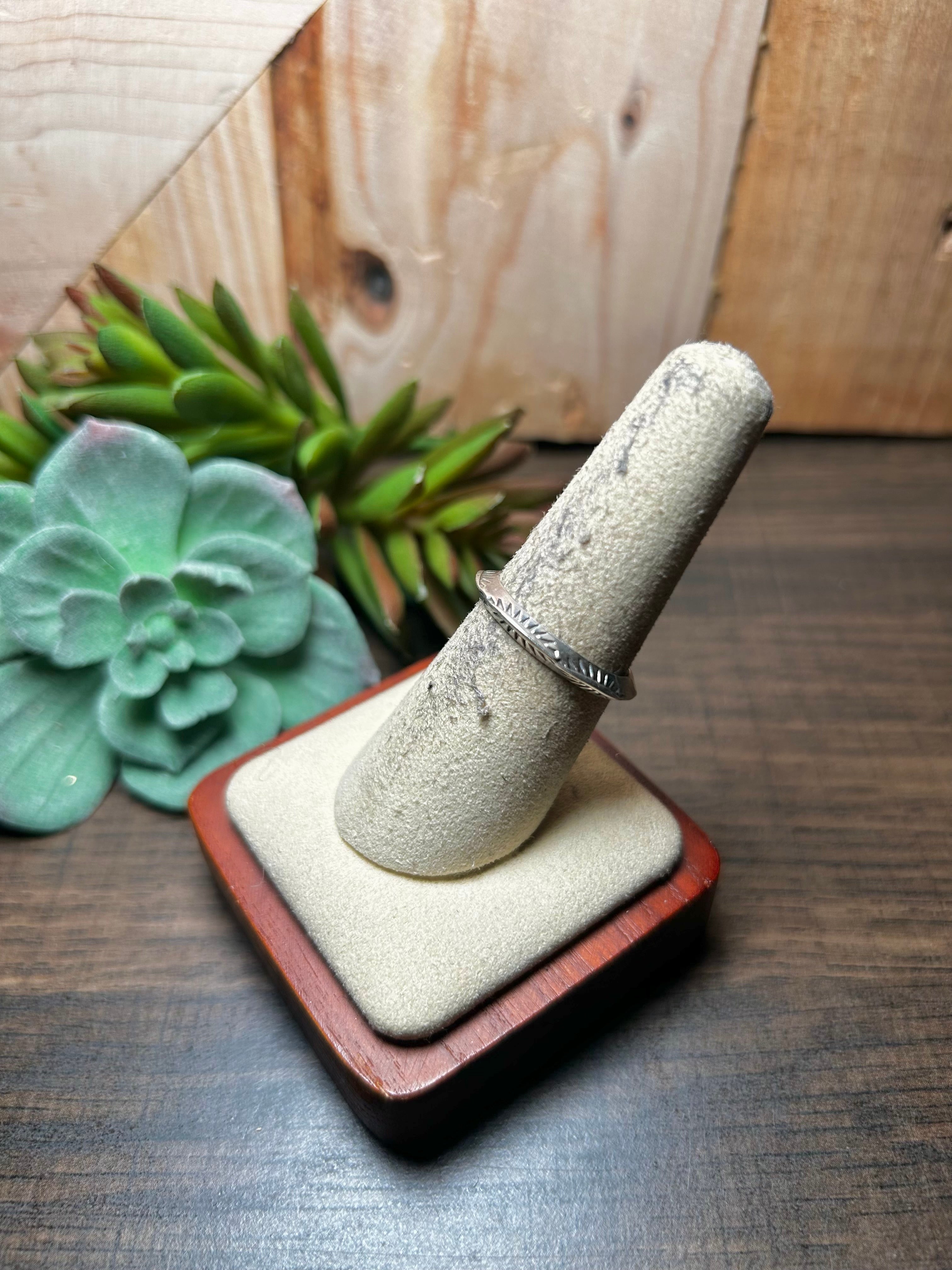 Navajo Made Sterling Silver Ring Size 7.75. It measures 1/8 of an inch long.