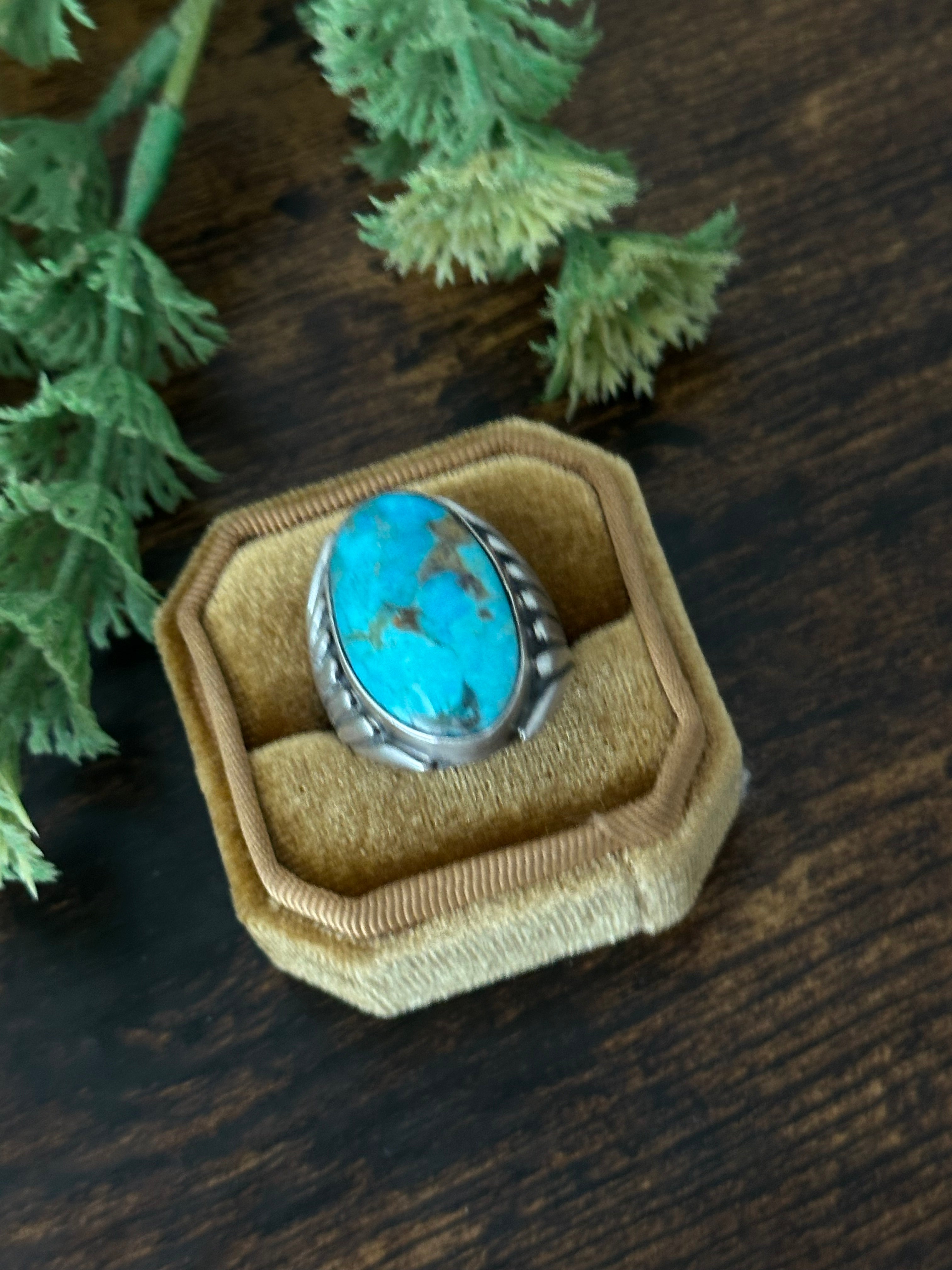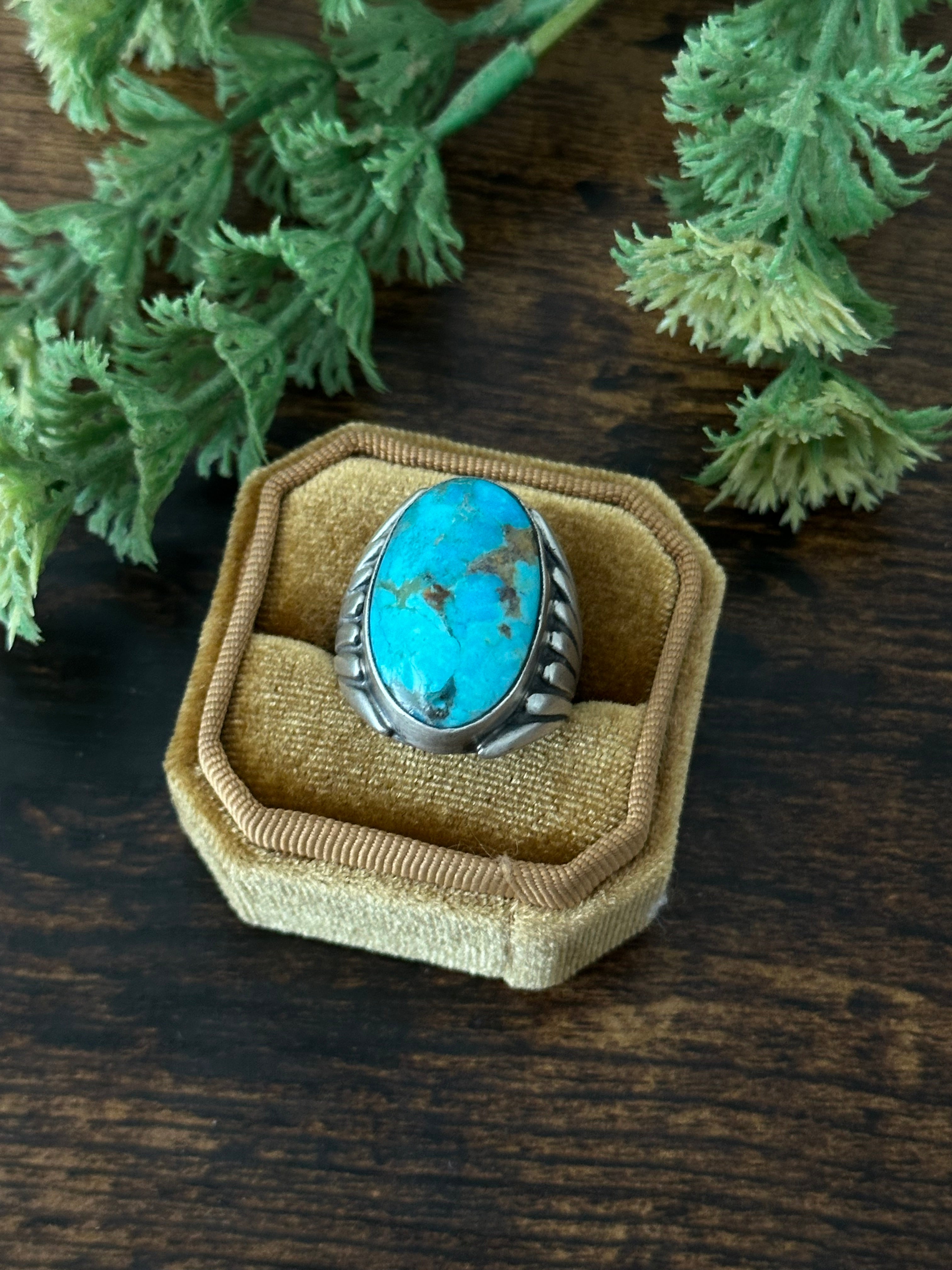 Navajo Made Kingman Turquoise & Sterling Silver Ring Size 8.75