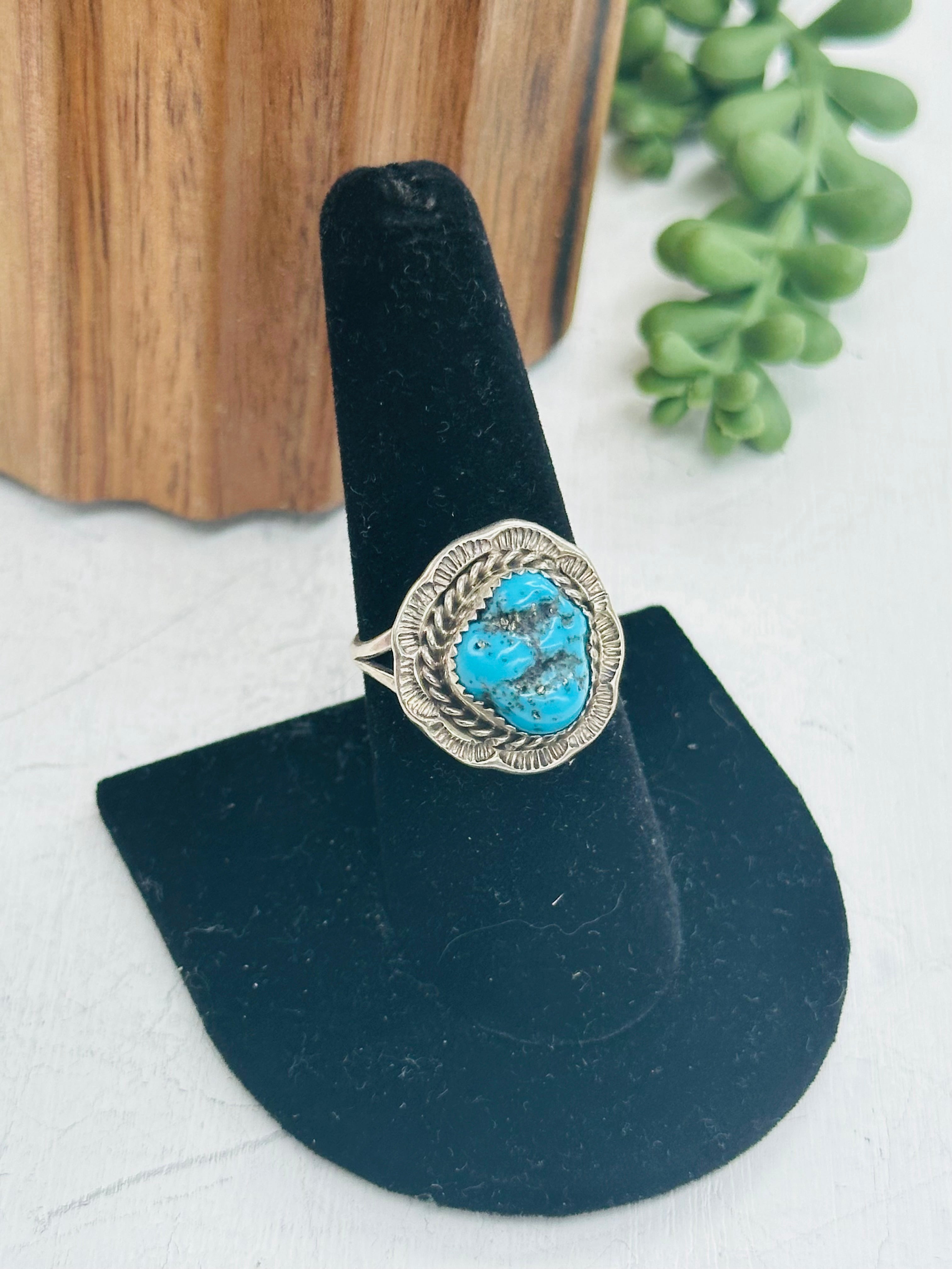 Navajo Made Kingman Turquoise & Sterling Silver Ring